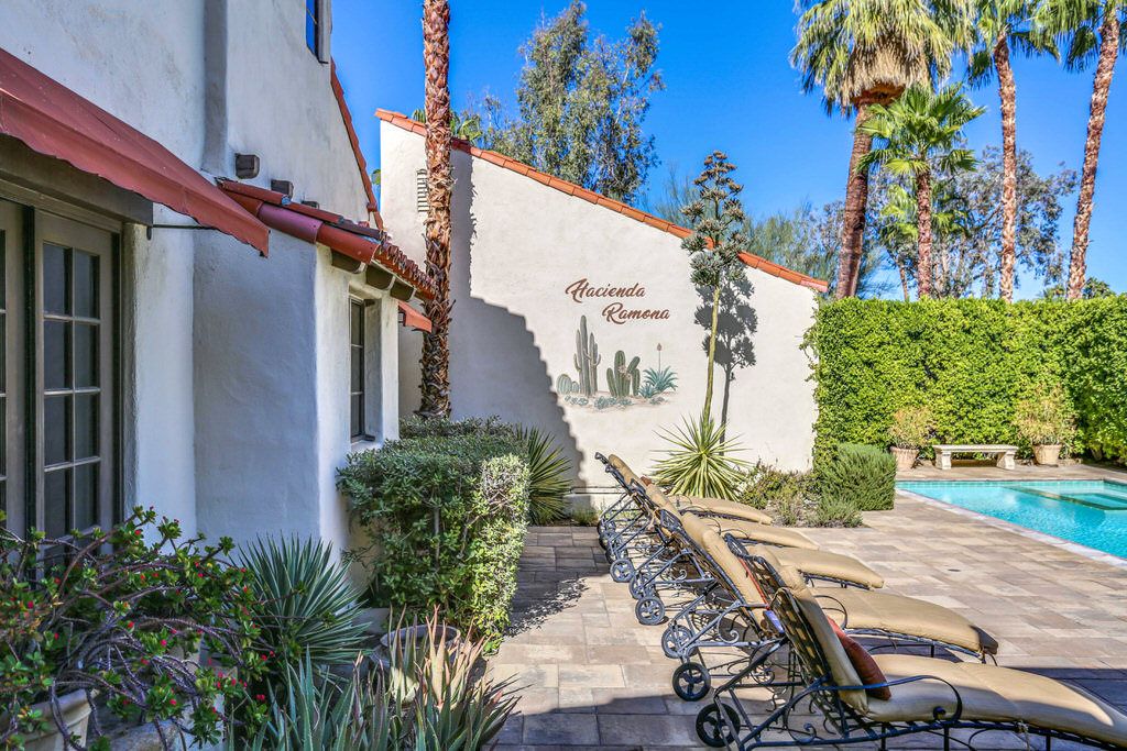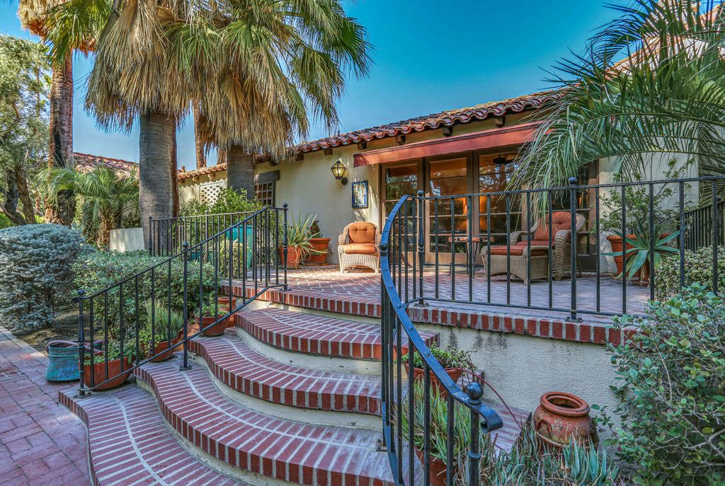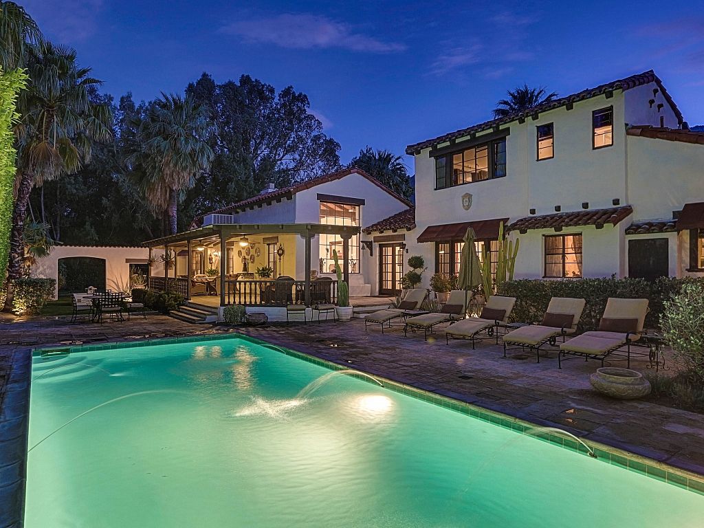 This Spanish Colonial Revival vacation estate in Palm Springs is located in a small enclave of private estates known as Las Hacenditas, in the Movie Colony neighborhood. This estate is said to be the first large estate built in this historic neighborhood, which is home to many Hollywood celebrities.