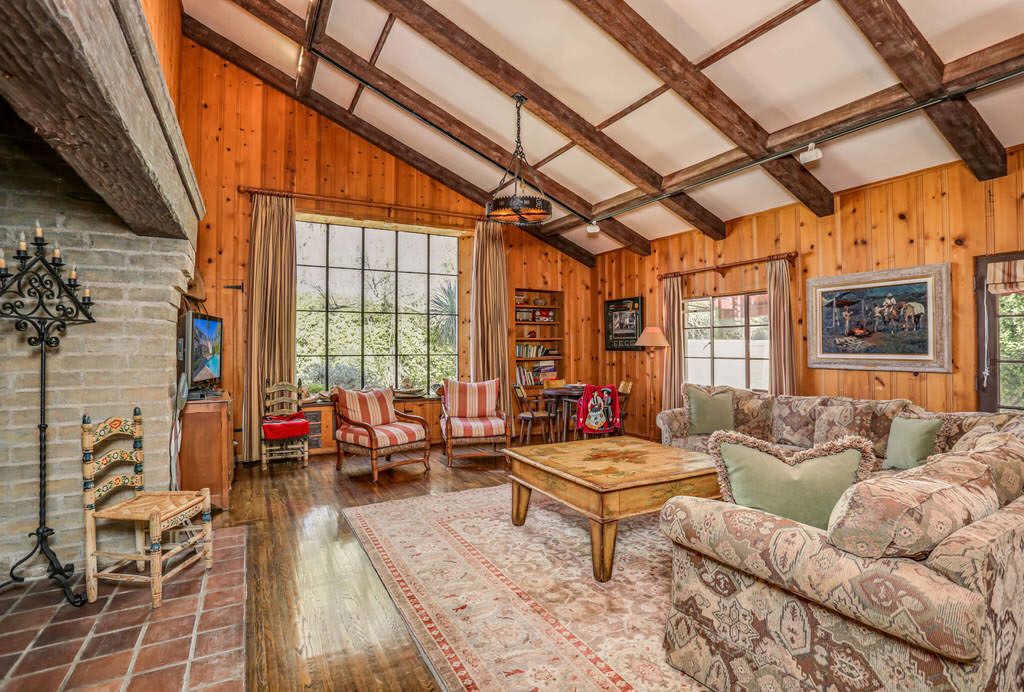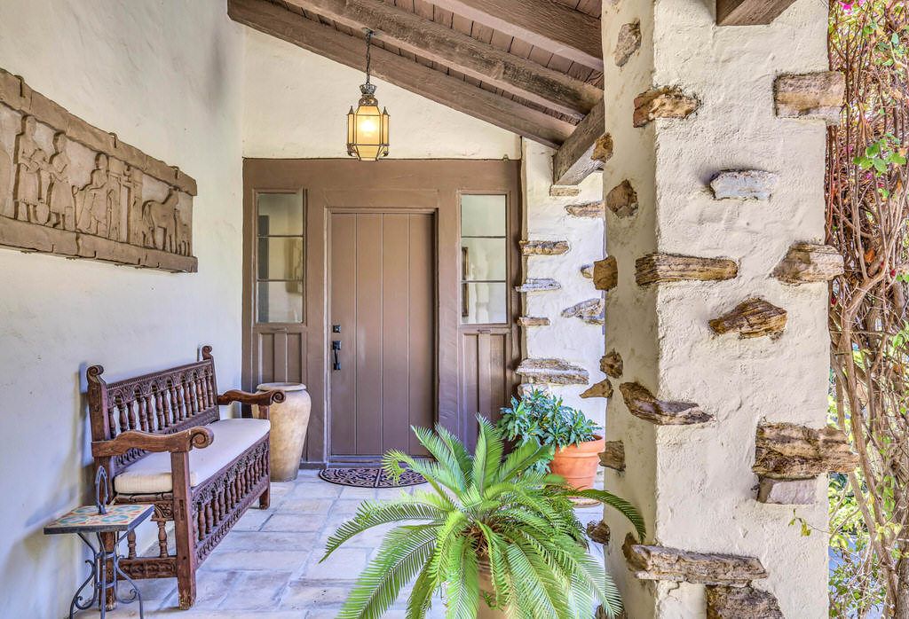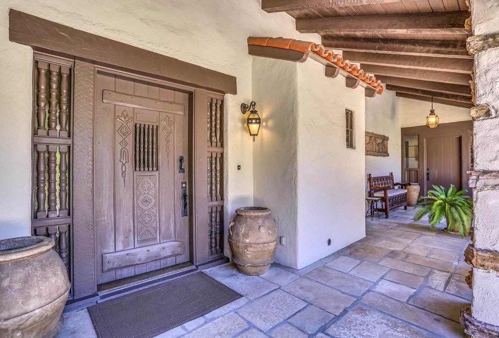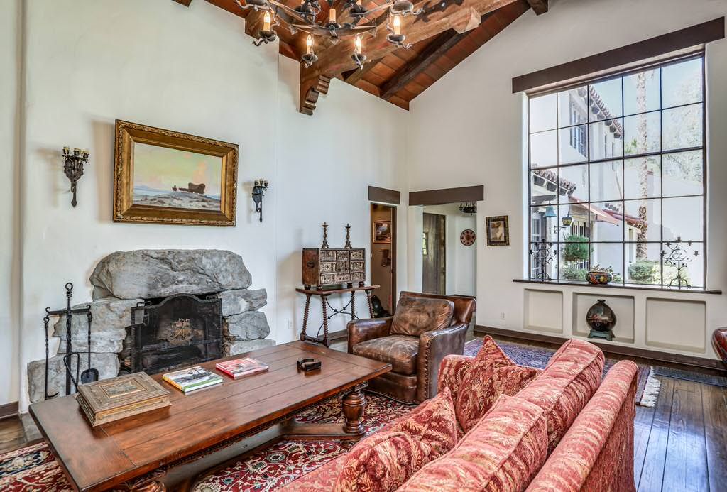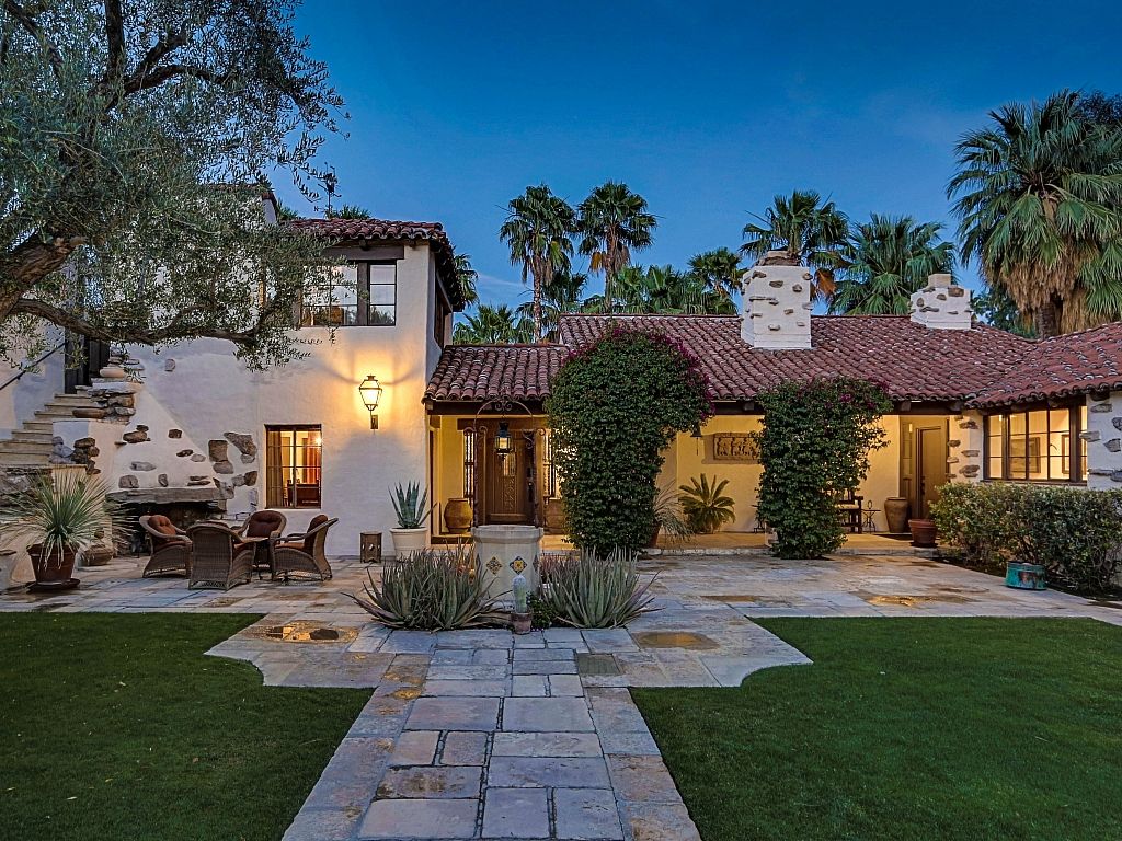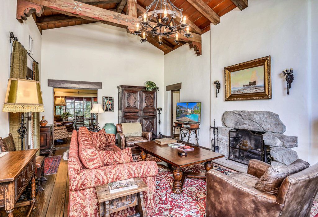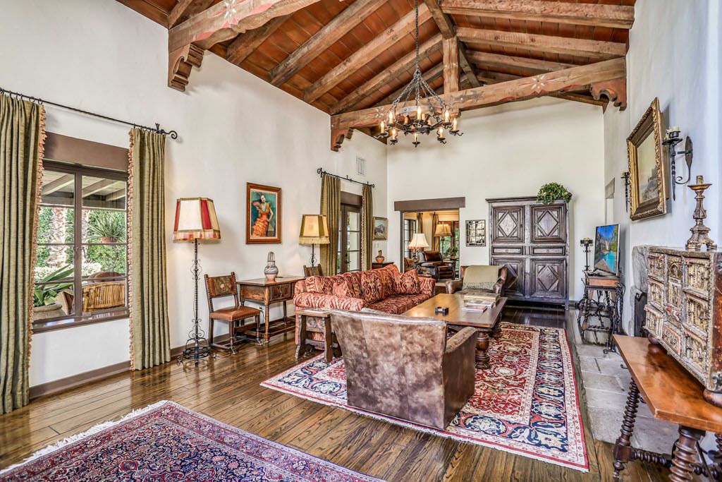 from stucco walls to heavy wood ceiling beams, this luxury estate exudes Spanish Colonial Revival and Palm Springs history.