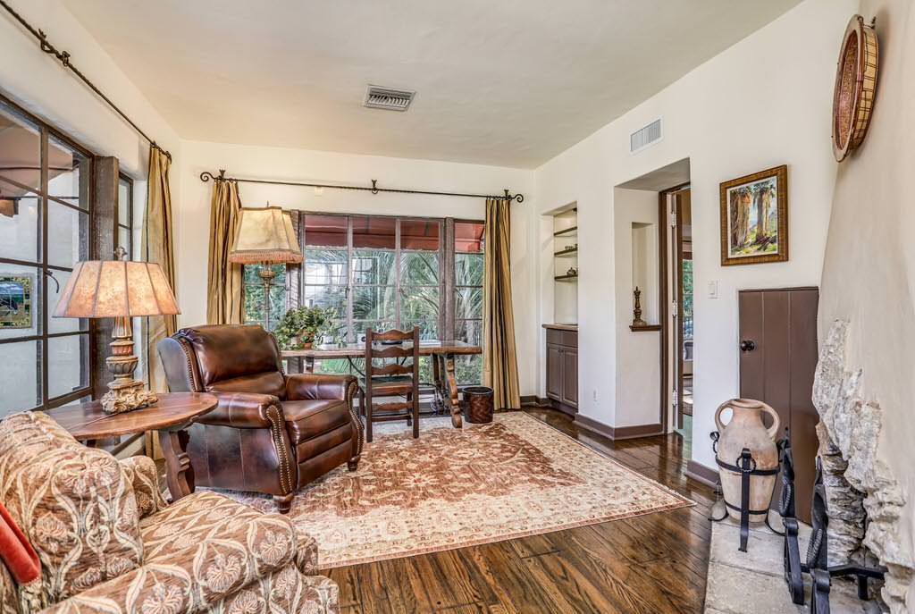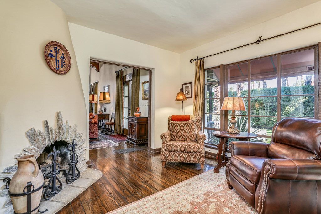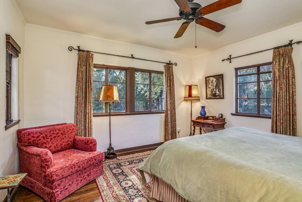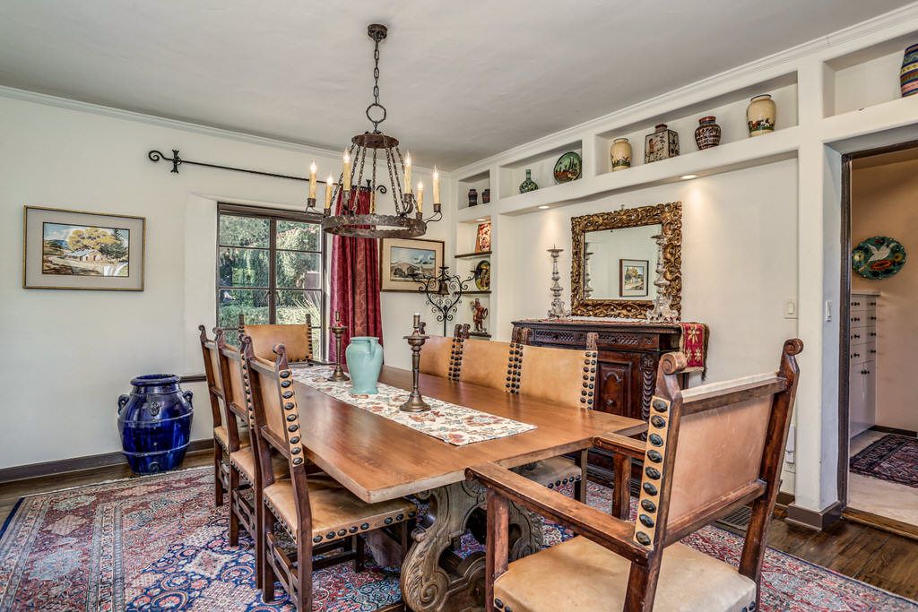 This historic estate is approximately 5,000 square feet and has a wonderful L-shaped floor plan laid out around a center courtyard that resembles the layout of a Spanish Hacienda.