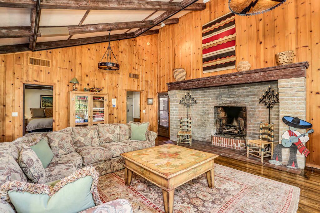 This Palm Springs Spanish Revival vacation rental also features an extraordinary ""Casino Room"" that encompasses Spanish Colonial Revival style mixed with southwestern decor. The great room in this detached casita has cathedral ceilings with exposed wooden beams and a large wood burning fireplace, which is the largest fireplace known in Palm Springs. The bedroom in the casino room is furnished with a king size bed and museum quality southwestern art and decor.