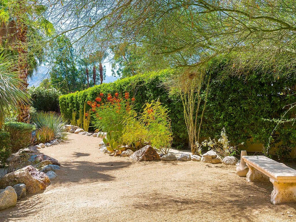 As you make your way through the tranquil courtyard and up to the front door you are surrounded by beautiful landscaping and gorgeous Palm Springs mountain views.