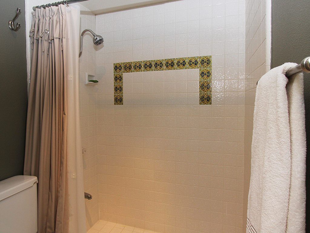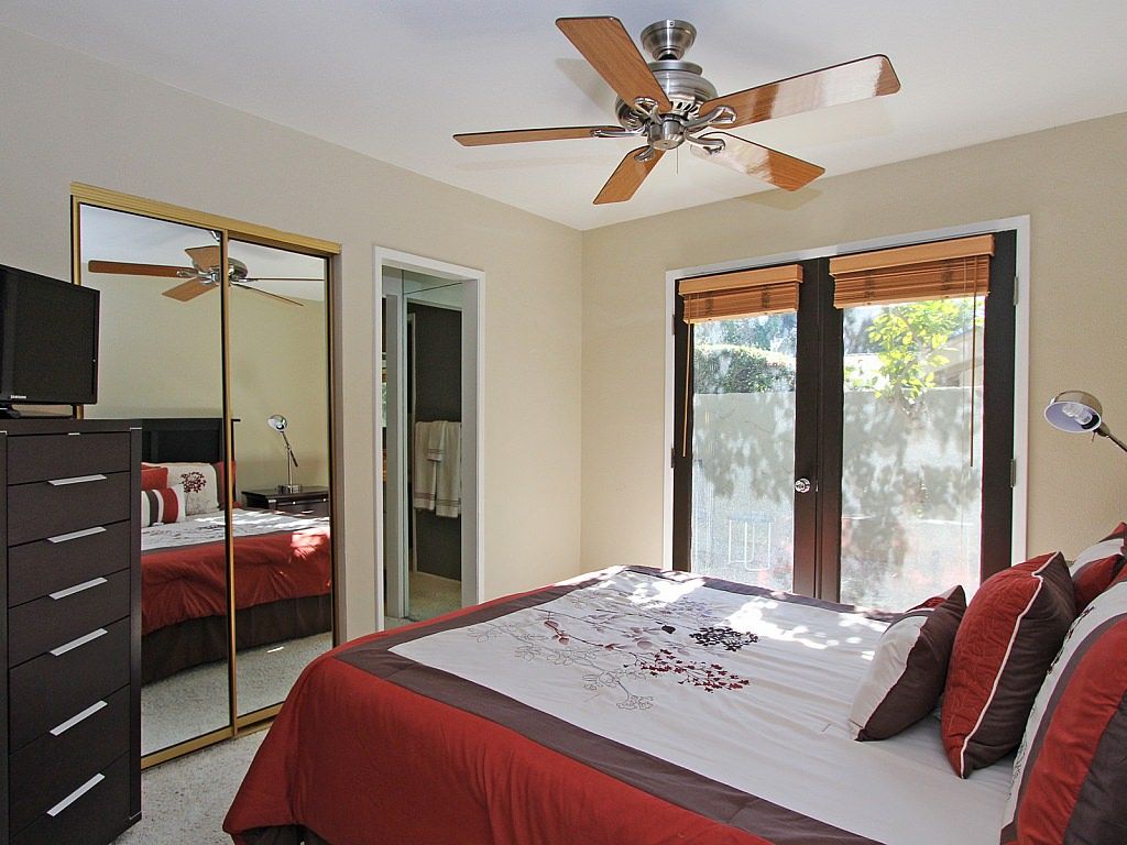 The third bedroom offers a queen size bed with wonderful designer bedding and easy access to the private front courtyard.