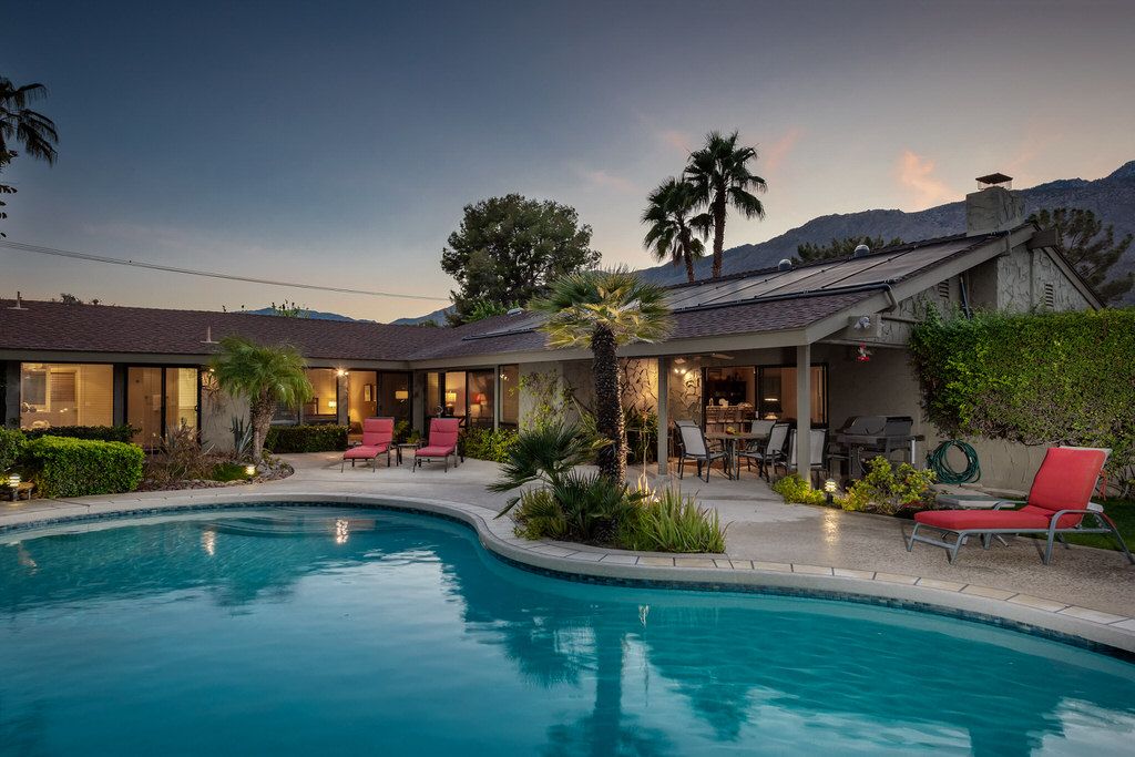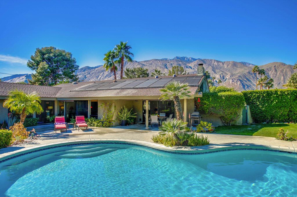 Featuring a private pool and spa and terrific mountain views, this stylish 3 bedroom + 3 bath Palm Springs home exudes the desirable indoor-outdoor Palm Springs style of living. There is also a den with a full size sofa hide-a-bed that sleeps one.