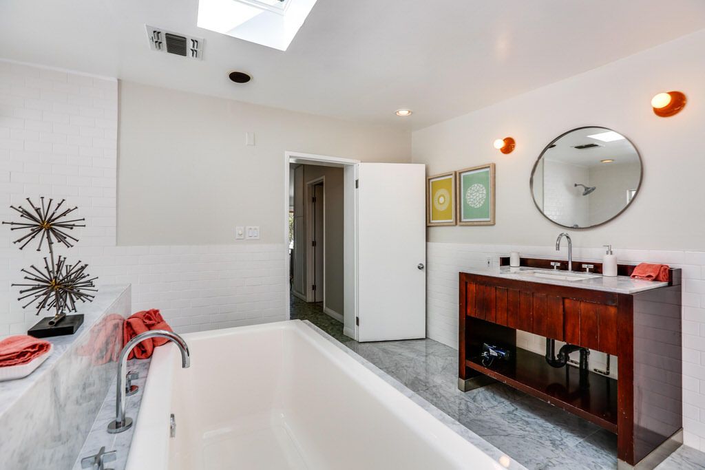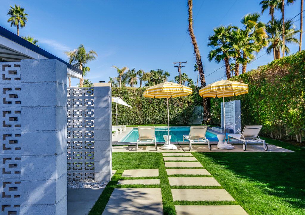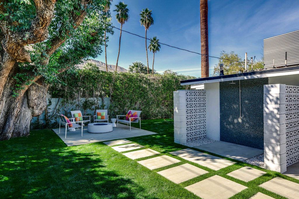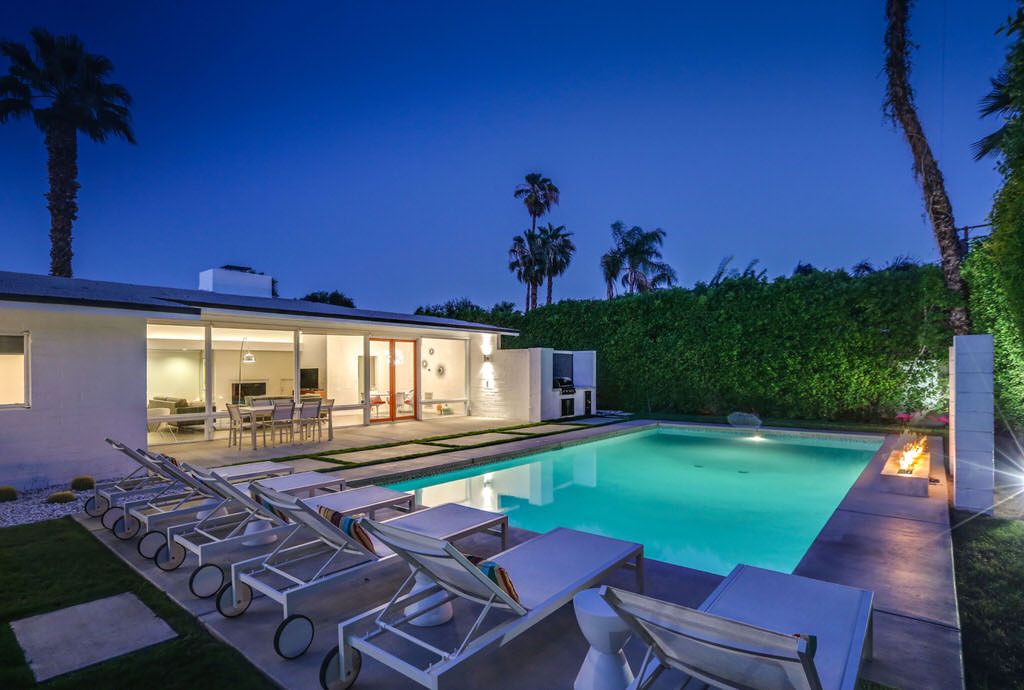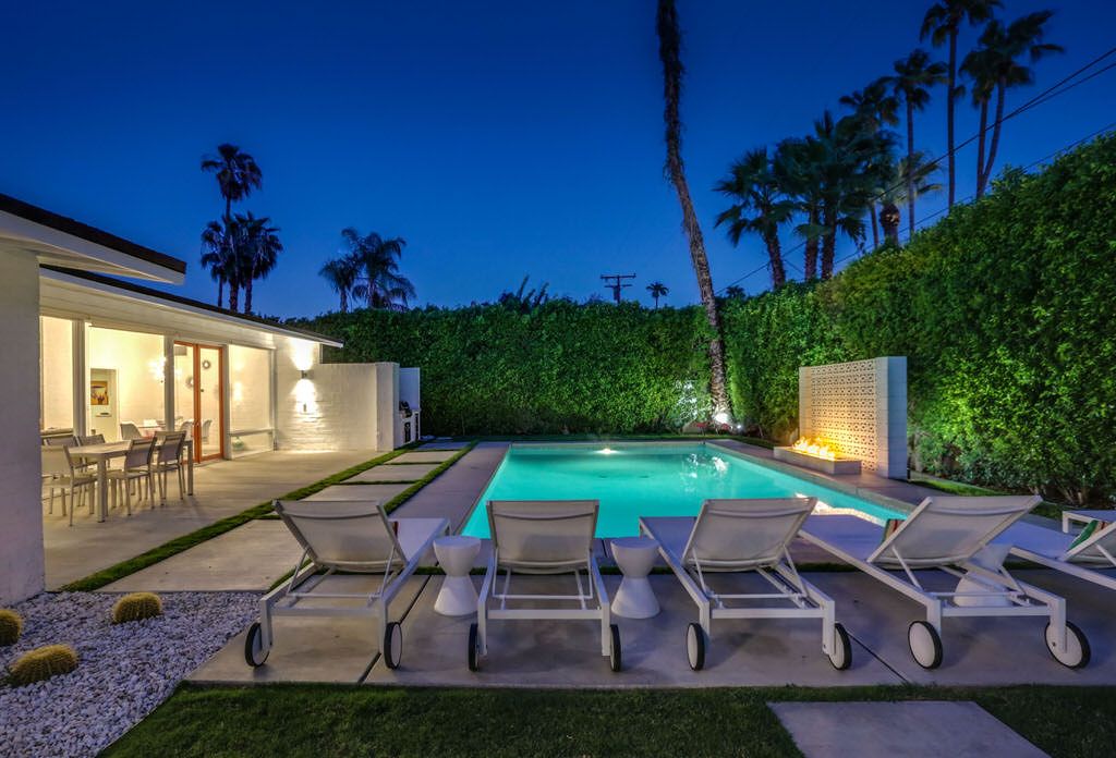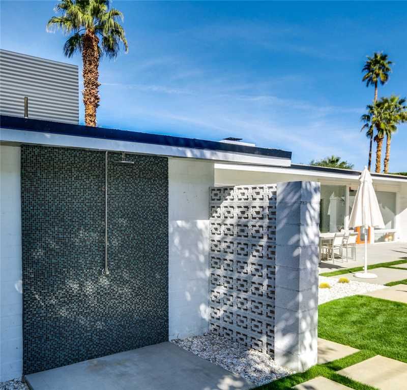 This highly upgraded Palm Springs mid-century modern home that features an East-West facing backyard, a newly resurfaced deep pool that offer outstanding views, and total privacy. There is also a private outdoor pool bathroom conveniently located steps away from the pool with a shower, sink, and commode.