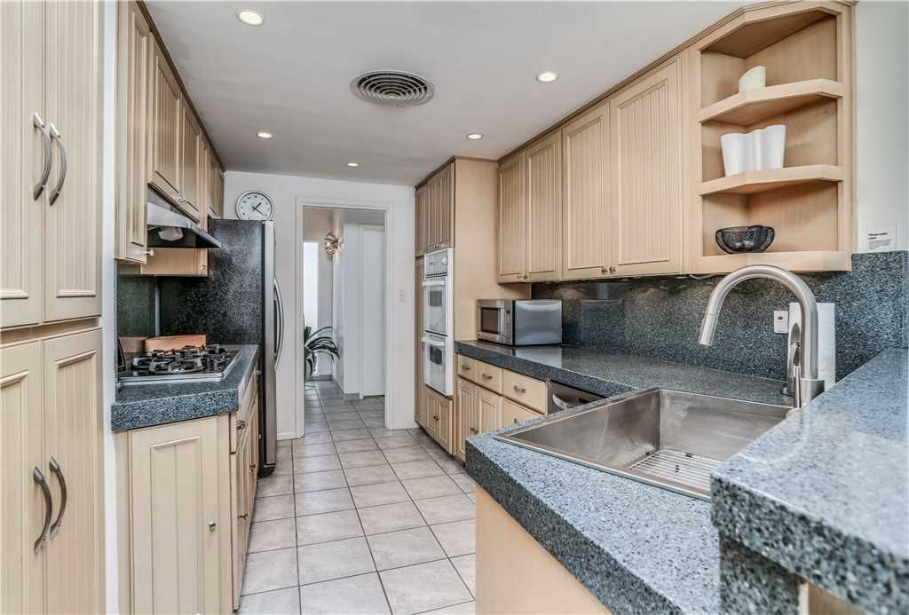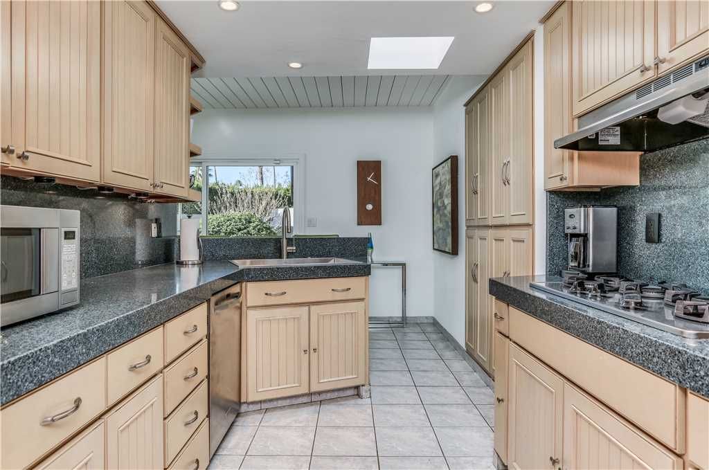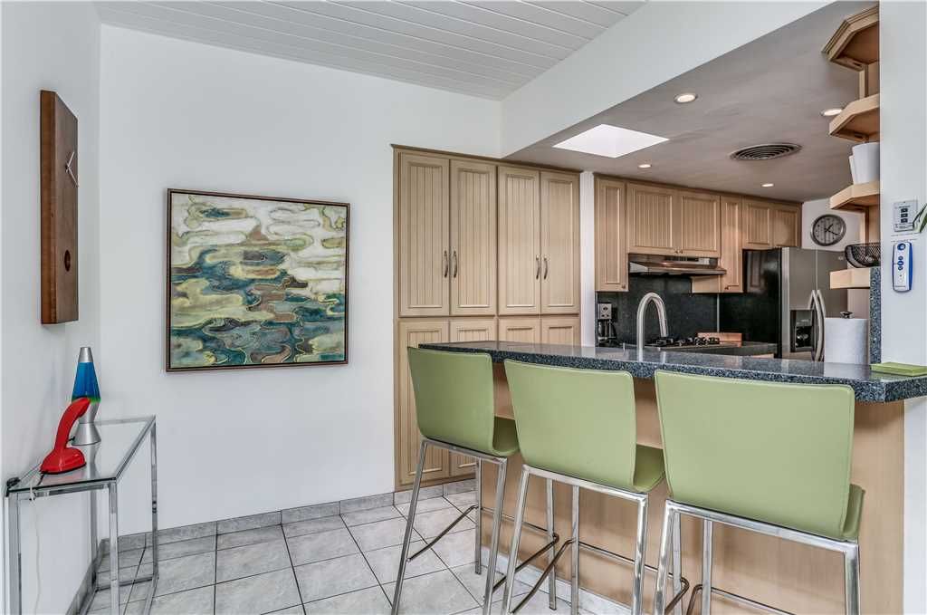 The dining area accommodates six and the modern kitchen contains stainless appliances and updated with all the culinary amenities for preparing and enjoying home cooked meals.