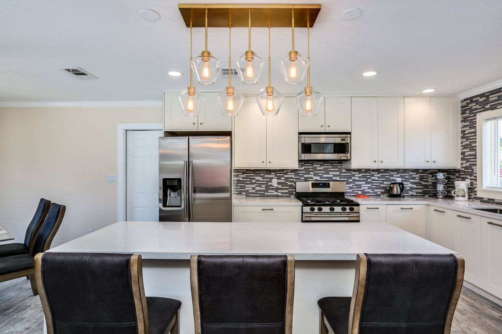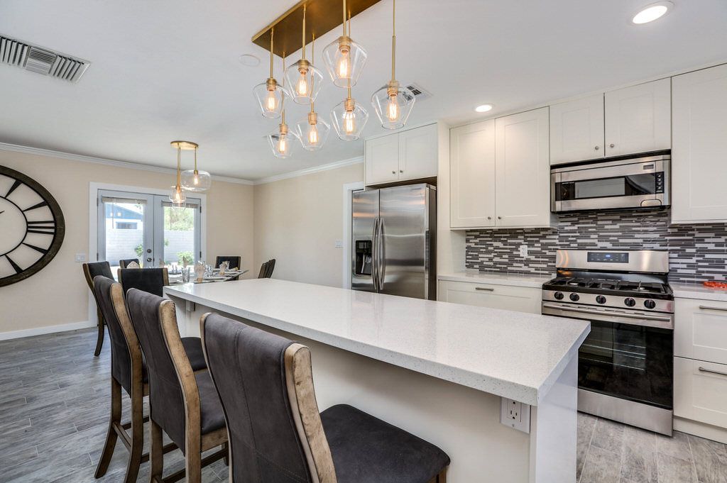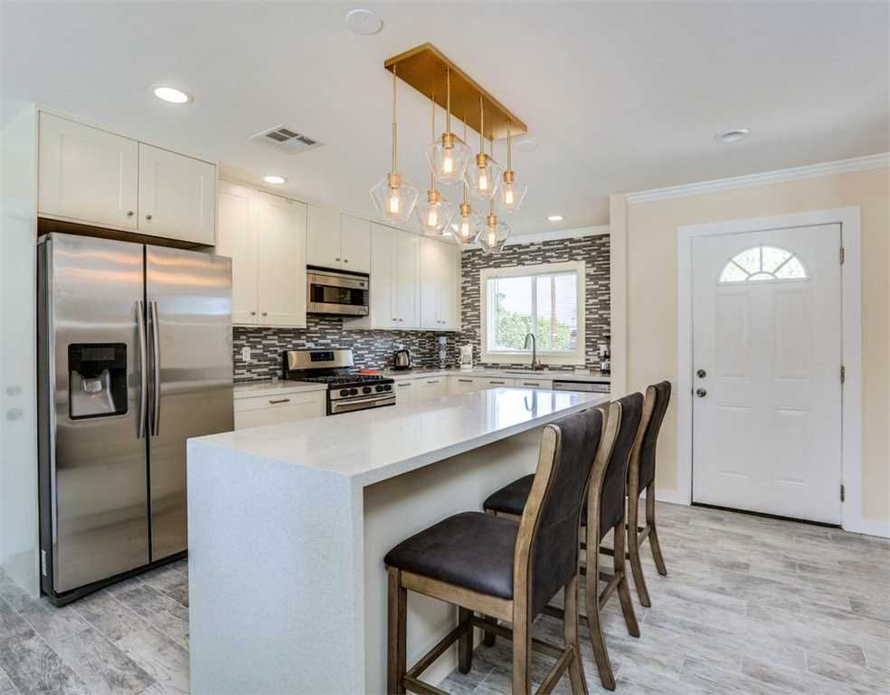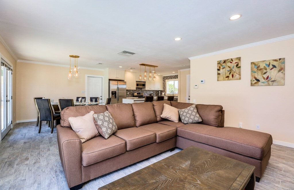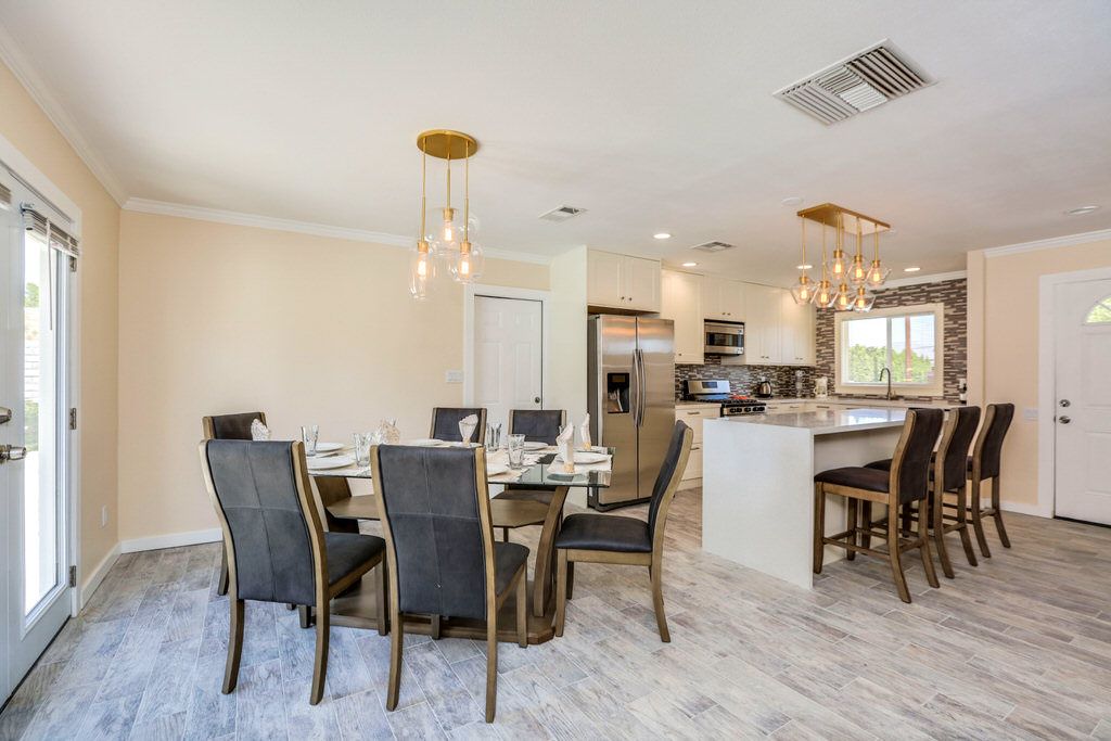 Walk in to the living room where you'll find fabulous new furnishings with French glass doors that look outside to the pool area. With an open floor plan it's easy to enjoy dining and entertaining with friends and family. The kitchen is supplied with everything you need to cook a gourmet meal. Just steps away the elegant dining area sits 6, while the kitchen island offers sitting for an additional 3