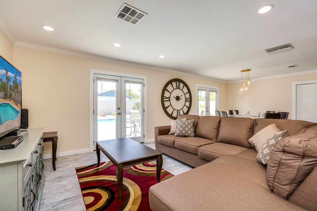 Recently remodeled in 2018, this modern home features, all new appliances, new wood tone tile floors, new furnishings and colorful fun decor throughout. This vacation rental is a great example of the wonderful indoor-outdoor living that makes Palm Springs such a popular year-round resort and vacation destination.