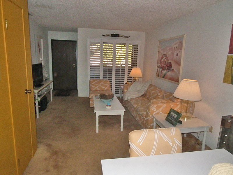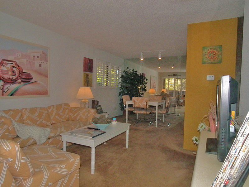 Palm Springs Villas II - This cozy Palm Springs unit is only 1 mile from downtown! Check out this 1 bedroom, 1 bath condo. Sunlight galore for this space, with an extra window in this upper end unit! This condo offers you a 42 inch LCD TV, cable box and stereo system in the comfortable living room. Enjoy your glass of wine and read a book on the outdoor patio! Take a sunset swim just behind the building, with the most fantastic views of San Jacinto Mountains!The hot spa awaits you so you can soak away all of your day. Numerous tennis courts available and ready if you are a tennis buff, or challenge yourself with a 4 mile walk up Tram Road across the street! One mile trip to the most hip and cool downtown anywhere! Palm Springs offers something for everyone of all ages, with artistic shops, food galore, historic homes and outdoor music just minutes away. Make sure your vacation includes the Thursday Night Village Fest Street Fair.Property DescriptionApproximately 581 sq ftLocated in Palm SpringsGated CommunityLCD TVWiFiStereo SystemTennis CourtsCommunity Pool & Spa30 Night MinimumTOT #4004Room ConfigurationMaster: KingBath Configuration Master: Shower/Tub ComboAmenities