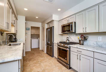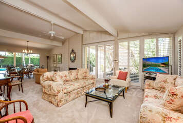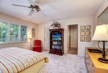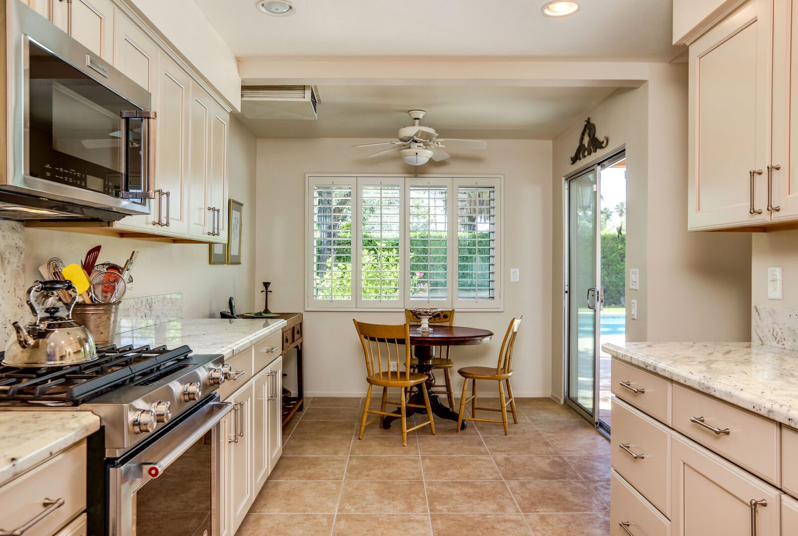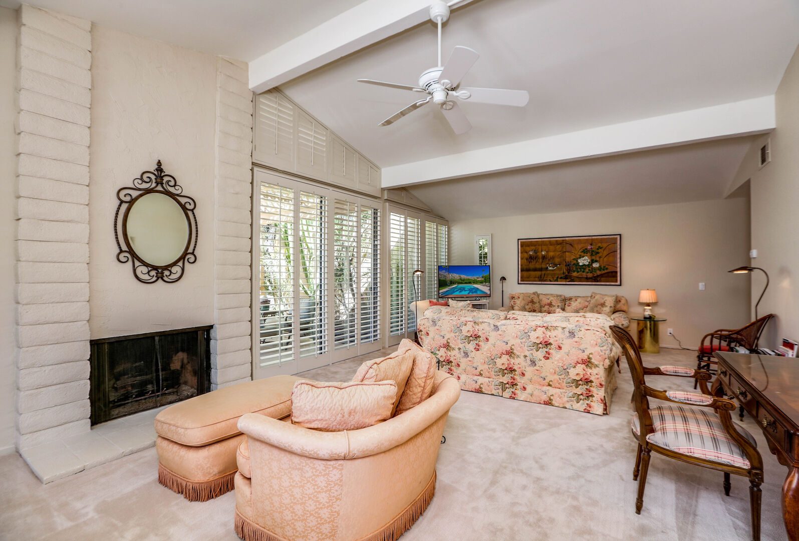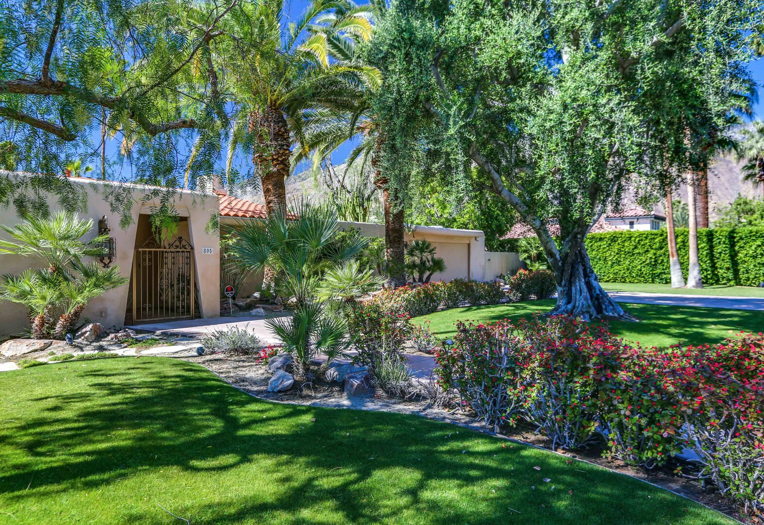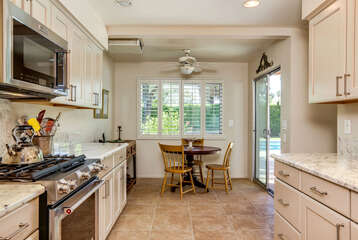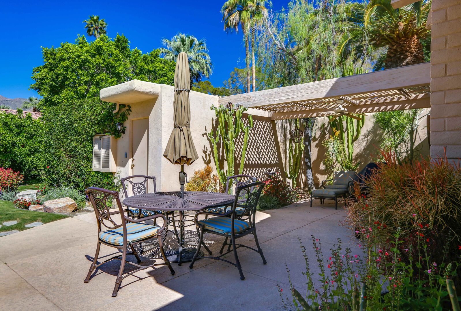The lush, well maintained backyard has a spa-like feel to it, complete with over sized pool, lounge chairs, dining table, and propane BBQ. It is a perfect spot to relax and round out a day of golf, tennis, other outdoor activities, or even just soak up the Palm Springs sun. The backyard is also surrounded by eleven citrus trees, so feel free to pick some grapefruit and enjoy a nice, fresh grapefruit margarita - our family must have!