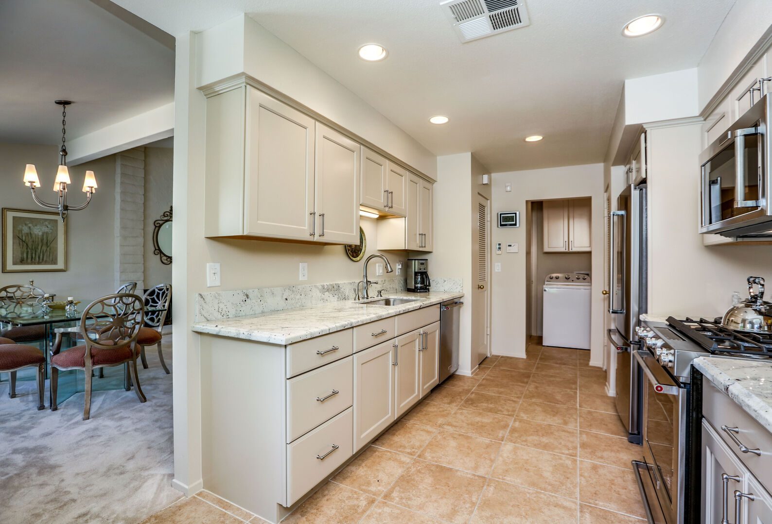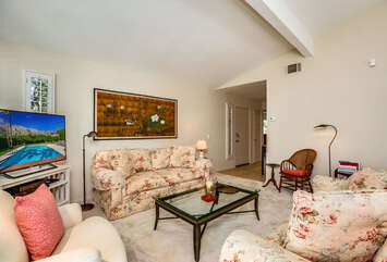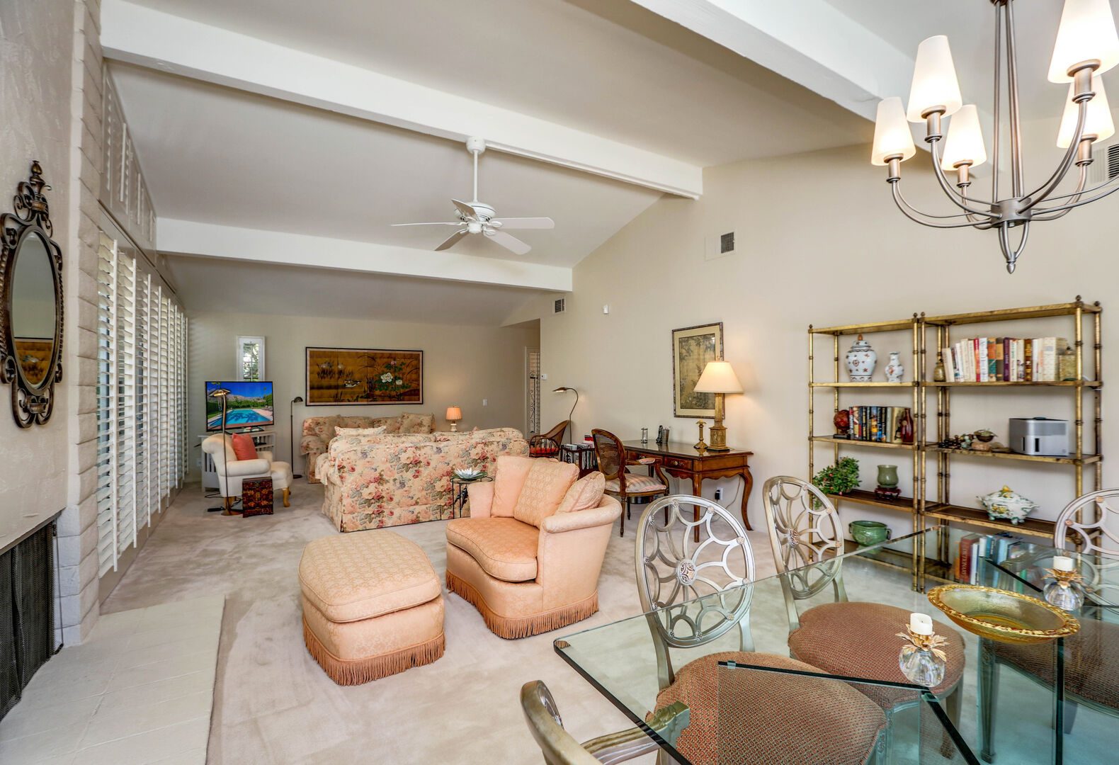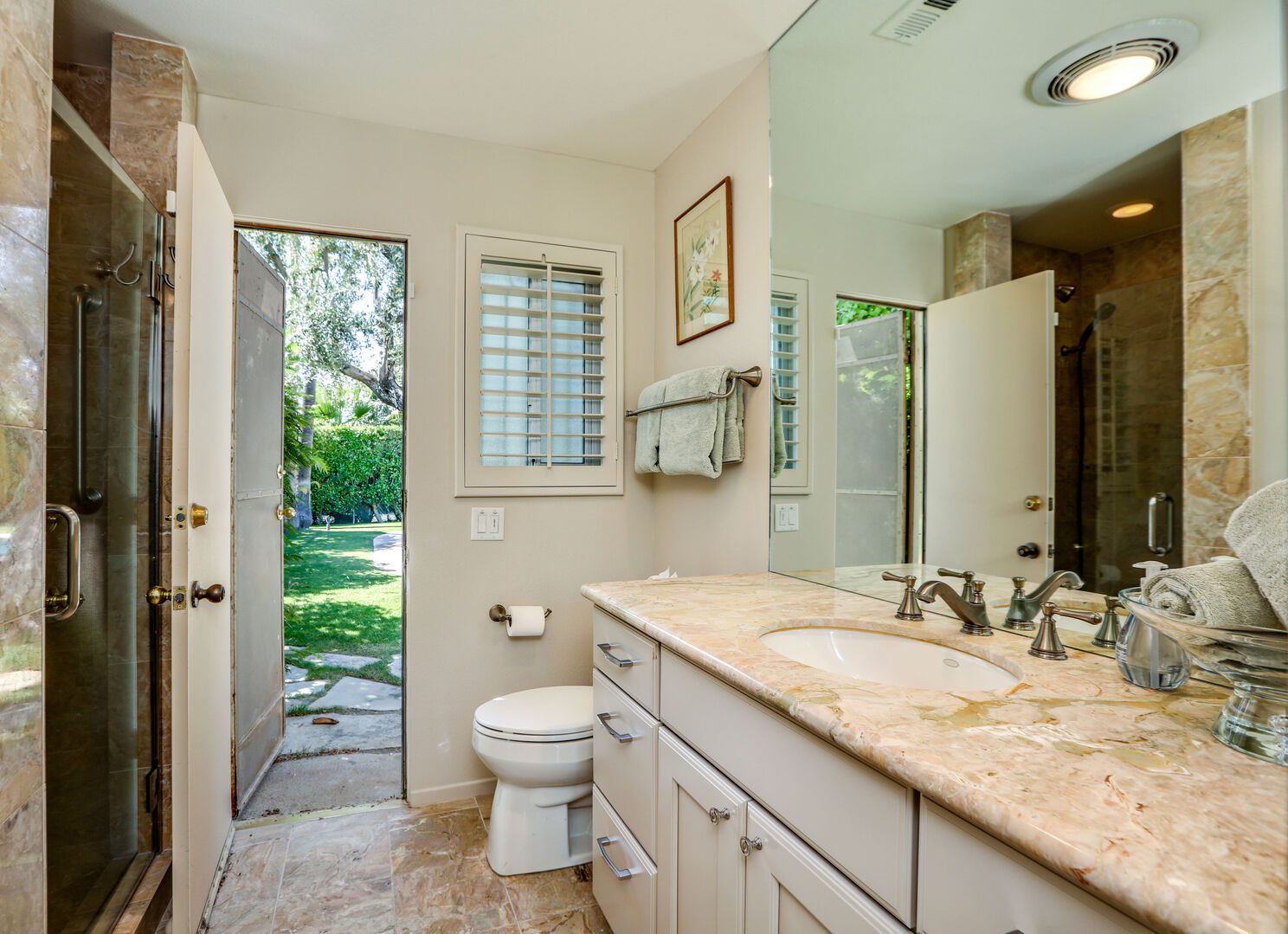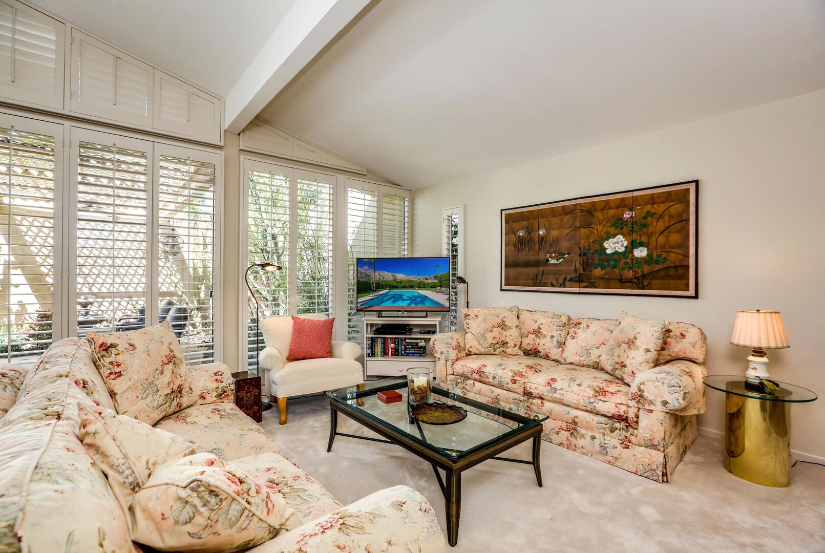 The lush, well maintained backyard has a spa-like feel to it, complete with over sized pool, lounge chairs, dining table, and propane BBQ. It is a perfect spot to relax and round out a day of golf, tennis, other outdoor activities, or even just soak up the Palm Springs sun. The backyard is also surrounded by eleven citrus trees, so feel free to pick some grapefruit and enjoy a nice, fresh grapefruit margarita - our family must have!