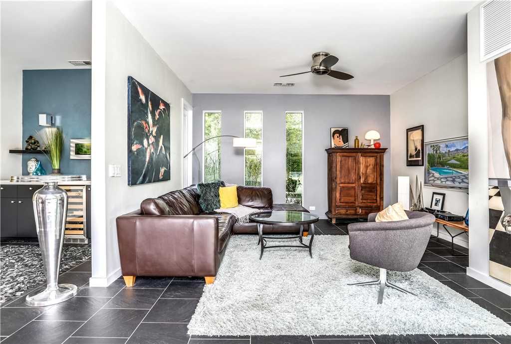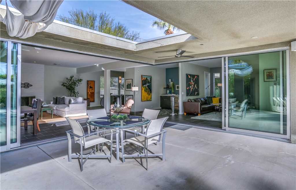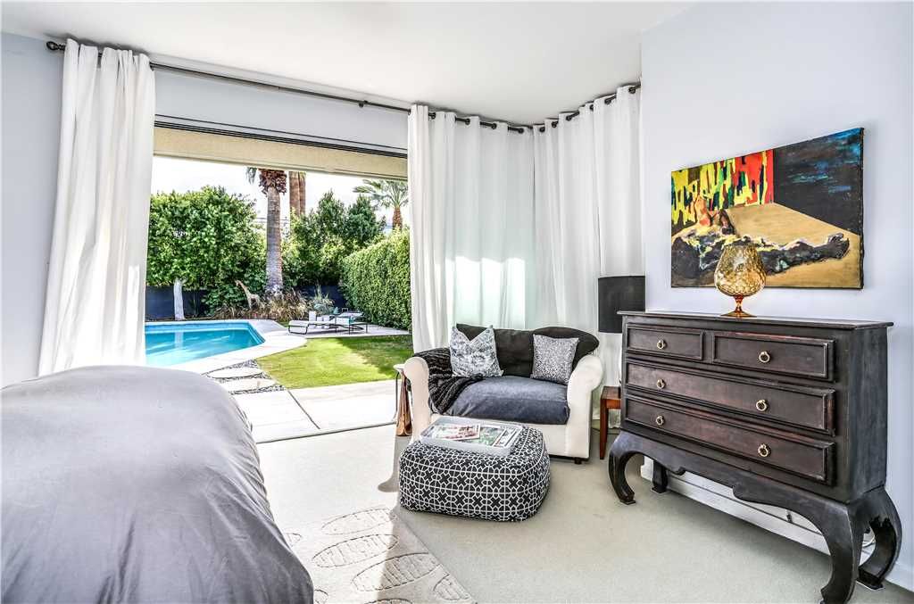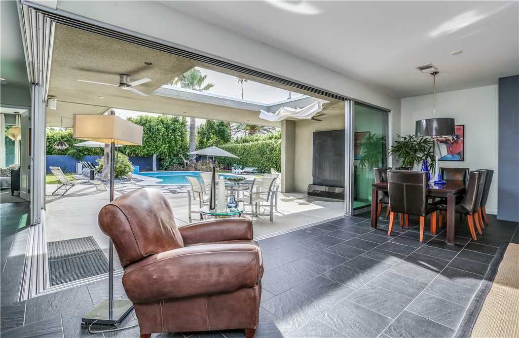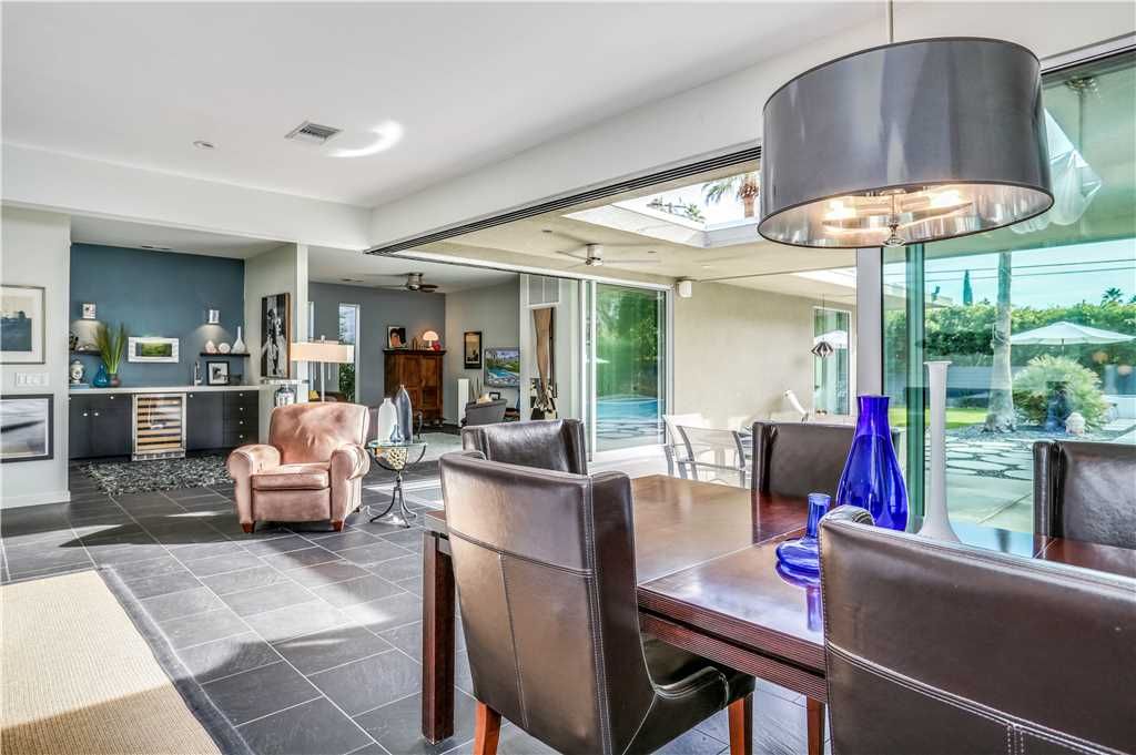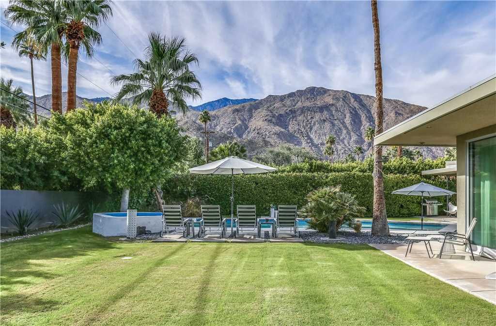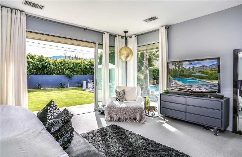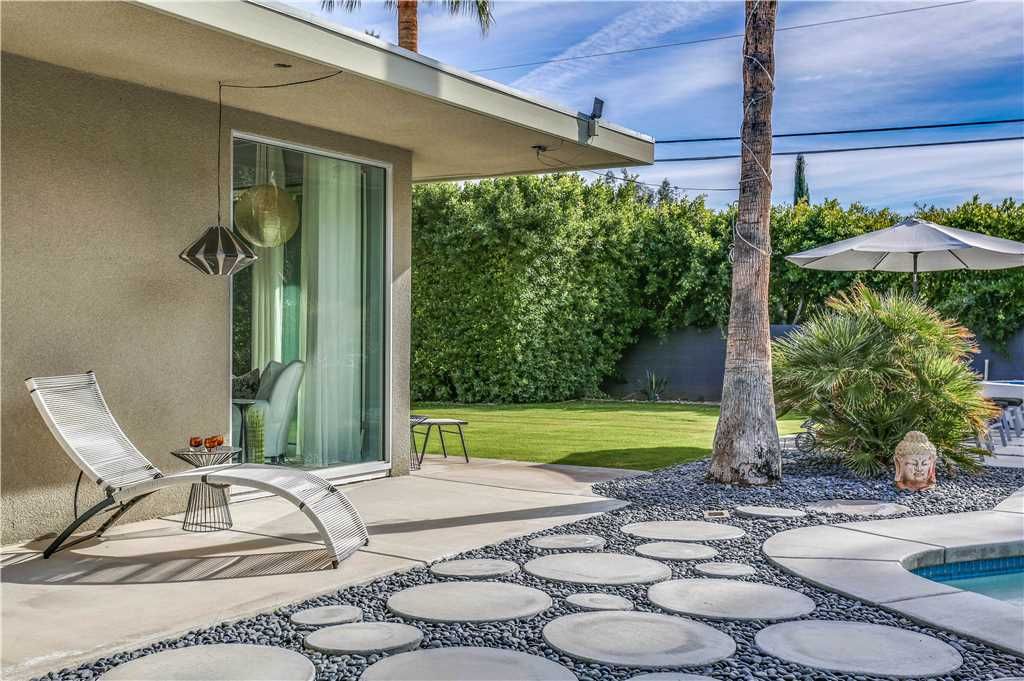 The resort-style backyard allows you to take full advantage of Palm Springs year-round sunshine, featuring a private pool and spa, outdoor lounge chairs, outdoor dining for 6, and magnificent mountain views