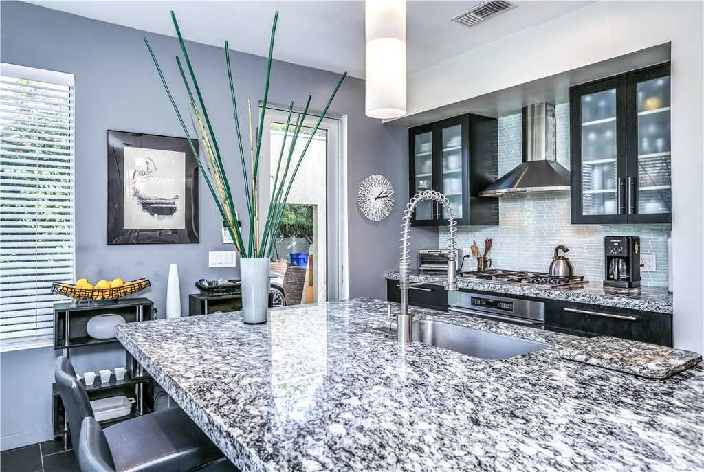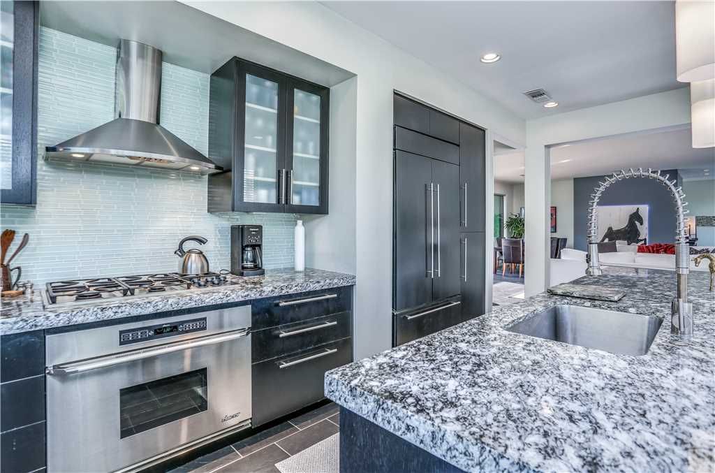The chef's kitchen in this magnificent Palm Springs vacation rental features all of the service ware and small appliances you'll need to prepare meals and entertain in style.