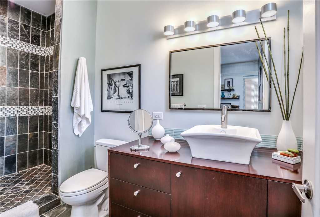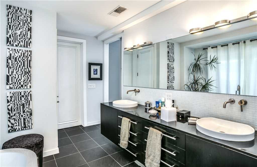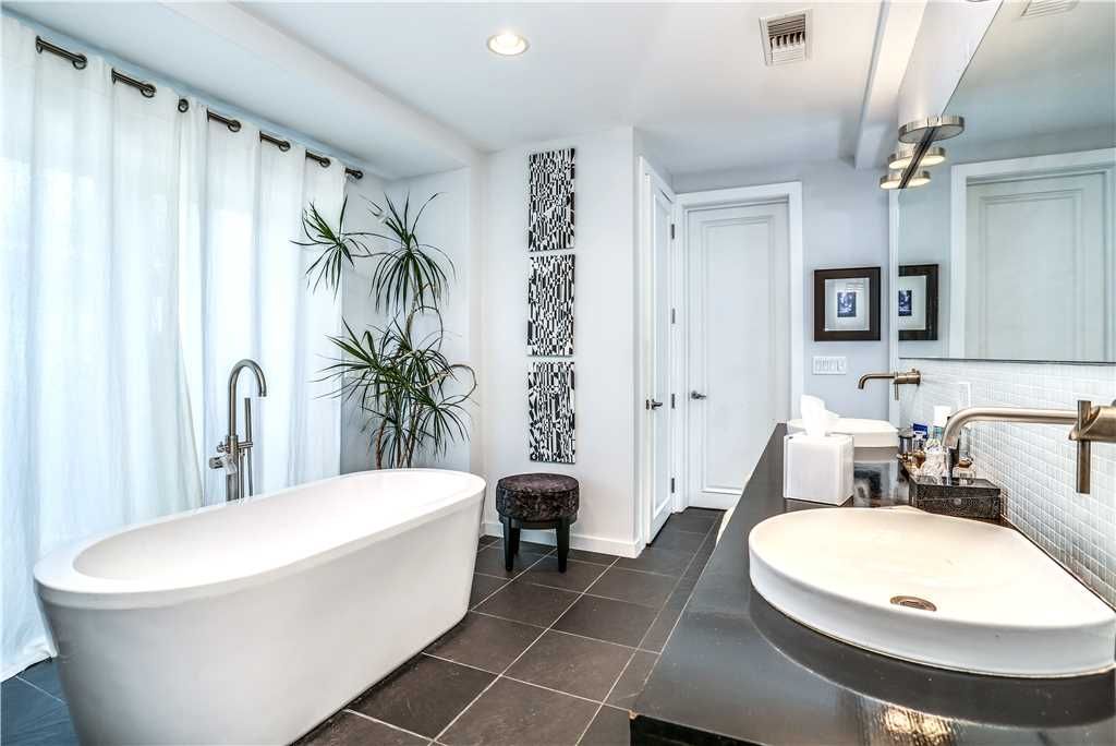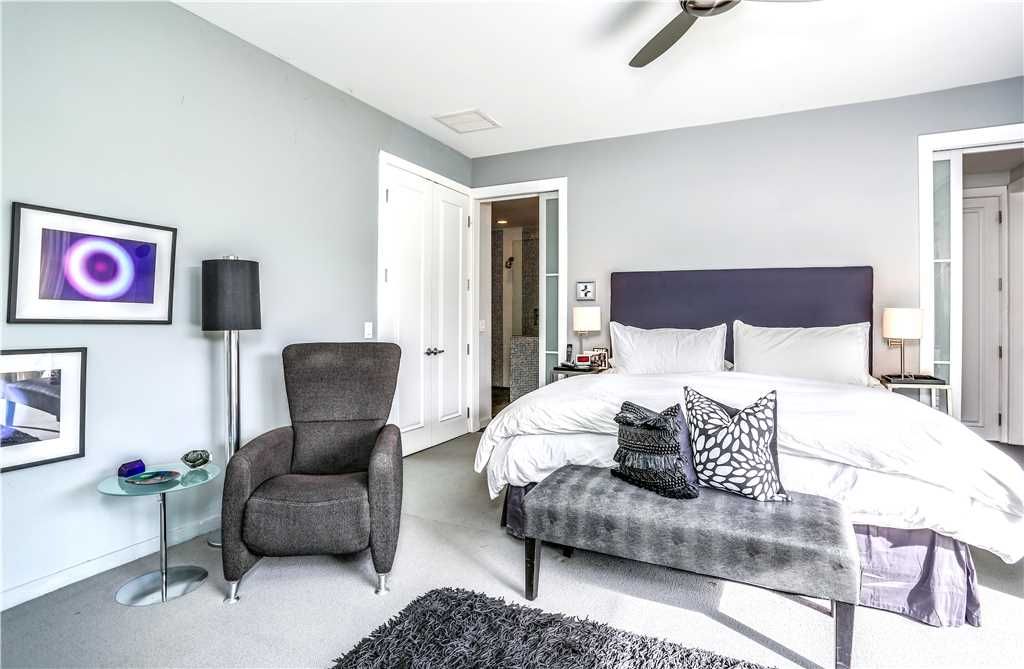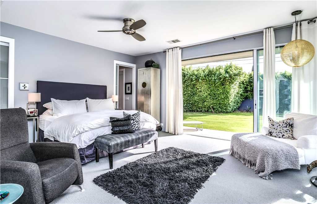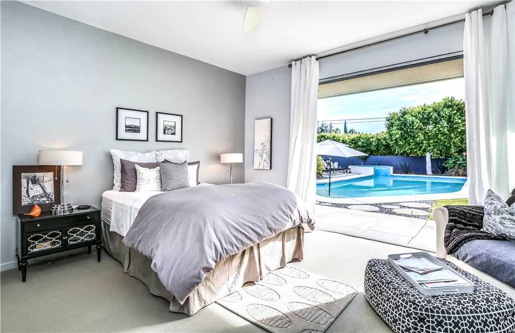 The luxurious master retreat features a beautiful king size bed with high thread count linens, and large walls-of-glass with direct access to the backyard. The en-suite master bathroom is sleek and modern offering an expansive walk-in shower and dual sinks.