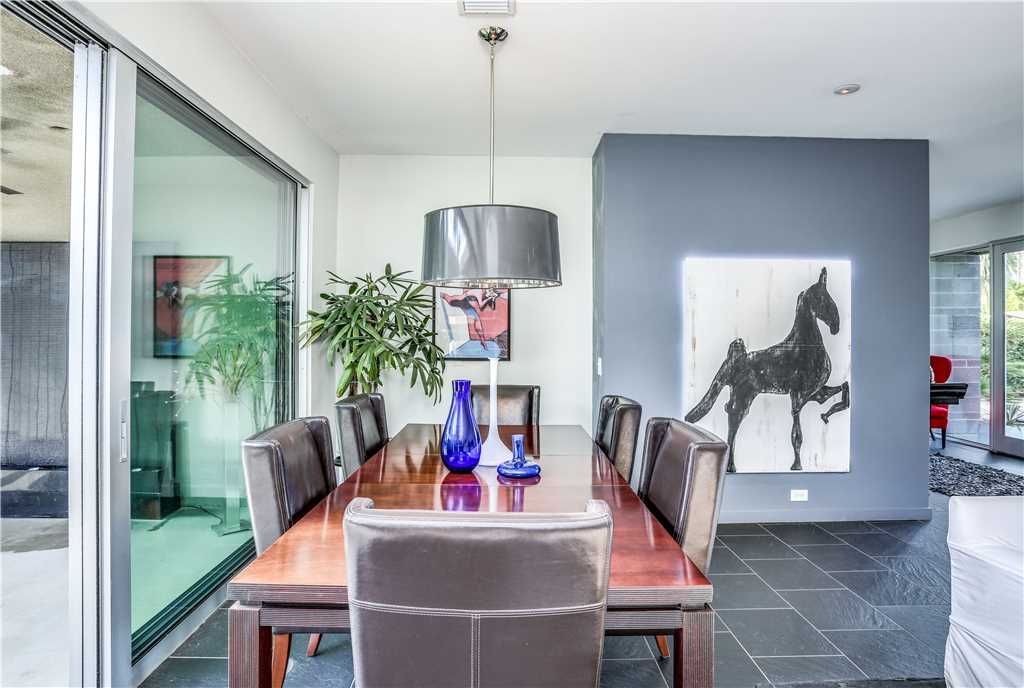 This private vacation home in Palm Springs has been professionally furnished with an elegant and luxurious combination of 20th century and contemporary style furnishings and artwork.