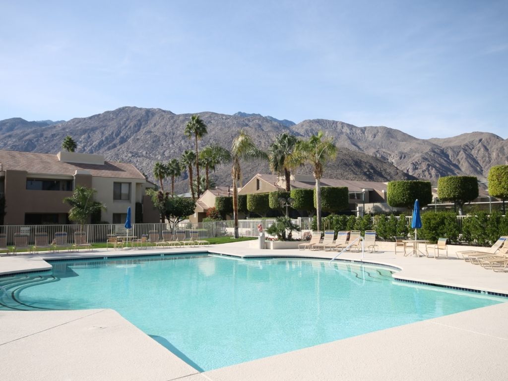 Walkable to Palm Canyon Drive, the coveted condo community features two large swimming pools, spas, tennis court, and mature private landscaped grounds. Across from the Palm Springs Convention Center, Spa Casino, and downtown Palm Canyon Drive, it's a setting becoming of any luxury resort in the heart of it all.