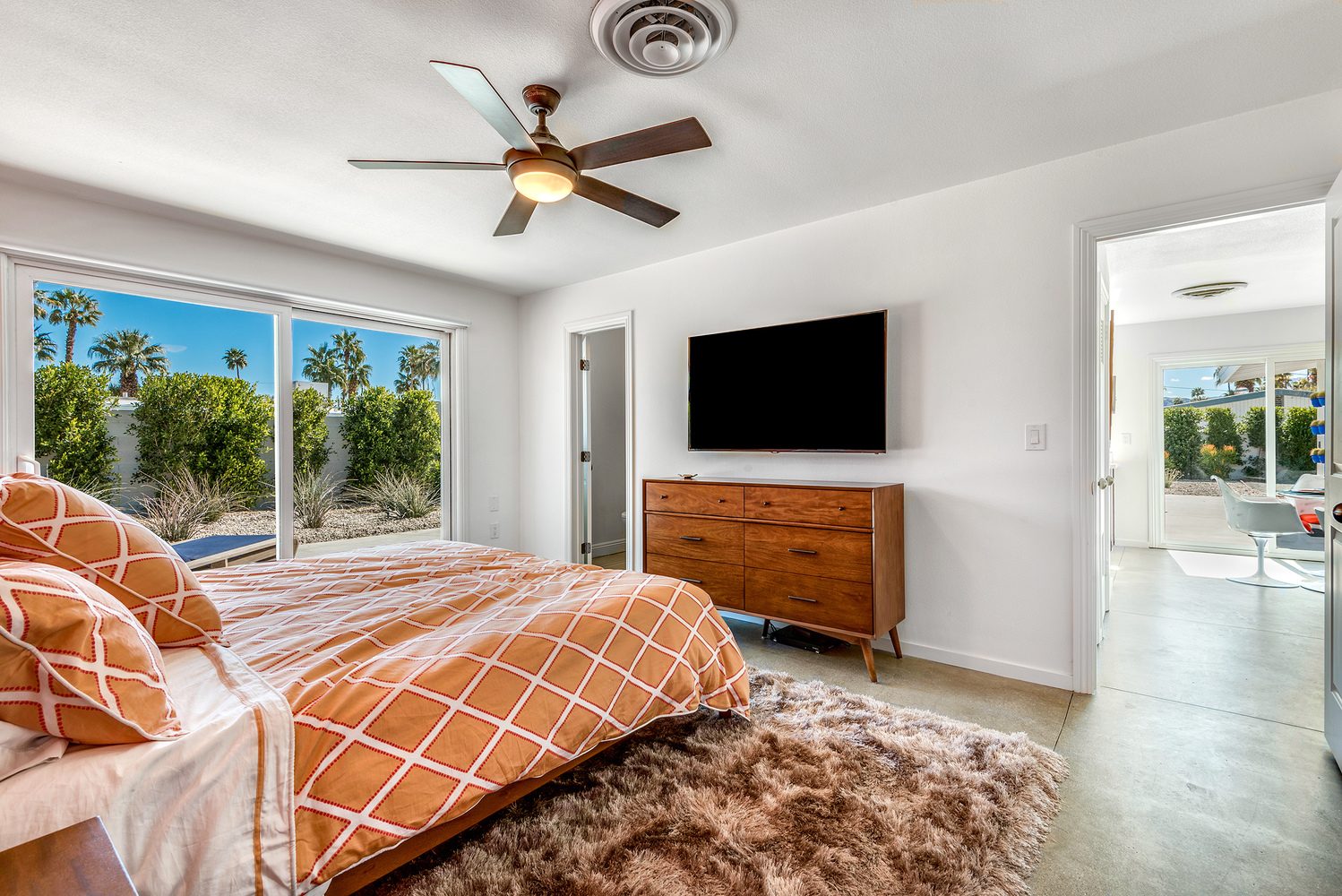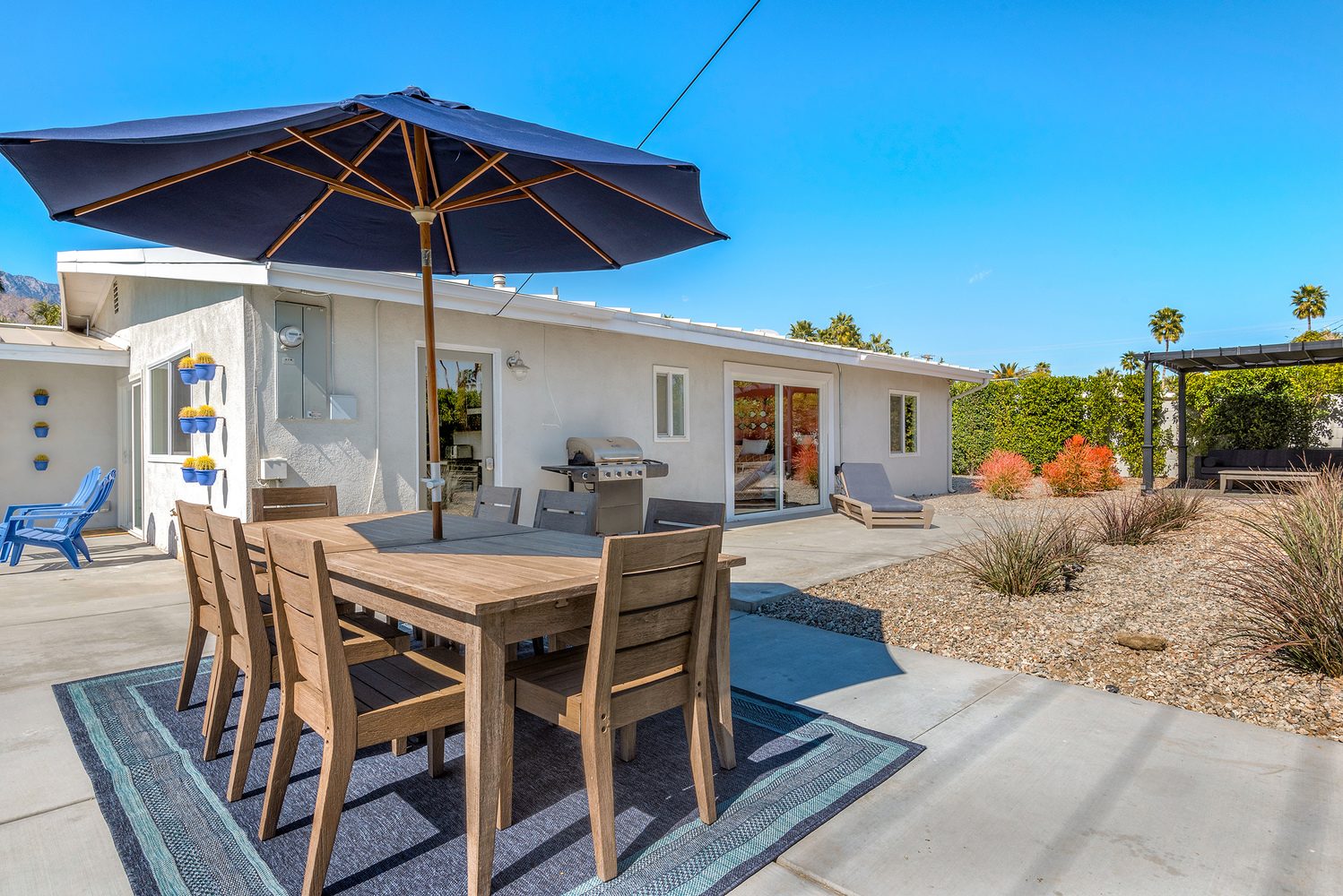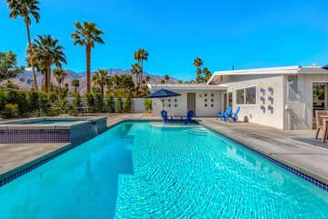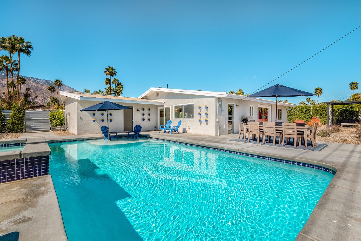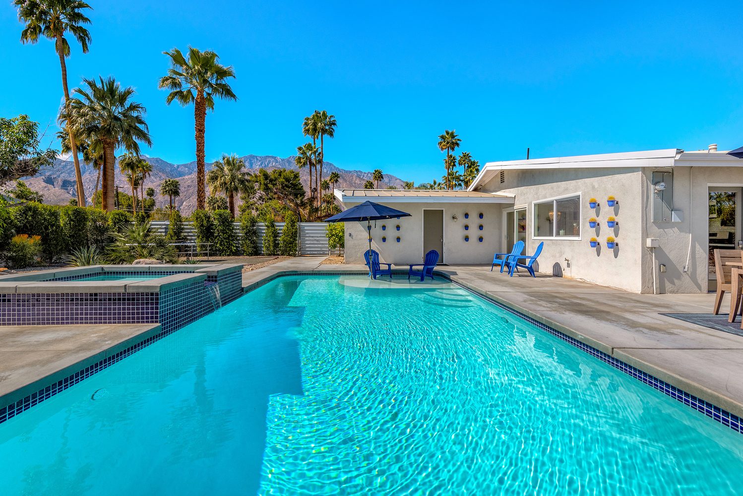 If you're looking to capture that Fun in the Sun vibe, look no further! This modernist vacation home is conveniently located within minutes to all the activities and attractions of Palm Springs and the greater Coachella Valley. This iconic Palm Springs retreat features 4 bedrooms, 2 bathrooms, open concept Gathering Room / Kitchen, and several outdoor seating areas where you and your guests can either spend time together or spread out for private moments. You and your guests will appreciate the spectacular mountain views, artful desert landscaping, curated decor, and sparkling blue swimming pool. Taking advantage of all-day sunshine, the refreshing pool is strategically located to maximize mountain views and fun in the sun.The interior design of this home has been styled in keeping to the era in which it was built, reflecting clean modern lines and harmonious color accents. Many of the furnishings are true period pieces, and all are curated with an eye for style. This is a retreat for comfort, and the casual elegance is so welcoming. A gorgeous updated kitchen features stainless steel appliances and is an entertainer's dream. Outfitted with every appliance and gadget a chef needs, you can chat with friends while prepping meals, and easily serve those just beyond the massive picture window who are dining alfresco.The Master Bedroom features a full En Suite Bath, with the other 3 guest rooms comfortably appointed for everyone staying in the home. Each room offers its own flat screen television ranging from 42-47 inches and all televisions are Smart Sync compatible. Retro Desert Vacation is aptly named and the perfect choice for the vintage modernist enthusiast, couples, and extended families. Book Today!Property DescriptionLocated in Palm SpringsApproximately 1600 sq ft4 Bedroom, 2 Bath4 Flat Screen Smart TVsGas BBQ with Shaded SeatingPrivate Pool and JacuzziOptional Pool/Spa Heating Available at Additional Cost October-MayWasher and DryerHigh Speed WiFiFull Cable Line UpPets Upon ApprovalChildren OKGarage Access28 Night MinimumTOT #4004Bed ConfigurationMaster: King + Flat Screen TVGuest 1: Queen + Flat Screen TVGuest 2: Queen + Flat Screen TVGuest 3: Queen + Flat Screen TVBathroom ConfigurationMaster: En Suite Walk-In ShowerGuest: ShowerAmenities