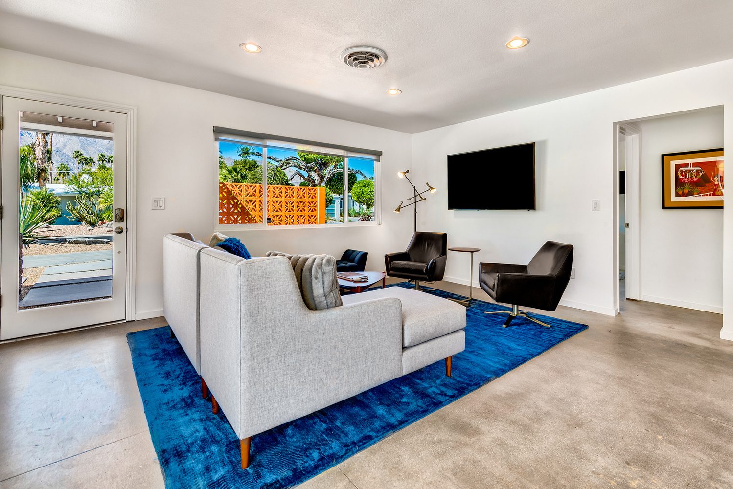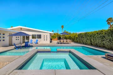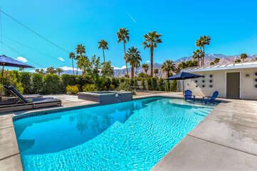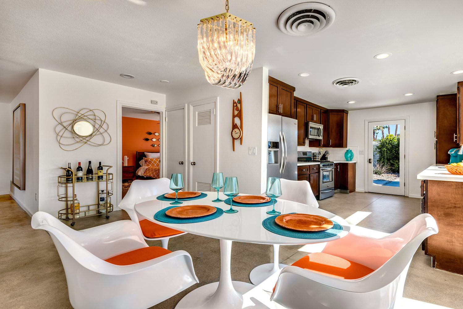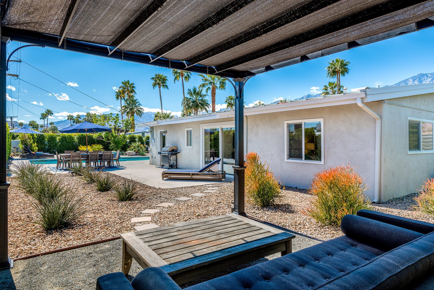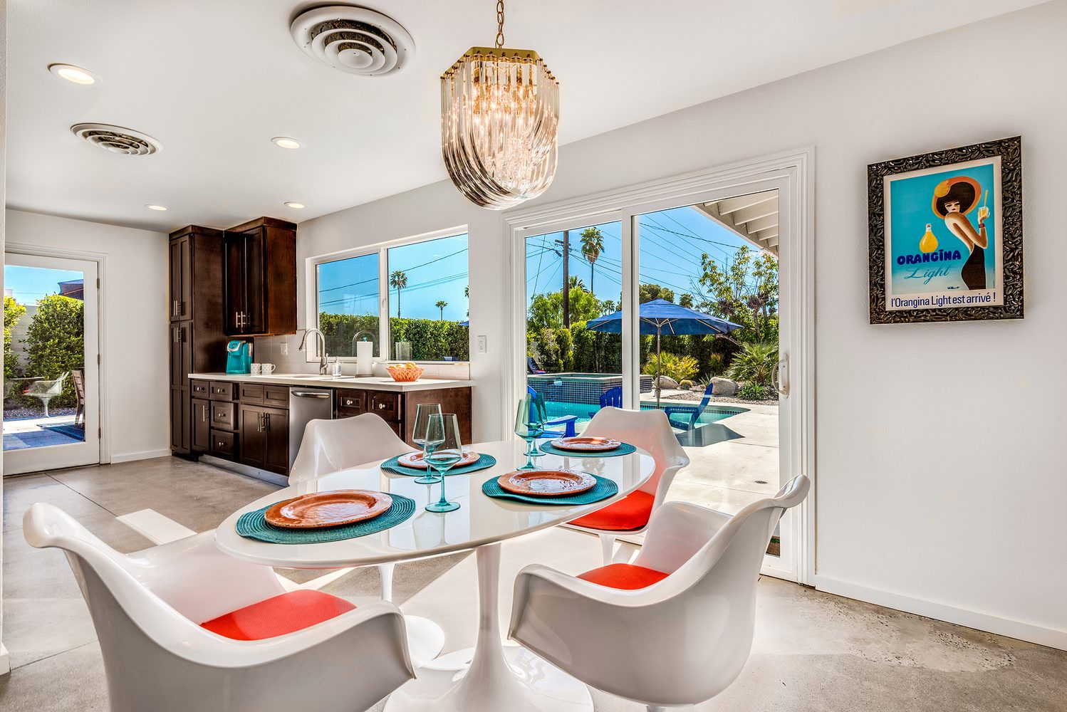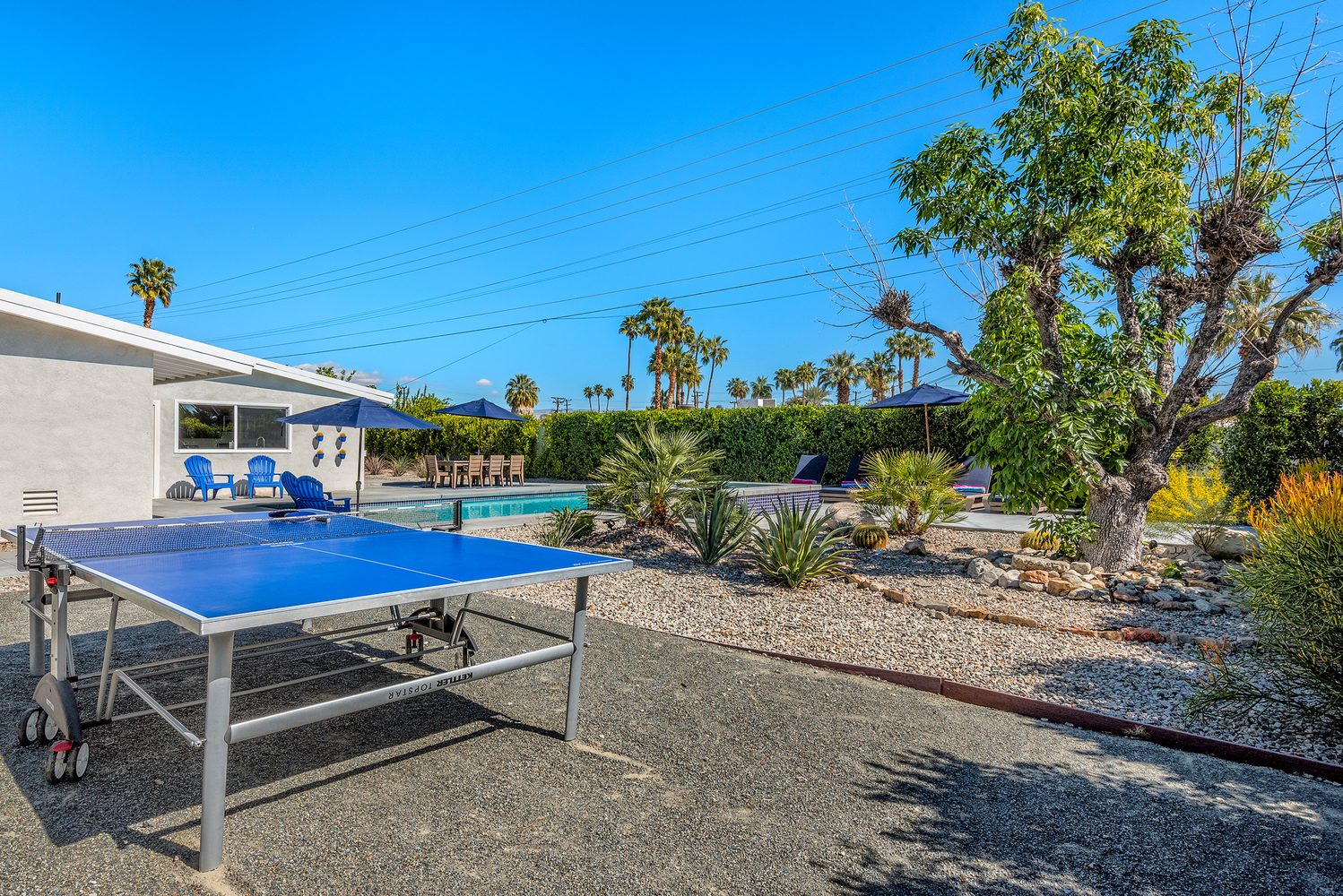 If you're looking to capture that Fun in the Sun vibe, look no further! This modernist vacation home is conveniently located within minutes to all the activities and attractions of Palm Springs and the greater Coachella Valley. This iconic Palm Springs retreat features 4 bedrooms, 2 bathrooms, open concept Gathering Room / Kitchen, and several outdoor seating areas where you and your guests can either spend time together or spread out for private moments. You and your guests will appreciate the spectacular mountain views, artful desert landscaping, curated decor, and sparkling blue swimming pool. Taking advantage of all-day sunshine, the refreshing pool is strategically located to maximize mountain views and fun in the sun.The interior design of this home has been styled in keeping to the era in which it was built, reflecting clean modern lines and harmonious color accents. Many of the furnishings are true period pieces, and all are curated with an eye for style. This is a retreat for comfort, and the casual elegance is so welcoming. A gorgeous updated kitchen features stainless steel appliances and is an entertainer's dream. Outfitted with every appliance and gadget a chef needs, you can chat with friends while prepping meals, and easily serve those just beyond the massive picture window who are dining alfresco.The Master Bedroom features a full En Suite Bath, with the other 3 guest rooms comfortably appointed for everyone staying in the home. Each room offers its own flat screen television ranging from 42-47 inches and all televisions are Smart Sync compatible. Retro Desert Vacation is aptly named and the perfect choice for the vintage modernist enthusiast, couples, and extended families. Book Today!Property DescriptionLocated in Palm SpringsApproximately 1600 sq ft4 Bedroom, 2 Bath4 Flat Screen Smart TVsGas BBQ with Shaded SeatingPrivate Pool and JacuzziOptional Pool/Spa Heating Available at Additional Cost October-MayWasher and DryerHigh Speed WiFiFull Cable Line UpPets Upon ApprovalChildren OKGarage Access28 Night MinimumTOT #4004Bed ConfigurationMaster: King + Flat Screen TVGuest 1: Queen + Flat Screen TVGuest 2: Queen + Flat Screen TVGuest 3: Queen + Flat Screen TVBathroom ConfigurationMaster: En Suite Walk-In ShowerGuest: ShowerAmenities