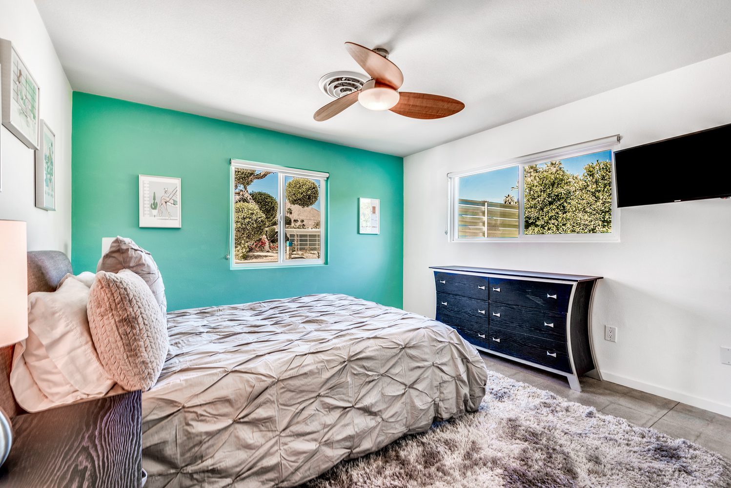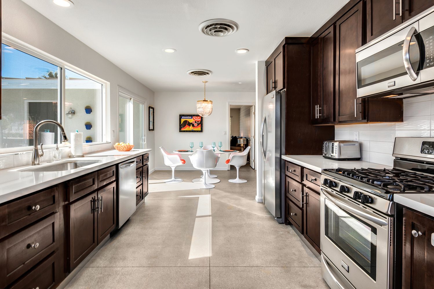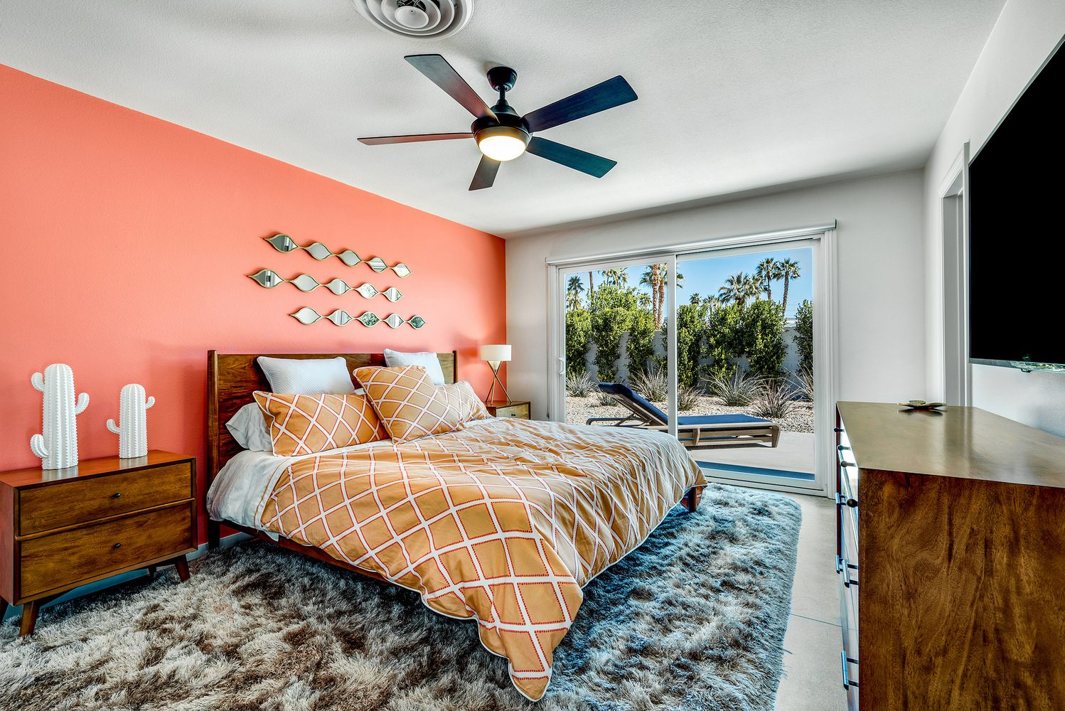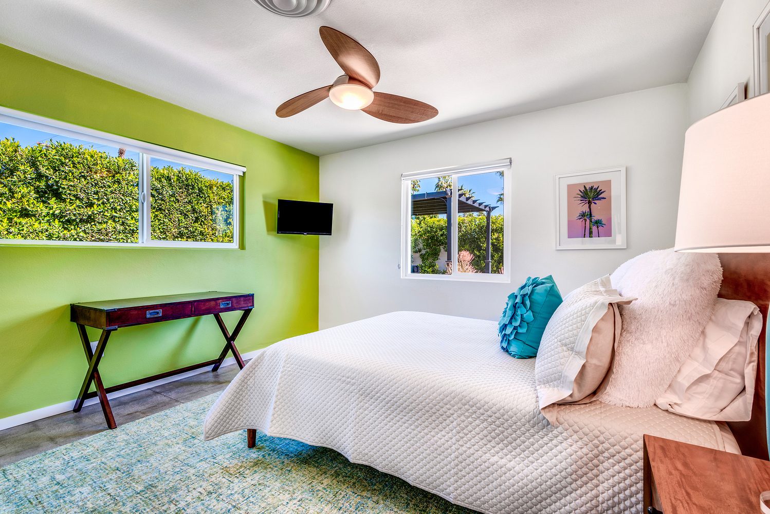 If you're looking to capture that Fun in the Sun vibe, look no further! This modernist vacation home is conveniently located within minutes to all the activities and attractions of Palm Springs and the greater Coachella Valley. This iconic Palm Springs retreat features 4 bedrooms, 2 bathrooms, open concept Gathering Room / Kitchen, and several outdoor seating areas where you and your guests can either spend time together or spread out for private moments. You and your guests will appreciate the spectacular mountain views, artful desert landscaping, curated decor, and sparkling blue swimming pool. Taking advantage of all-day sunshine, the refreshing pool is strategically located to maximize mountain views and fun in the sun.The interior design of this home has been styled in keeping to the era in which it was built, reflecting clean modern lines and harmonious color accents. Many of the furnishings are true period pieces, and all are curated with an eye for style. This is a retreat for comfort, and the casual elegance is so welcoming. A gorgeous updated kitchen features stainless steel appliances and is an entertainer's dream. Outfitted with every appliance and gadget a chef needs, you can chat with friends while prepping meals, and easily serve those just beyond the massive picture window who are dining alfresco.The Master Bedroom features a full En Suite Bath, with the other 3 guest rooms comfortably appointed for everyone staying in the home. Each room offers its own flat screen television ranging from 42-47 inches and all televisions are Smart Sync compatible. Retro Desert Vacation is aptly named and the perfect choice for the vintage modernist enthusiast, couples, and extended families. Book Today!Property DescriptionLocated in Palm SpringsApproximately 1600 sq ft4 Bedroom, 2 Bath4 Flat Screen Smart TVsGas BBQ with Shaded SeatingPrivate Pool and JacuzziOptional Pool/Spa Heating Available at Additional Cost October-MayWasher and DryerHigh Speed WiFiFull Cable Line UpPets Upon ApprovalChildren OKGarage Access28 Night MinimumTOT #4004Bed ConfigurationMaster: King + Flat Screen TVGuest 1: Queen + Flat Screen TVGuest 2: Queen + Flat Screen TVGuest 3: Queen + Flat Screen TVBathroom ConfigurationMaster: En Suite Walk-In ShowerGuest: ShowerAmenities