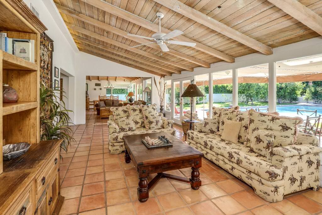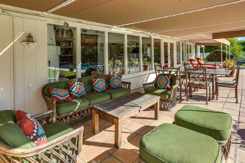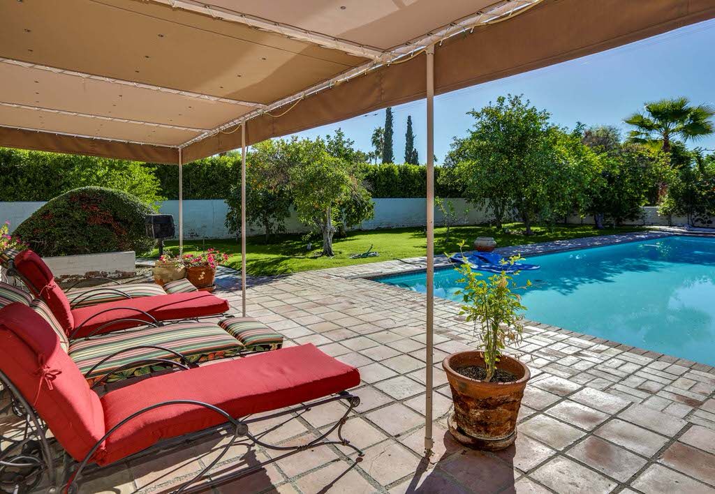 You can also enjoy the sunny views of the backyard pool from the kitchen, living room, office and master bedroom. As the sun sets behind the Palm Springs mountains, enjoy the quiet serenity perfect for casual dining or indoor-outdoor entertaining. After dinner, relax on the patio overlooking the private pool.