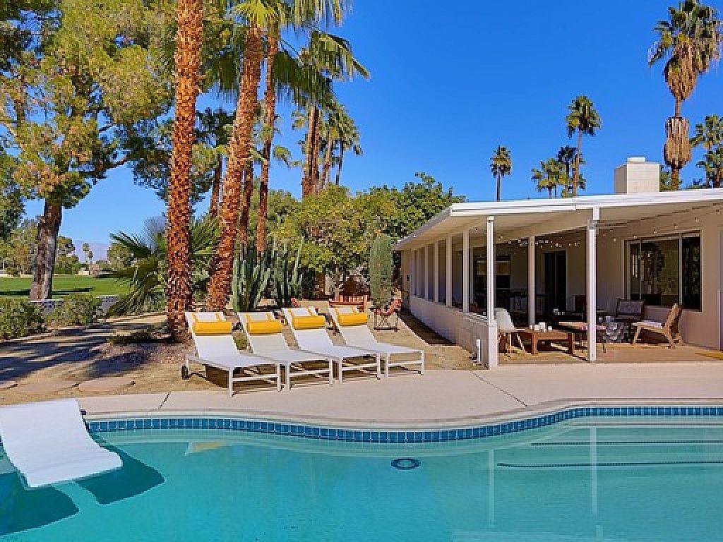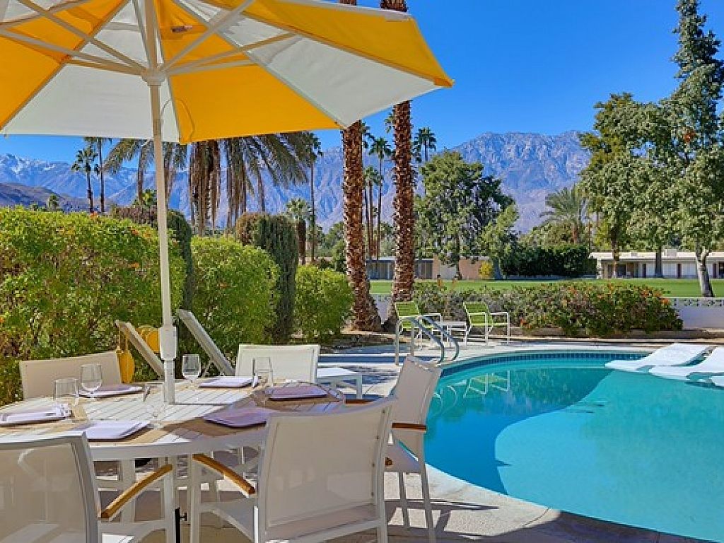 Stylishly furnished and spacious Golf Course and Mountain view home with sparkling pool and spa This beautiful vacation rental home is nestled on the center fairway of the exceptional Tahquitz Creek golf course.