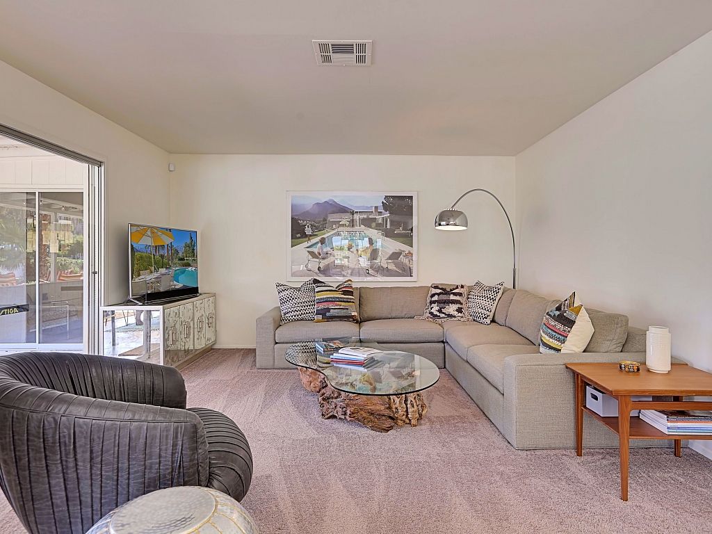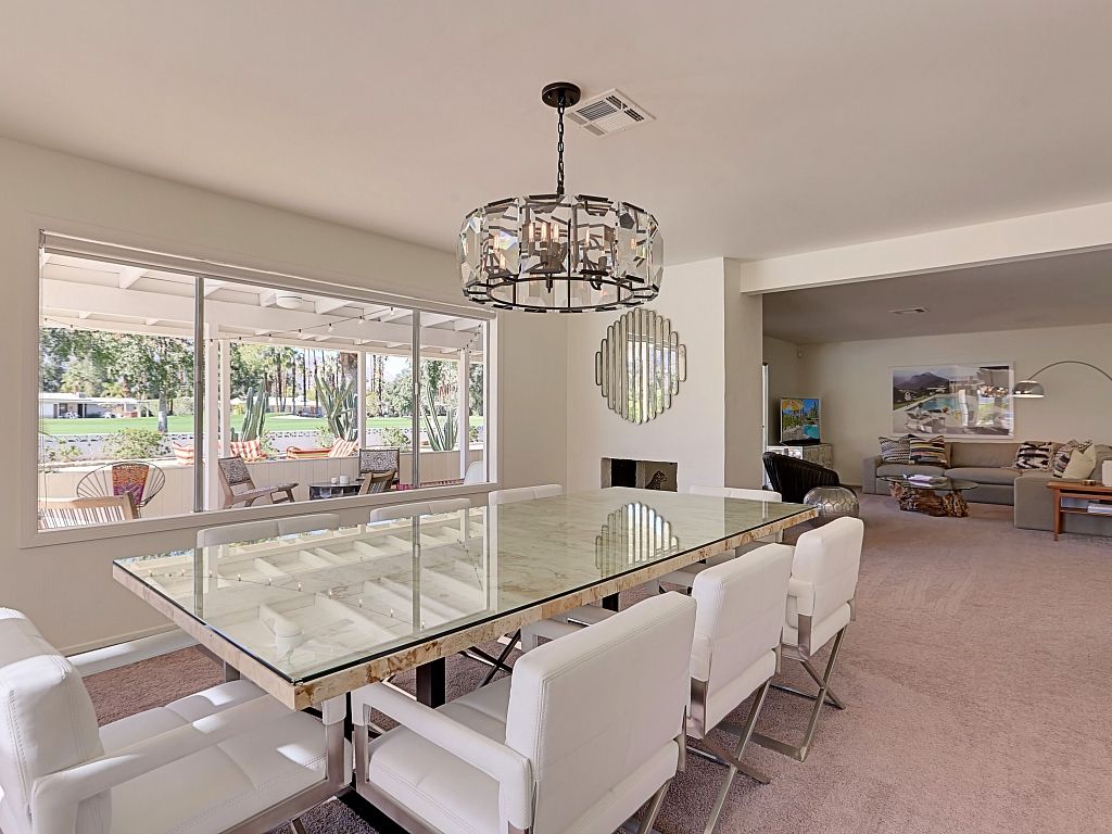 Inside you'll find everything has been well prepared for your comfort and vacation enjoyment. Shooting Star offers a large open concept living room / dining room / kitchen with double-sided fireplace that opens to the patios for endless scenic backyard views inside, and indoor/outdoor living, perfect for connecting with your loved ones. The designer furnishings throughout the house were all thoughtfully curated by the Owners to provide the quintessential Palm Springs vacation experience for your sunny destination getaway.