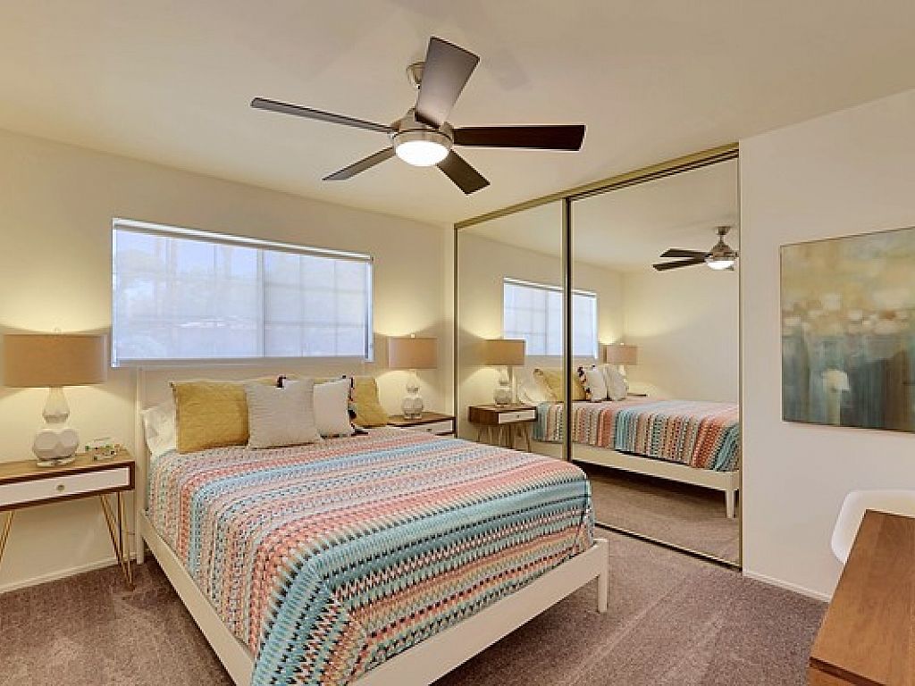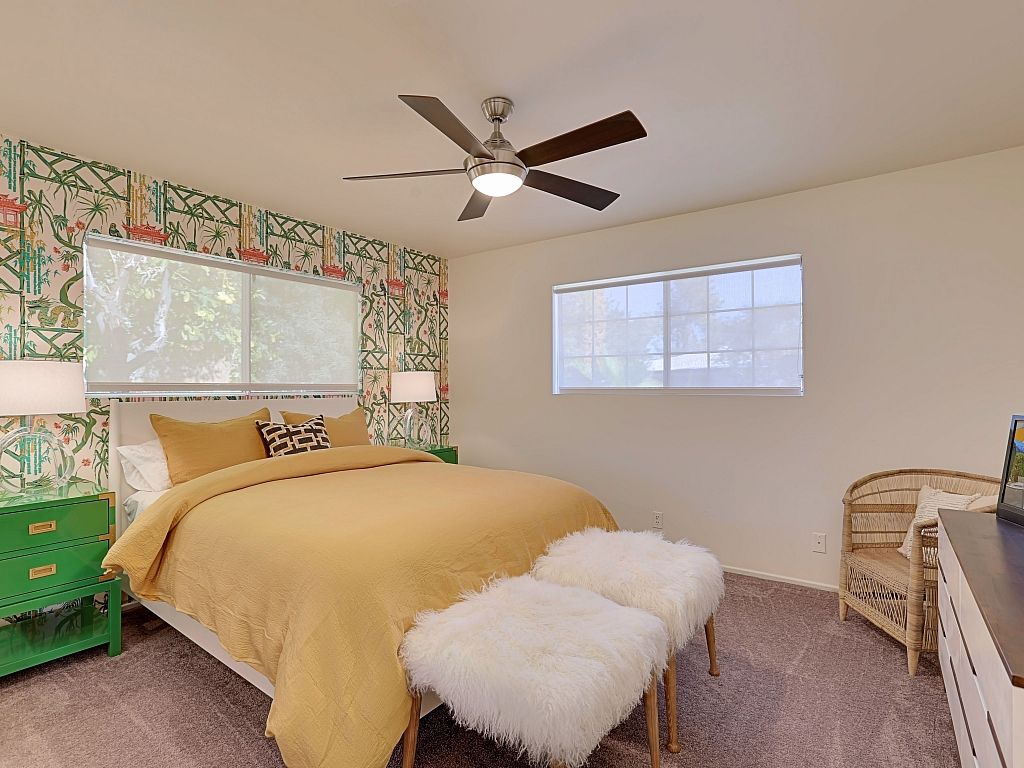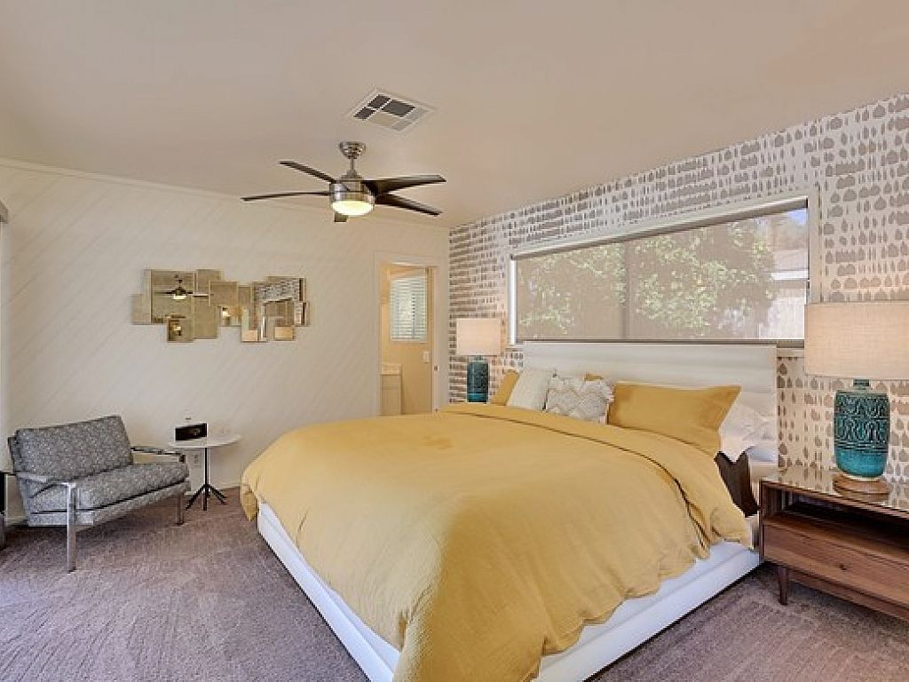 Shooting Star is perfectly located for fun in the sun, stargazing by night and taking in the stunning Palm Springs desert landscape This 3-bedroom, 2-bath designer-furnished home captures the hip and playful fun of Palm Springs by blending past and present, all with modern luxury and amenities. Each bedroom features new deluxe memory foam mattresses; luxurious bedding and 400 thread count sheets with flat screen TV's equipped with Direct TV and DVR.