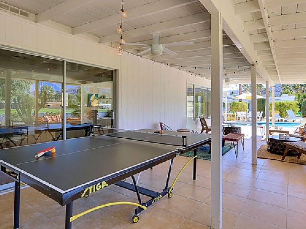 There are almost too many thoughtful touches to list at this great golf course getaway The private pool and spa with abundant outdoor seating, stainless BBQ grill, well-groomed desert landscape, outdoor fire pit, 6 chaise loungers to soak up the sun or enjoy watching golfers on the up-close golf course, a ping-pong table, and beautiful accented landscape that set the scene as the sun dips down below the magnificent mountain range.