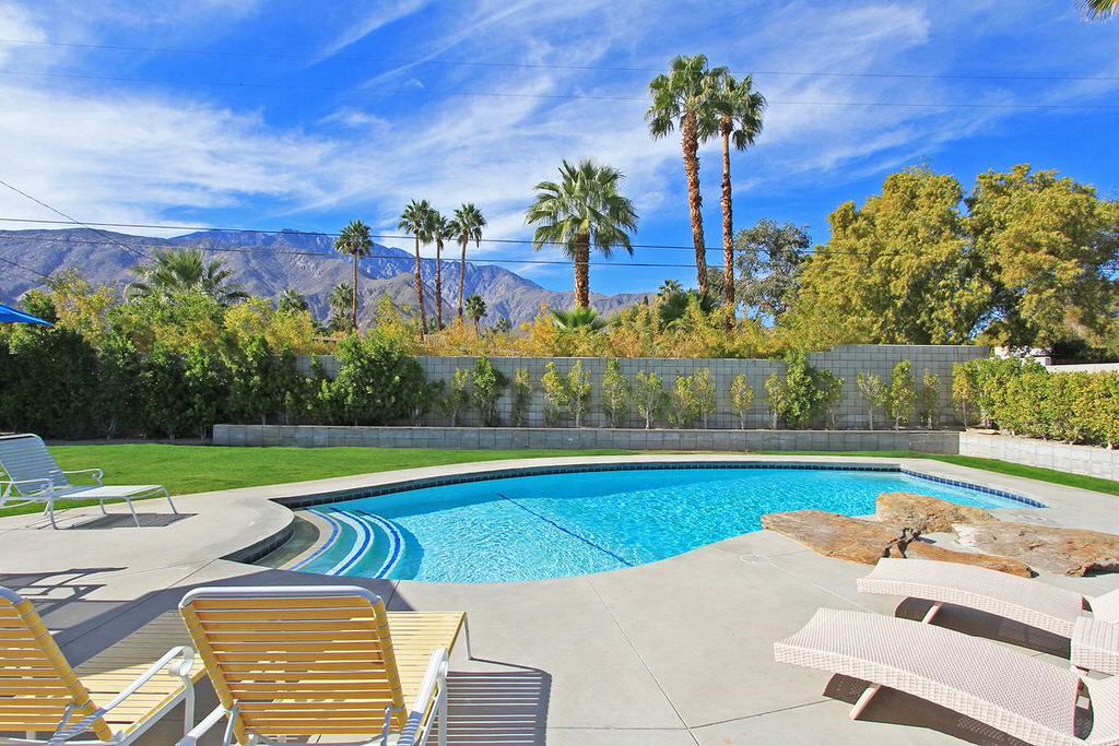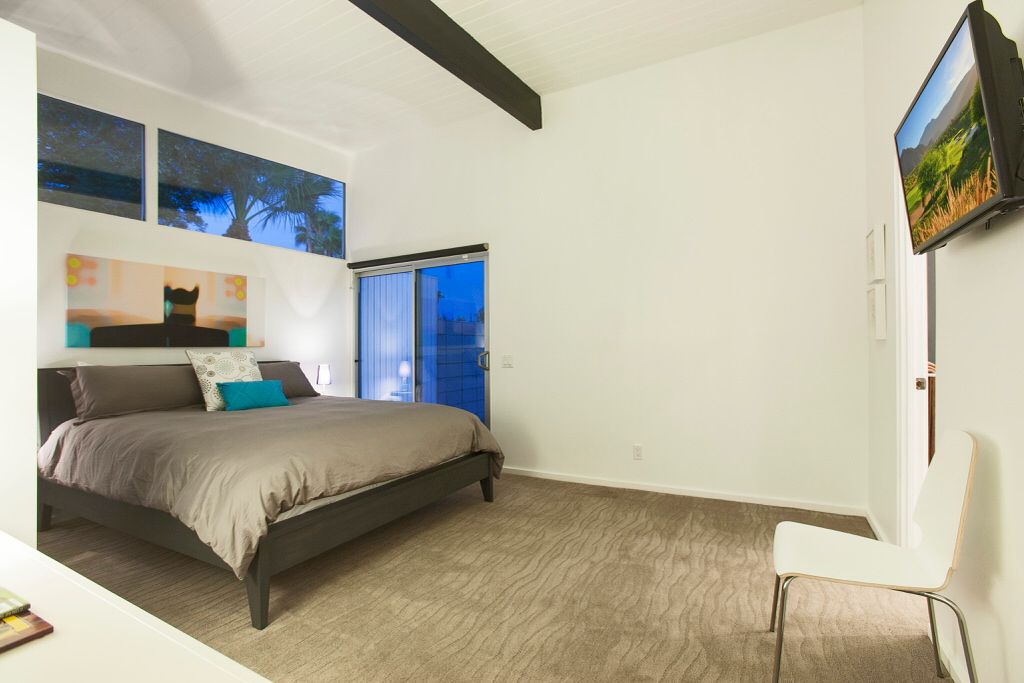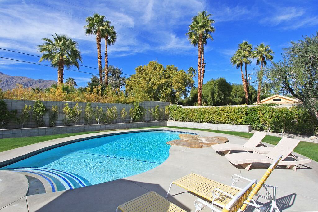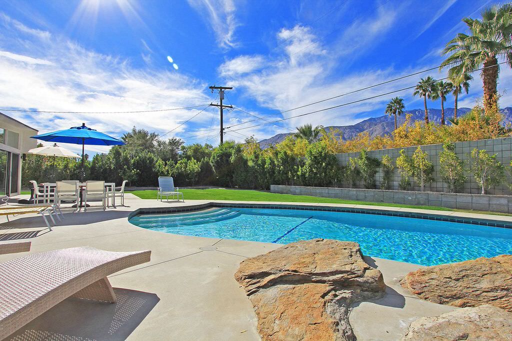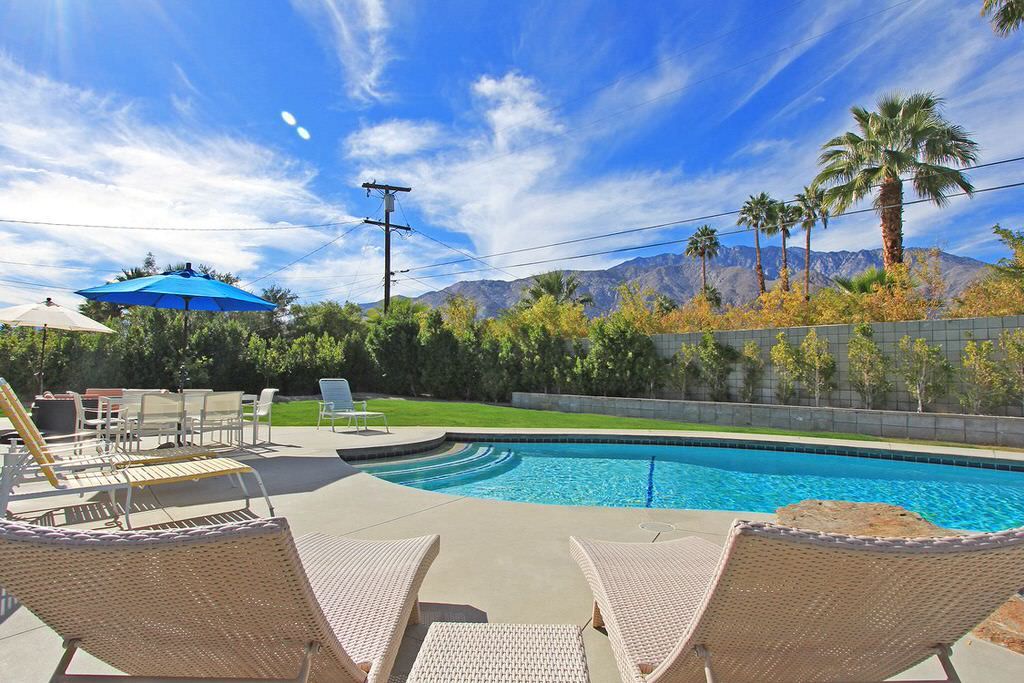 This Palm Springs vacation home offers 3 stylishly appointed bedrooms. The master features a Cal King size bed, 32"" flat screen TV, and an ensuite bathroom with walk-in shower and direct access to the backyard.