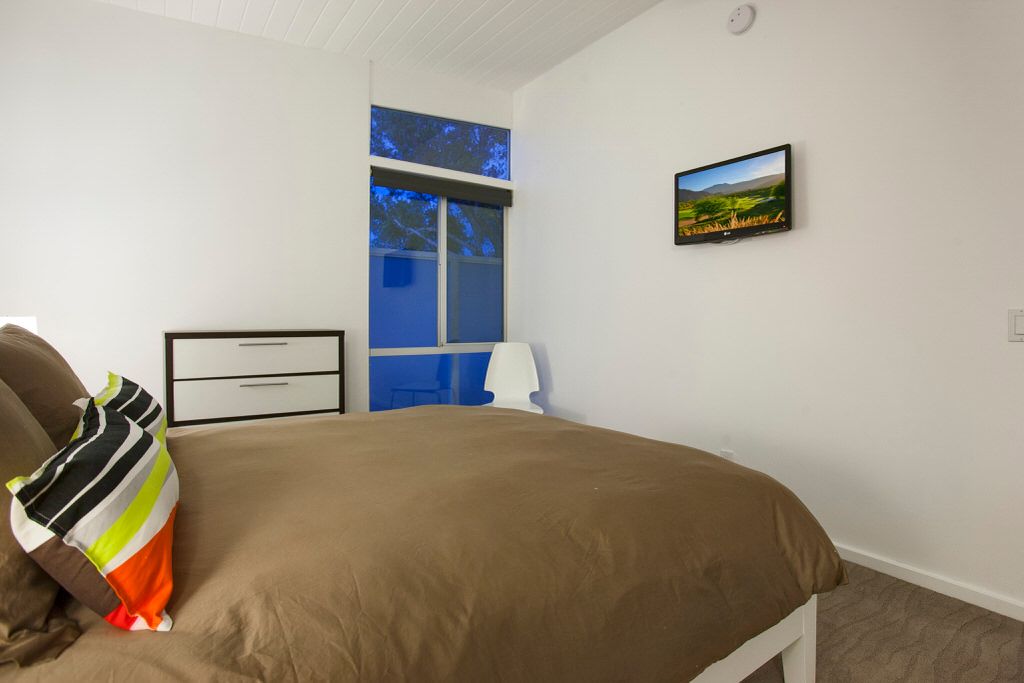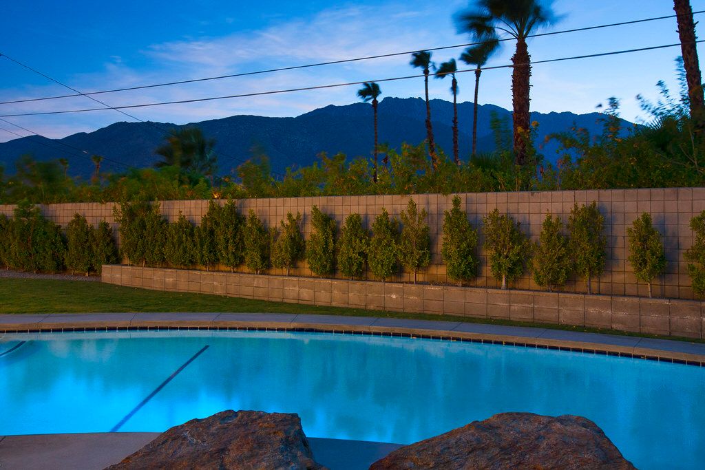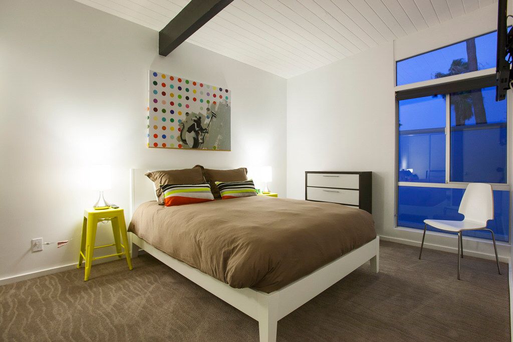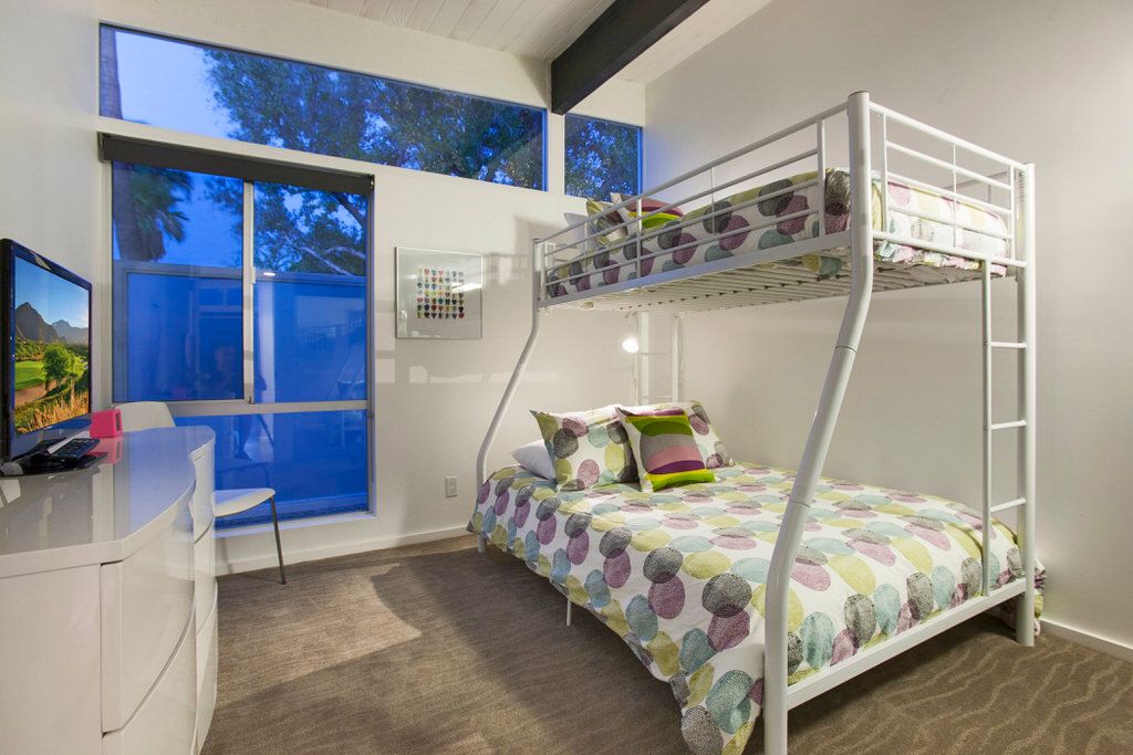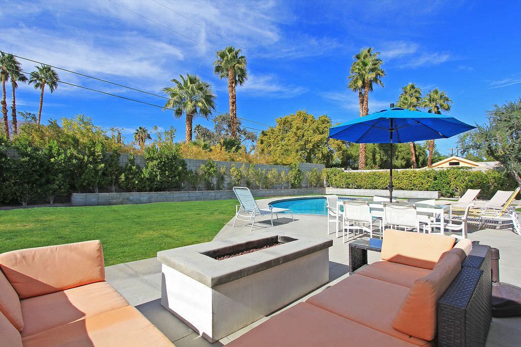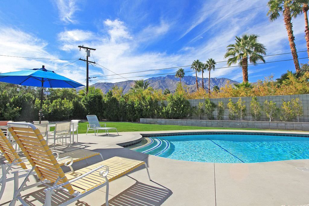 This Palm Springs vacation home offers 3 stylishly appointed bedrooms. The master features a Cal King size bed, 32"" flat screen TV, and an ensuite bathroom with walk-in shower and direct access to the backyard.