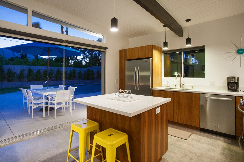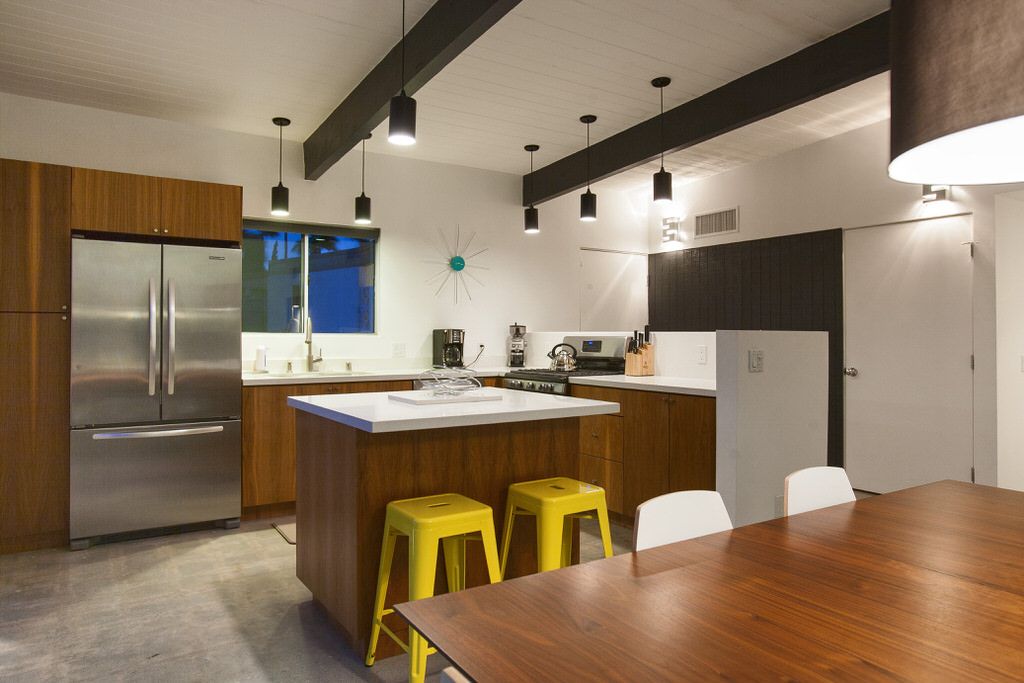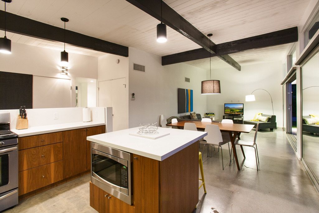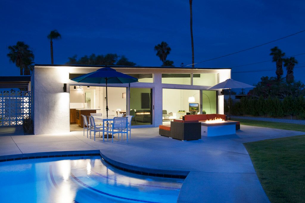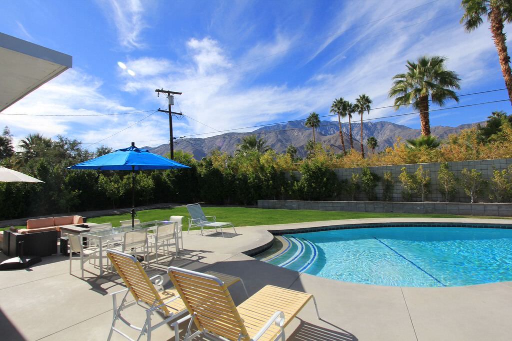 This gorgeous midcentury modern vacation home was elegantly designed by Palmer & Krisel for the Alexander Construction Company in 1959 and has been recently updated with beautiful finishes and today's modern conveniences.