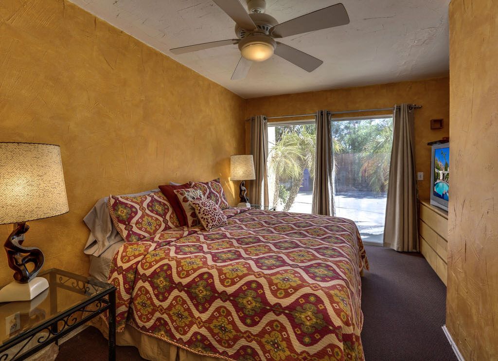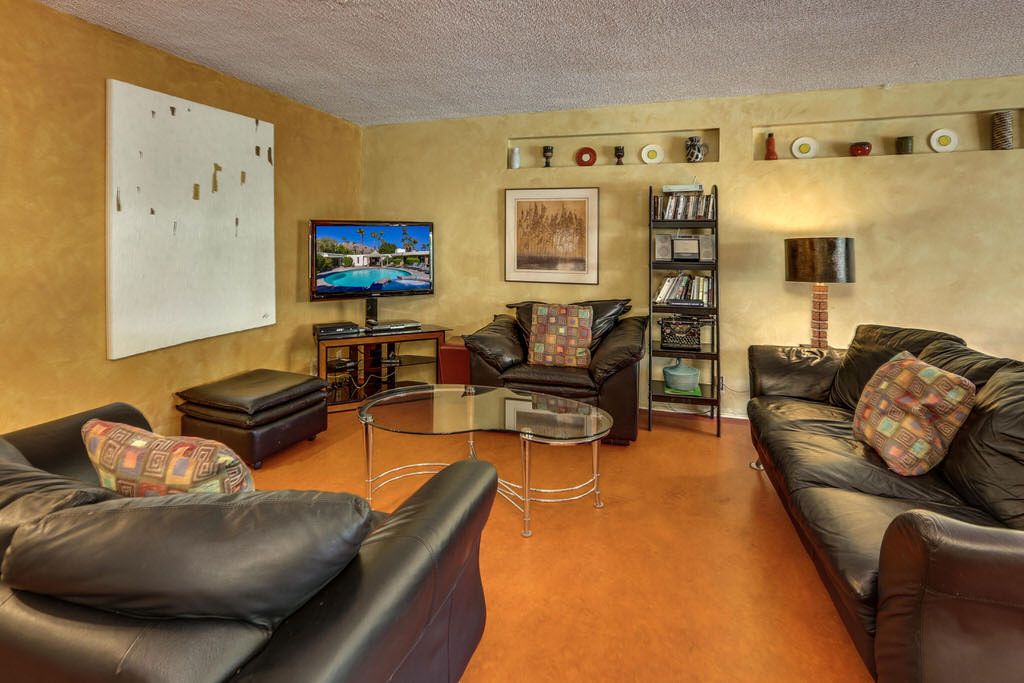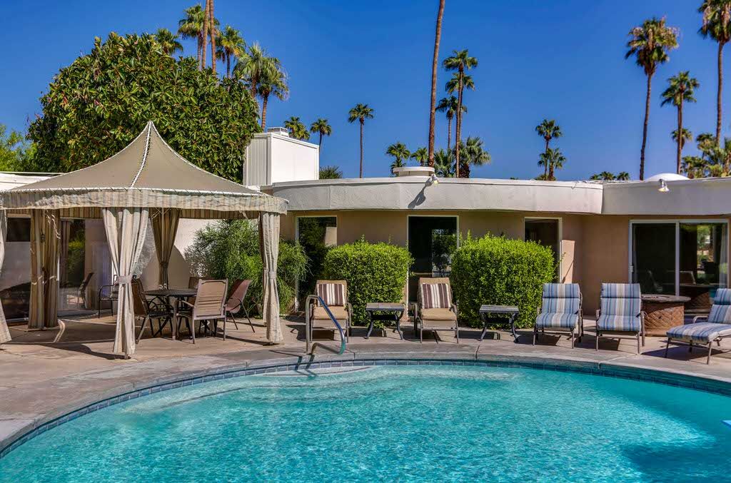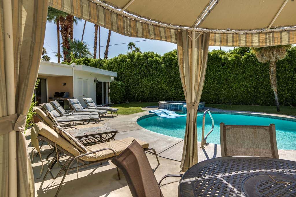 This Palm Springs vacation rental is a private home for short-term or seasonal rental, nestled on a large interior corner lot on quiet street in South Palm Springs. The home is near shopping, dining and downtown, and convenient to Smoketree Village shopping center in South Palm Springs.