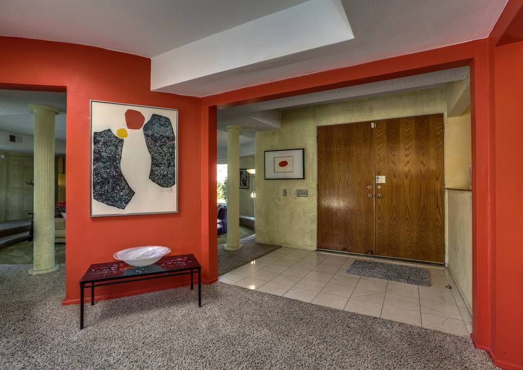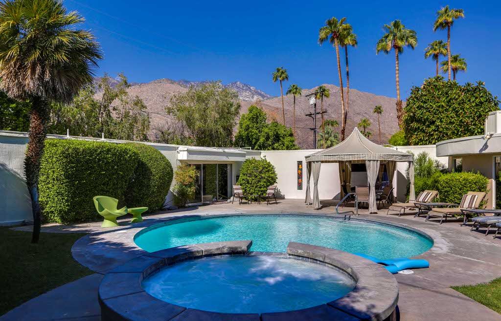A private circular drive and double doors greet you as you arrive at this distinctive Palm Springs Mid-Century vacation home.
