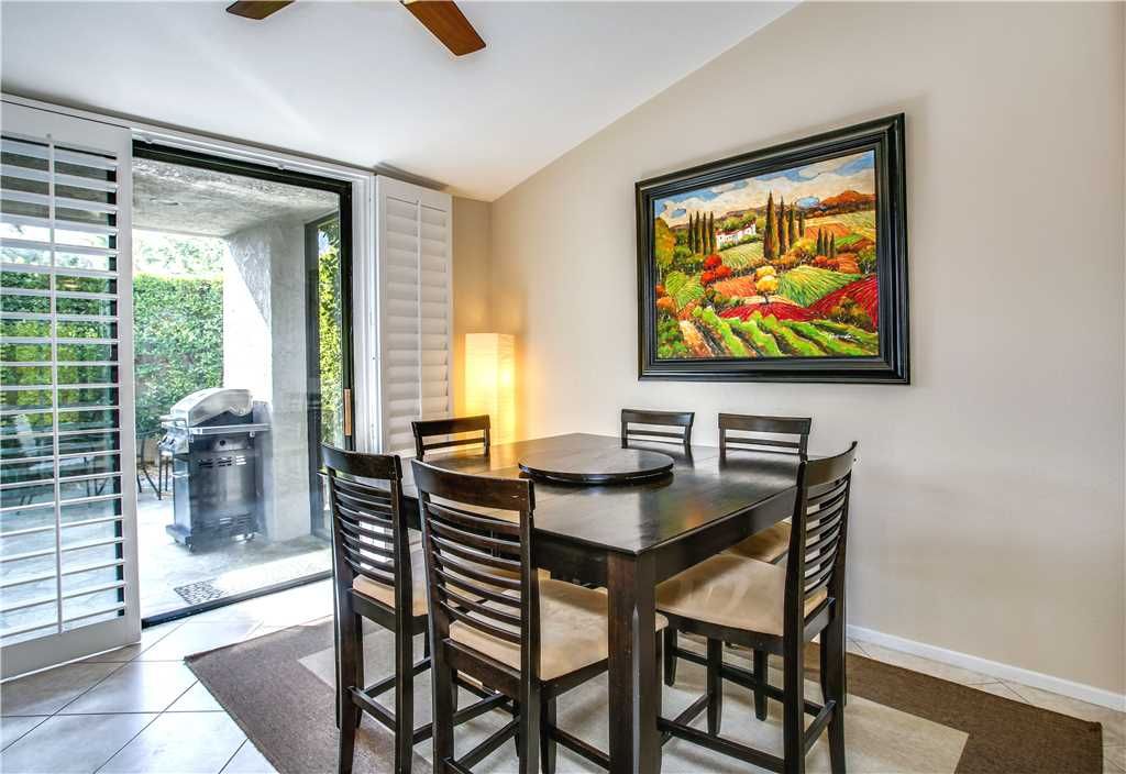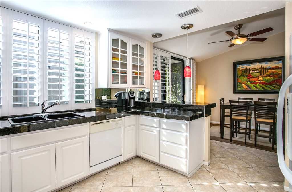 The main living area of this 2 bedroom vacation condo is open to the kitchen and dining room. The kitchen is fully equipped with a gas range, numerous small appliances, utensils, and service ware. You can enjoy meals inside with dining for 4, or dine alfresco on the outdoor patio with seating for 4.