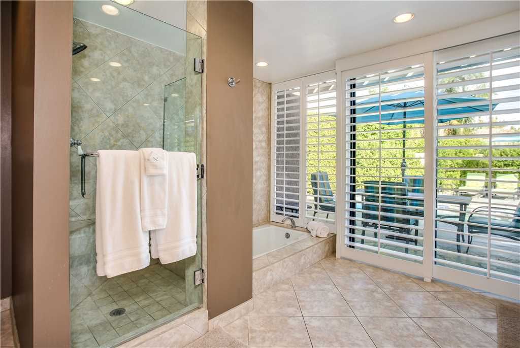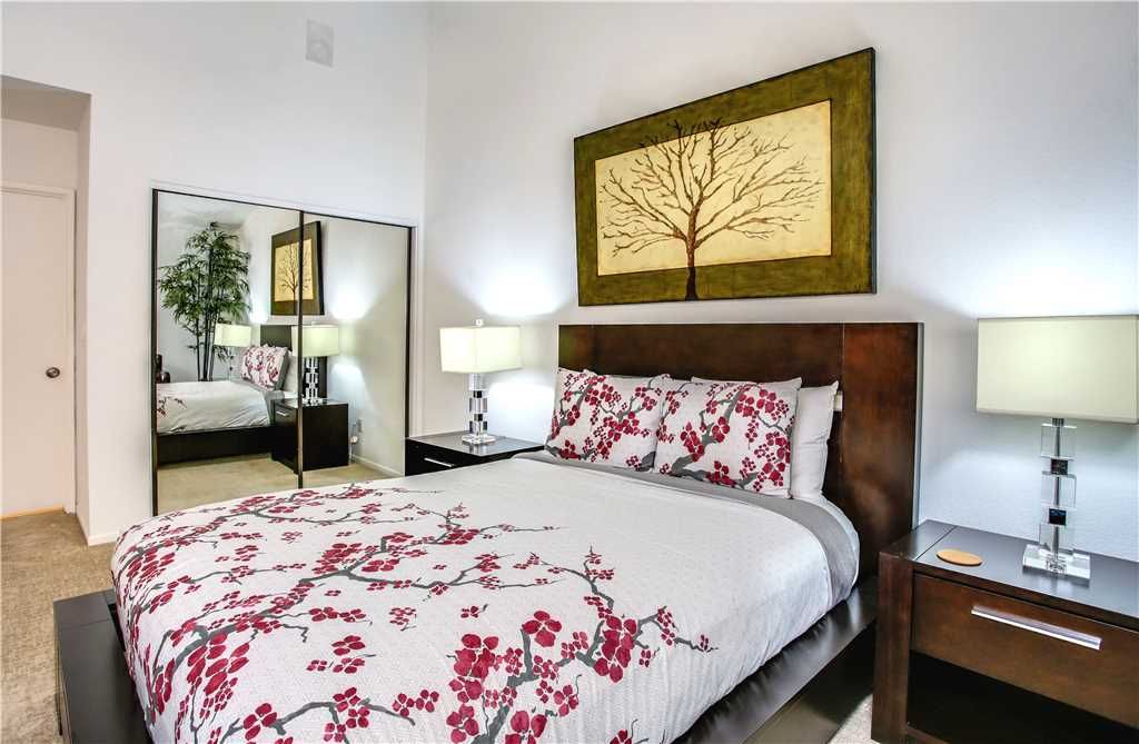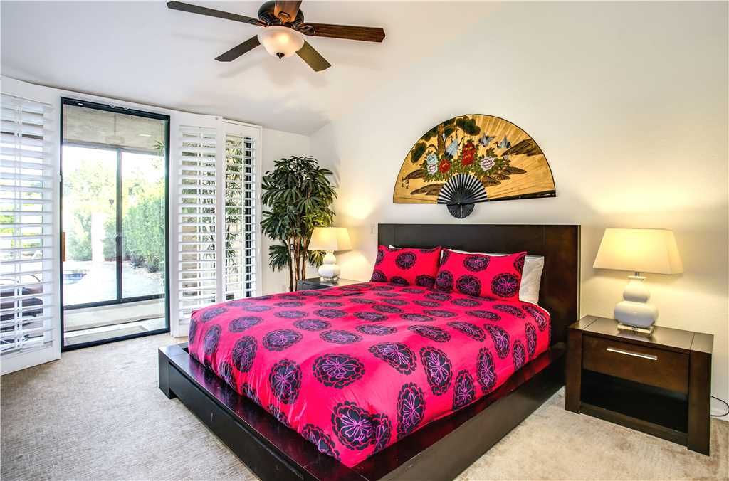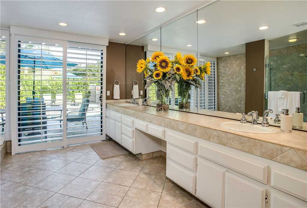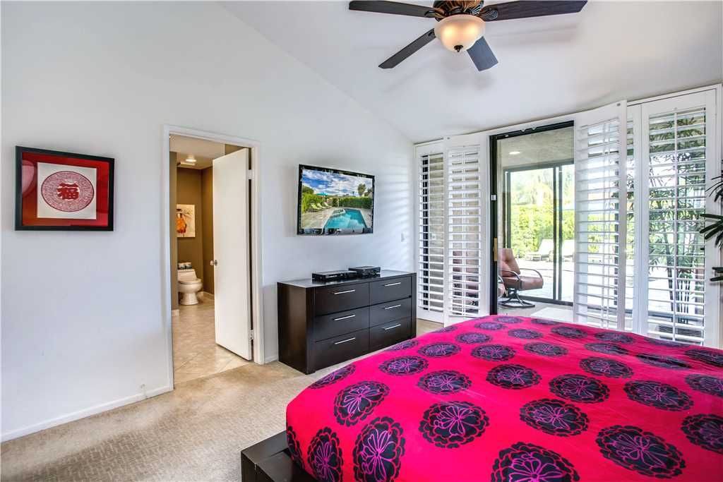 The bedrooms of this Palm Springs vacation condo are spacious, clean and comfortable. The master has a King sized bed, a huge en suite bath and direct access to the private backyard. The second bedroom features a queen bed, en suite bath that connects to the hall and has recently been updated with a glass enclosed walk-in shower.
