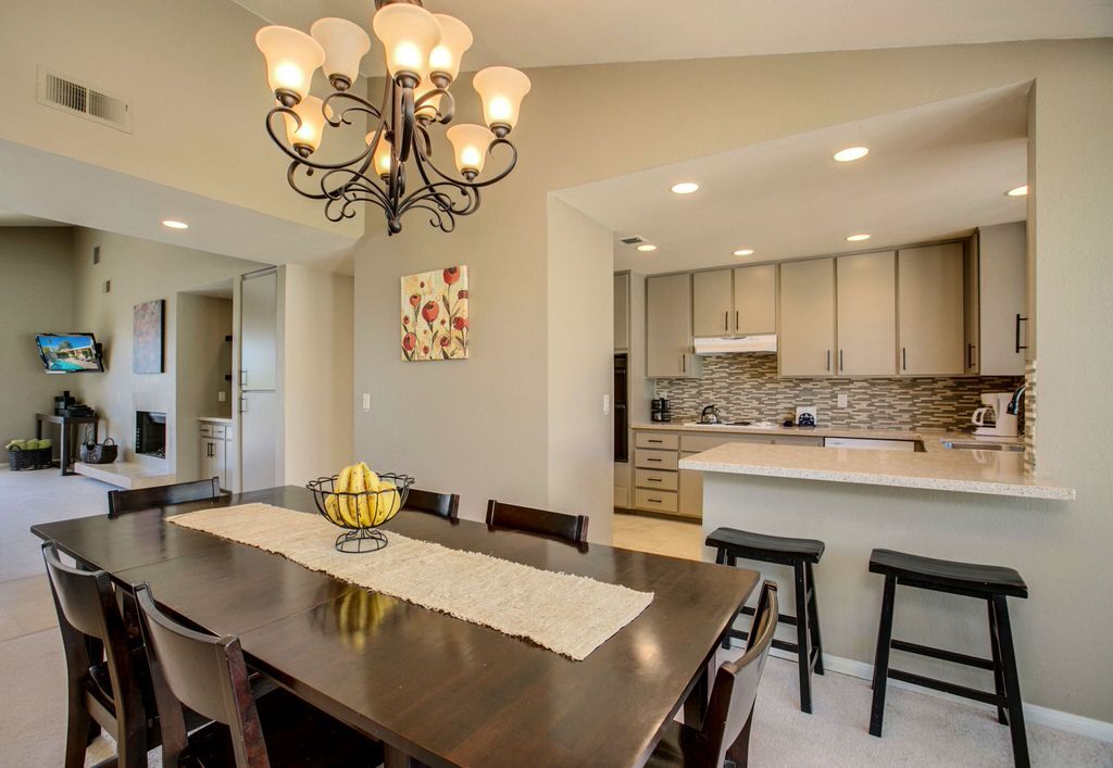 This Palm Springs vacation home is nicely appointed with modern furnishings and decor. The light neutral walls and high ceilings are accented with bright and colorful touches throughout.