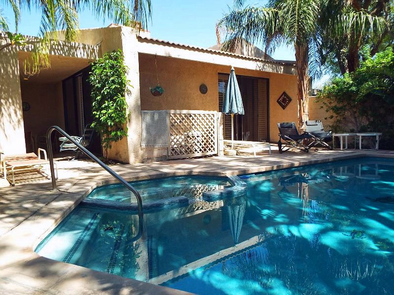 Beautiful 1850 square foot, upgraded Sundance Villa with private pool & spa. This single story villa has plenty of room to relax in. The yard is totally tropical and private. The pool, decking and walkways have been recently renovated. The living room is spacious and includes a sleeper sofa, 53" TV, VCR/DVD combo, fire place, lovely views of your own private pool and spa out the sliding glass doors. All beds are new.Property DescriptionApproximately 1850 sq ftLocated in Palm SpringsEnclosed AtriumWet Bar3 PatiosTwo Car Garage Private Pool and SpaOptional Pool/Spa Heating Available at Additional Cost October-MayTOT#4004City of Palm Springs ID: #724Room ConfigurationMaster: King Guest: Queen Bathroom ConfigurationMaster: Shower/Tub ComboGuest: ShowerAmenities
