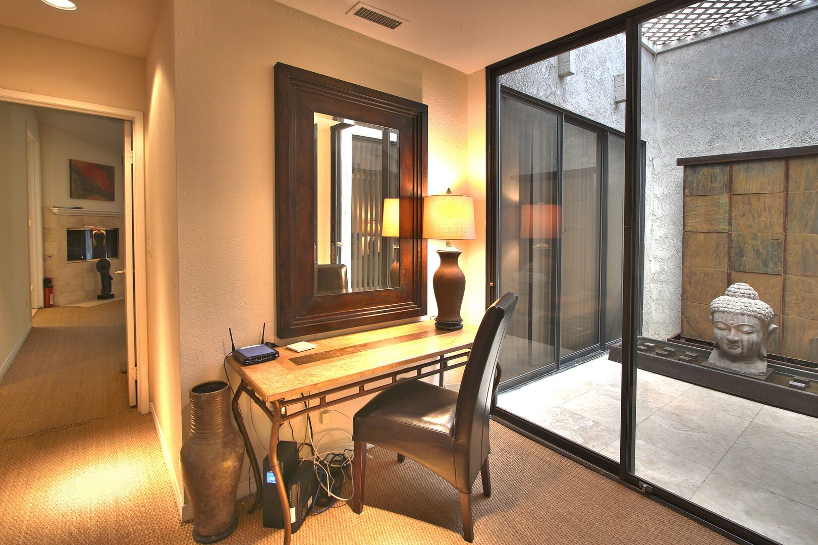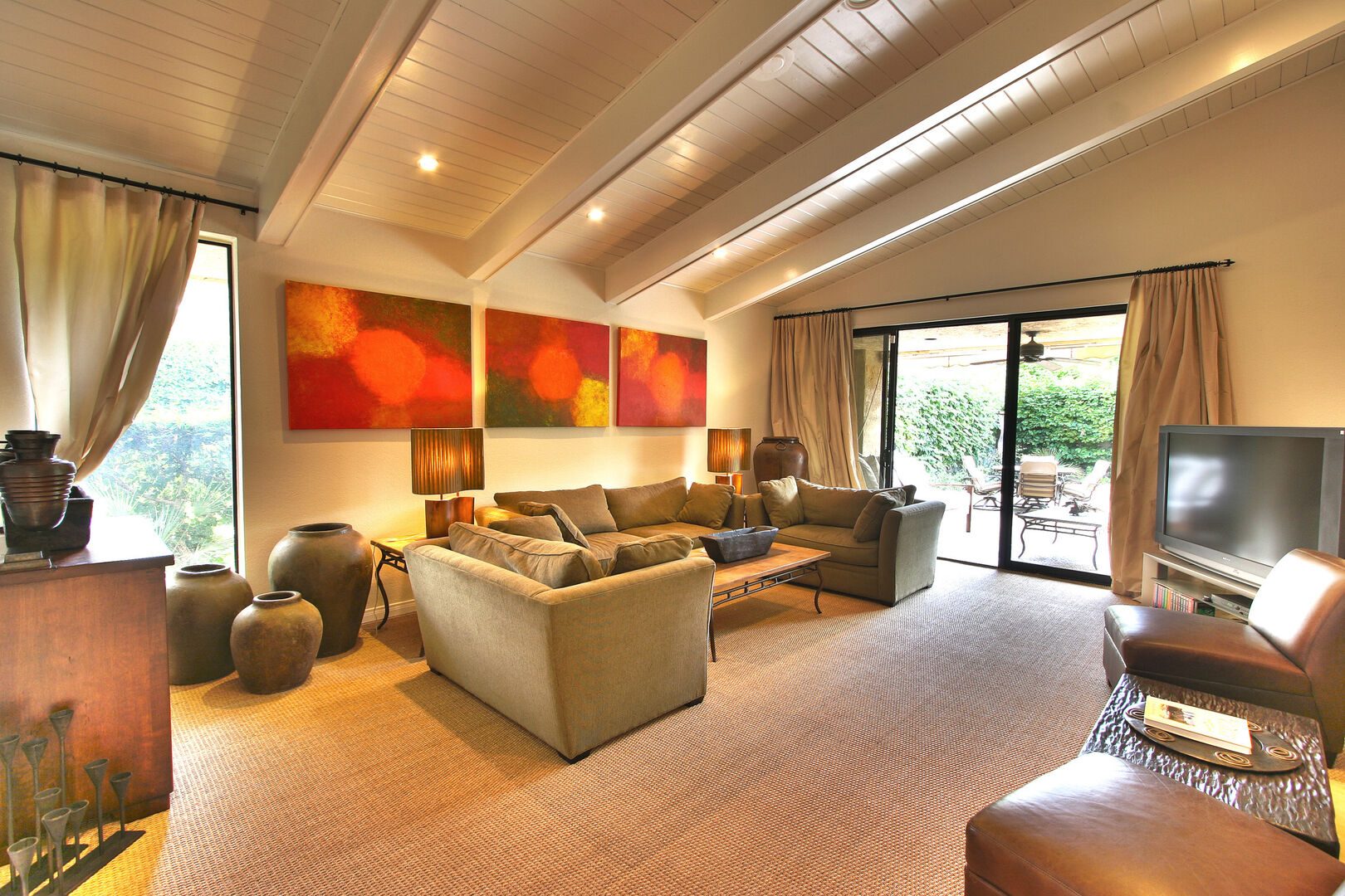 Welcome to your luxury desert home. This hideaway, or "La Dolce Villa" as it's affectionately named, is nestled behind the exceptionally private and exclusive walls of Palm Springs Sundance Resort Villas. A brilliant concept, the Sundance Palm Springs complex spans some 20 acres and lays out its 60 luxury villas in the pattern of a butterfly. Each unit has its own pool and spa separately walled for ultimate privacy, all just steps from the meandering paths of some 7 1/2 acres of rare greenbelt, loaded with grapefruit and lemon trees. This Palm Springs home offers all of the conveniences and manageability of a condo, yet all of the privacy and amenities of a much larger estate.One of the first things you will notice - upon entering the complex and this unit in particular - is the care with which the whole property was laid out - maximizing views and the use of common space. It has head on views of San Jacinto, breathtakingly visible throughout your home. Enjoy the view while taking advantage of any one of the 4 outside daybeds, where you`ll doze through some good books, prop yourself with countless pillows and contemplate how you can train those hummingbirds to turn the pages for you.The second most treasured feature of this property is its celebrity-coveted privacy. This privacy allows uninhibited access to the gorgeous salt water, brown pebble-tech pool. You cannot match the joy of a moonlit swim under the legendary desert sky or the peace and ultimate relaxation in the heat of the spa. It`s a beauty privacy as you`re cradled among gorgeous landscaping. In addition to the views and the privacy (which alone are priceless), your home comes with exceptional amenities to enhance your stay in this land the Indians called "The Palm of God."Warm earthy, unpretentious tones in honeys, sages, mochas and chocolates seduce you into that Palm Springs tranquil state of mind - whether you cook in your well equipped kitchen, linger in the leather armchairs around the rustic dining table, nap on a down-filled sofa in front of the living room fireplace, curl up with a good book on a bed loaded with the ultimate in comfortable linens and bedding, watch the game on your 60-inch LCD rear projection television or lounge on your personal daybed outside ( there`s one for each of you!)You can access the internet at the highest possible speeds via our cable connection or catch up with your friends around the US or even Canada via our unlimited long distance plan. You can soak in a travertine tub or pull the Savoy and sit on a marbled bench in your very own steam shower. You can float the day away in the sparkling pool and lose yourself in countless stars, as you soak in the hot spa. Anyway you decide to enjoy your Palm Springs vacation home, it`s hard to imagine anyone not regretting (at least a little bit) the flight or drive back to reality. Life is in the moment, and your moment awaits you at "La Dolce Villa."Property DescriptionApproximately 2000 sq ftLocated in Palm SpringsPrivate Pool and SpaOptional Pool/Spa Heating Available at Additional Cost October-MayPropane BBQNot suitable for children under 12Small Dogs OK3 night MinimumTOT #4004The City of Palm Springs ID: #726Bed Configuration Master: California KingGuest: QueenBathroom ConfigurationMaster: En Suite Sunken Tub, Steam ShowerGuest: Shower/Tub ComboAmenities