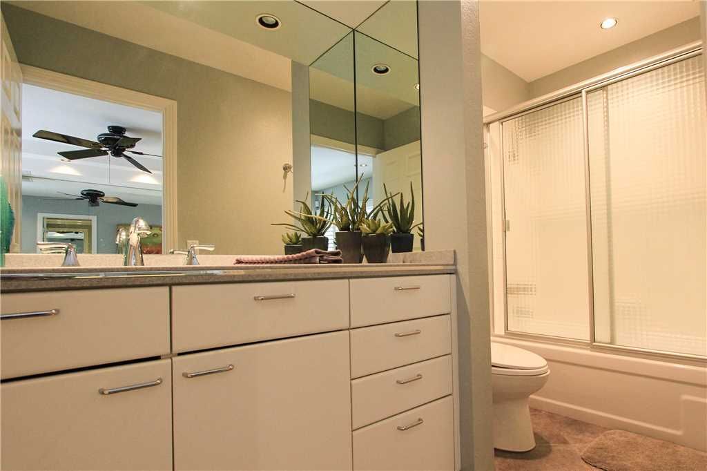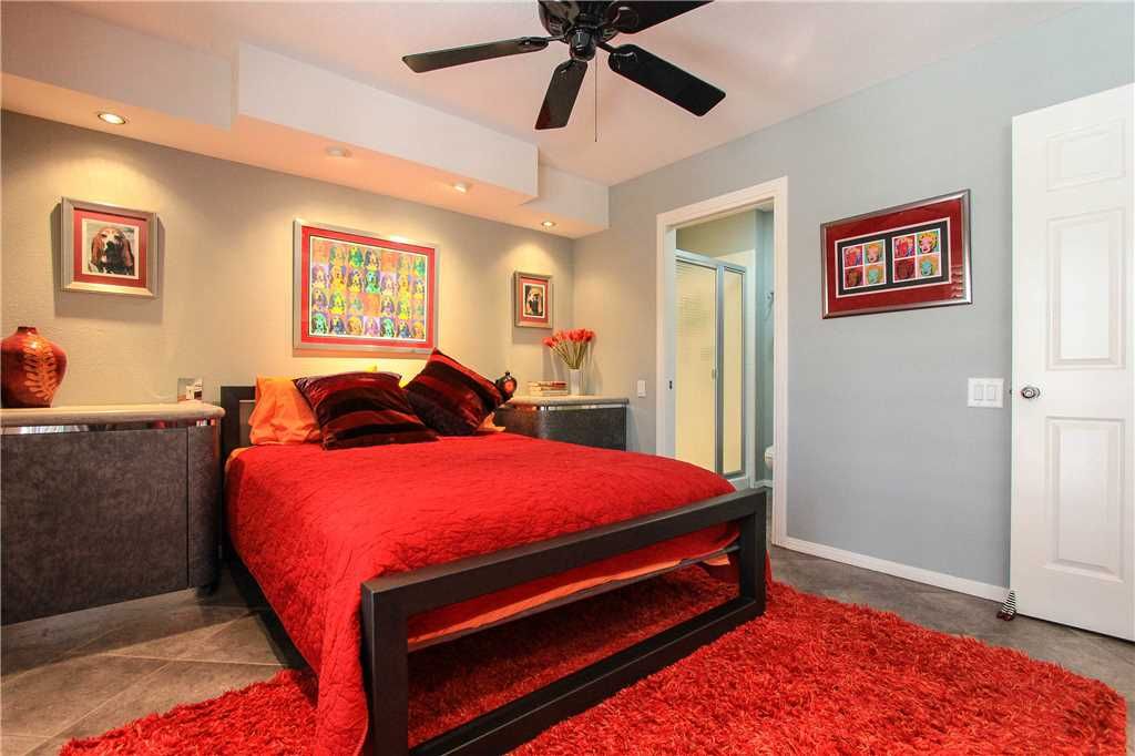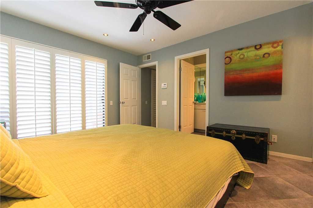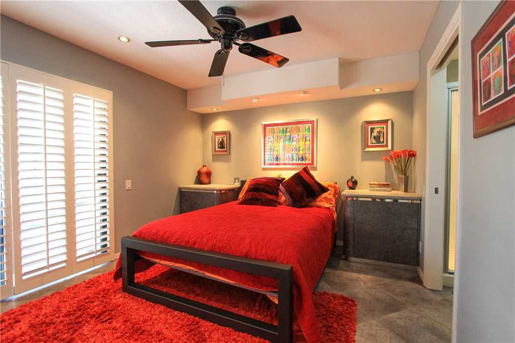 The first bedroom suite is comfortable and well appointed with a queen size bed. This bedroom features an en-suite bath with walk in shower and also has hallway access. Also from this bedroom enjoy your own access to the front courtyard. The Master Suite features a king size bed, en-suite bath with shower and tub and access to the back patio area.