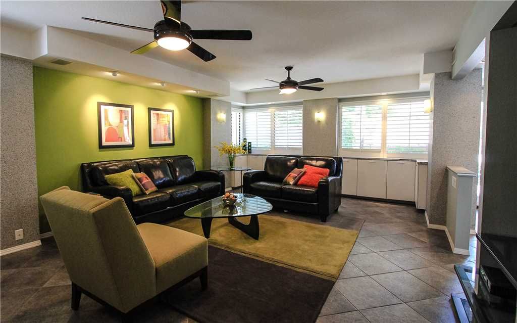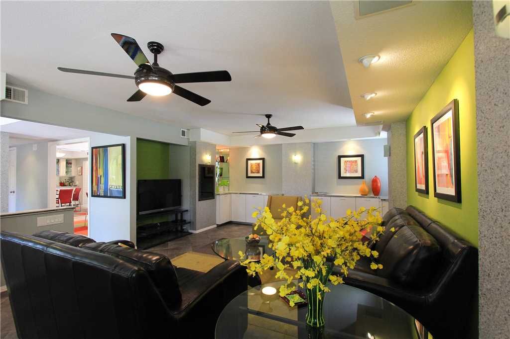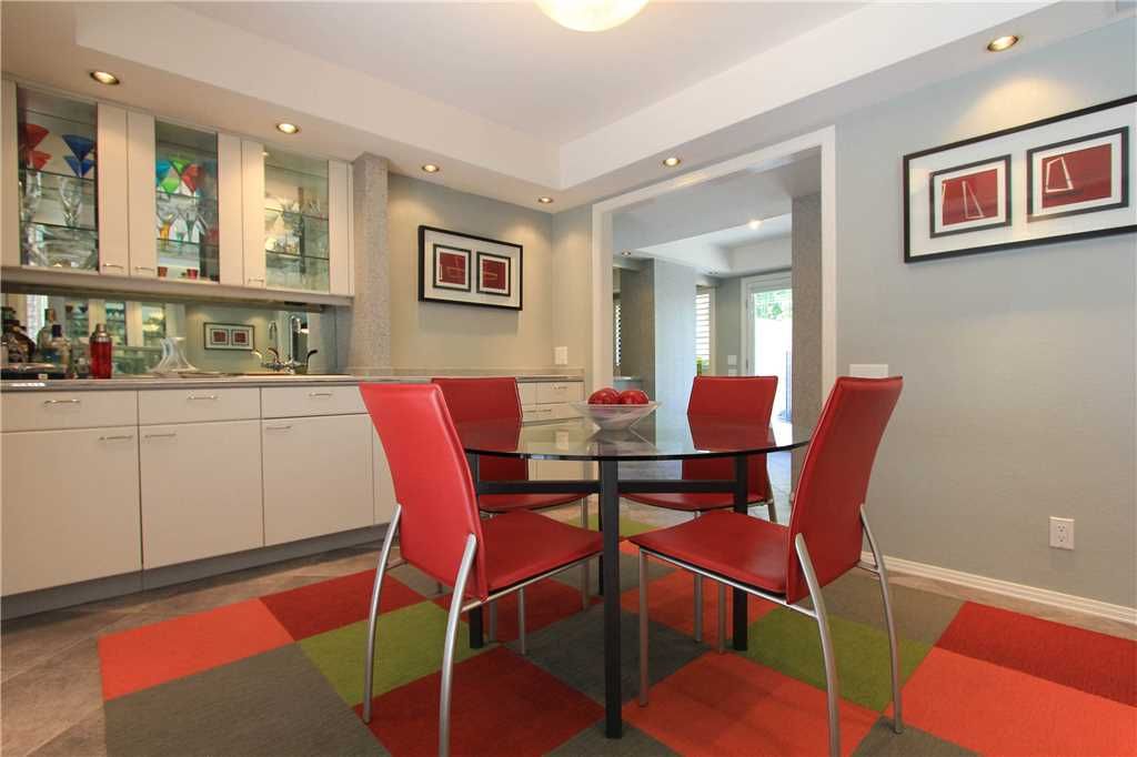 The beautiful living area, features color and tasteful modern decor, perfect for entertaining or relaxing. In the separate dining room area, enjoy dinner with family and friends or cocktails at the wet bar. The bright inviting kitchen is well equipped with everything you need to cook at home.