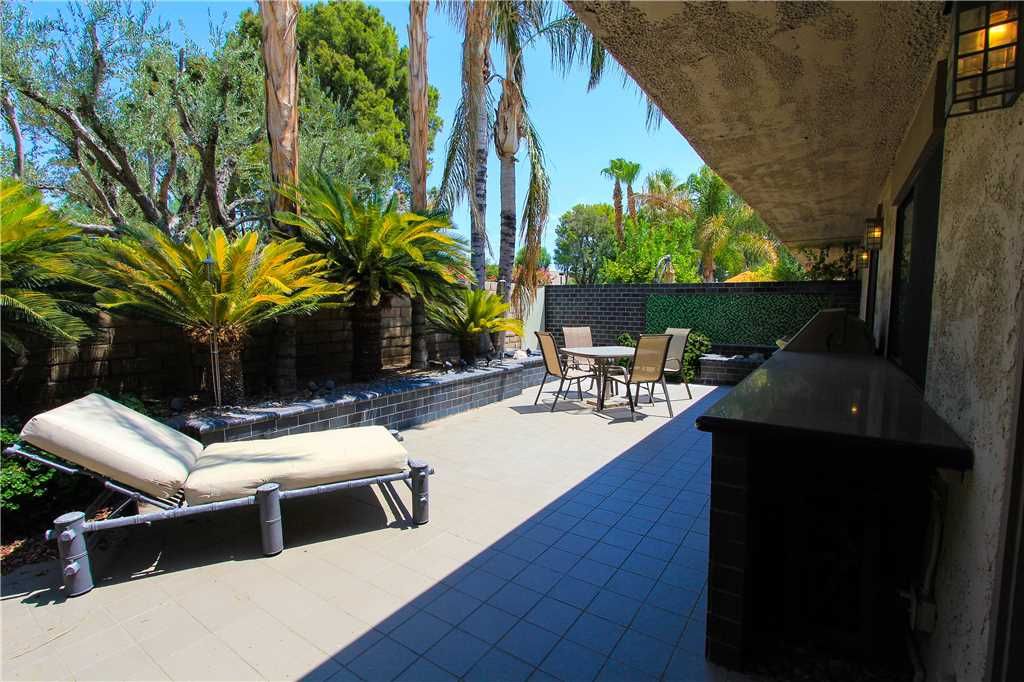 Step out front to the large courtyard. This fabulous area includes a built-in BBQ with cabinets topped with granite counters, pass through window to the kitchen and a planter area with a beautiful water feature.