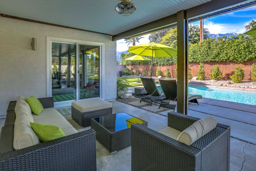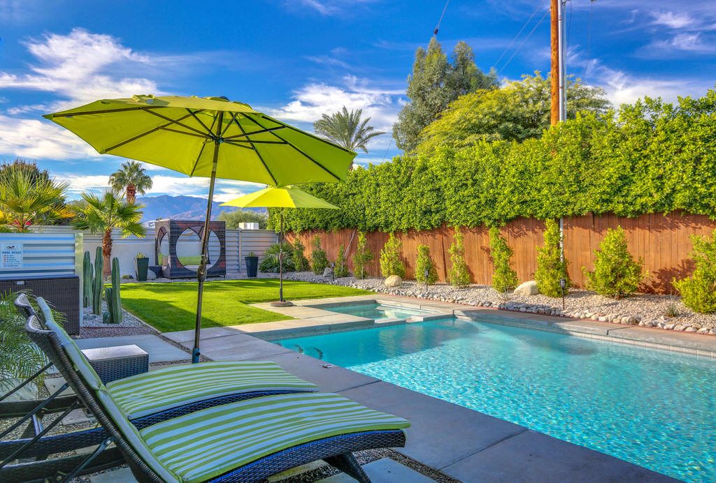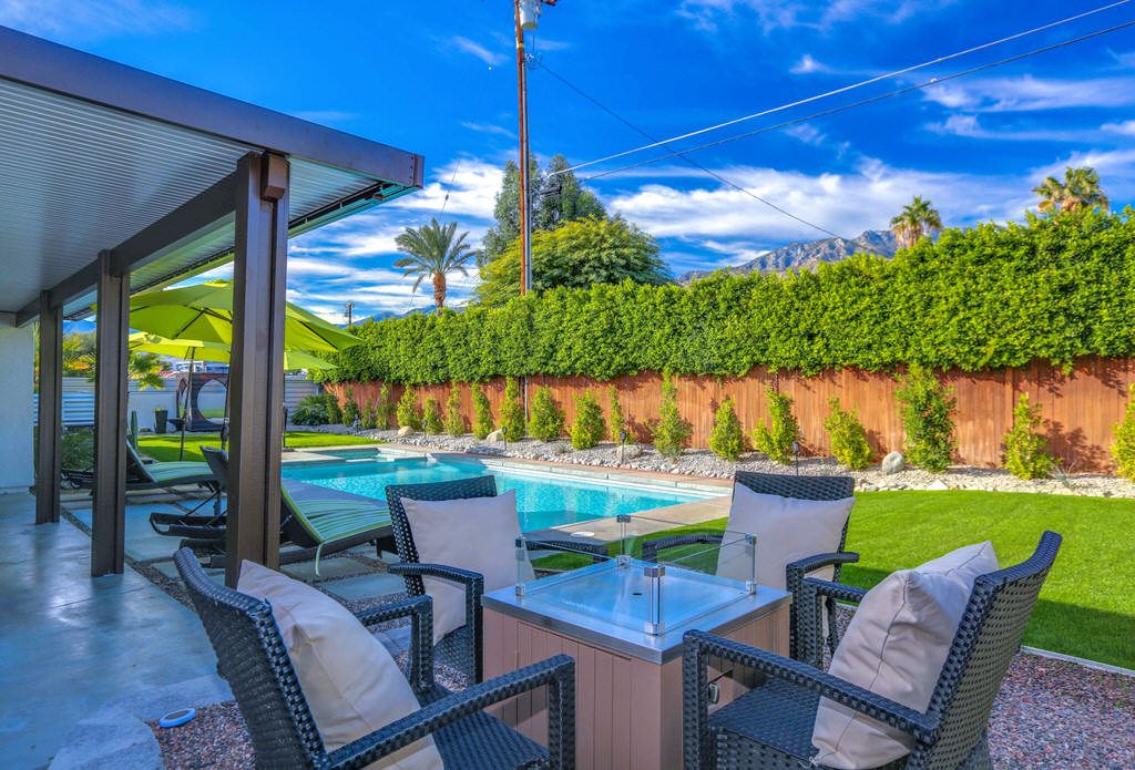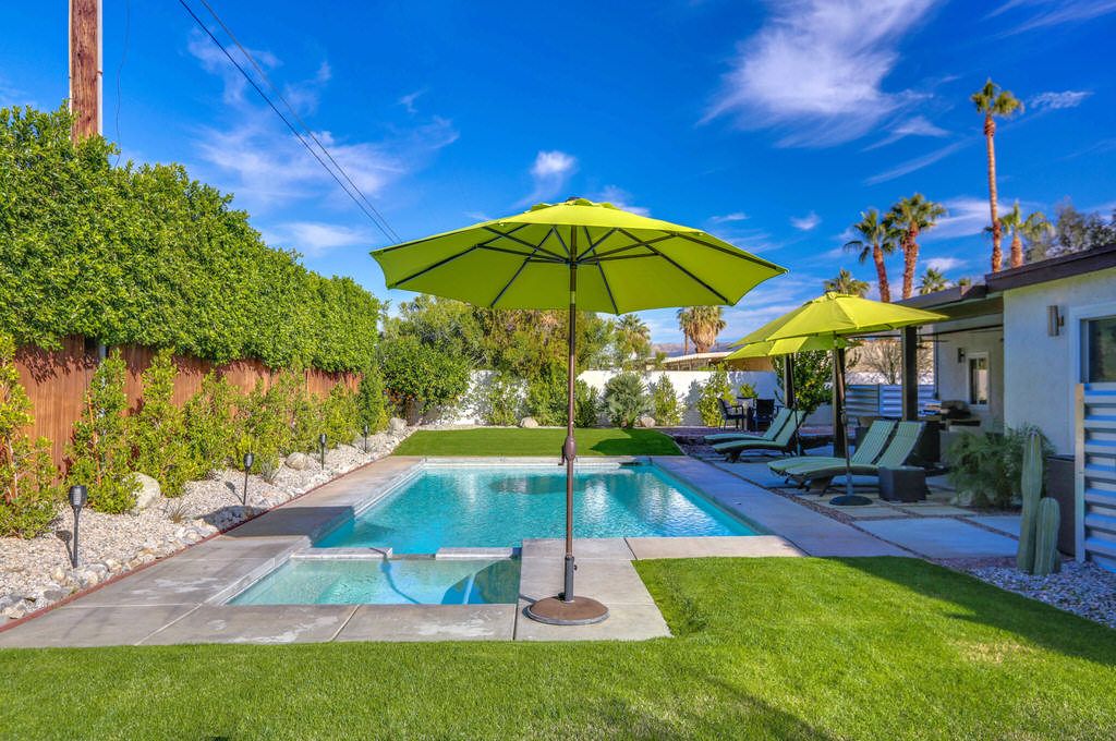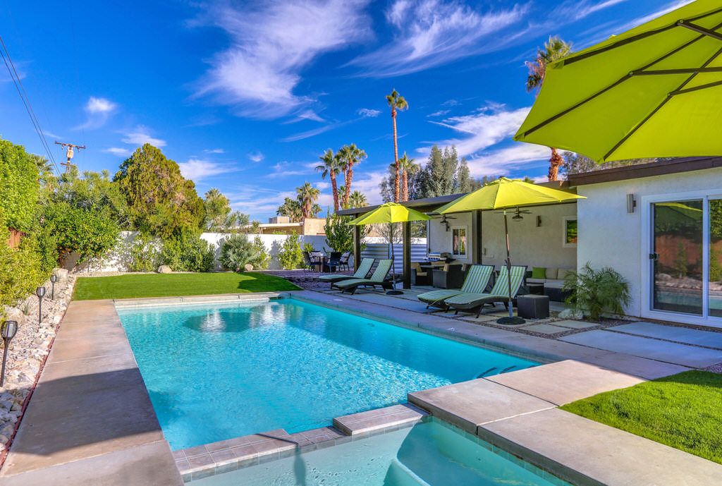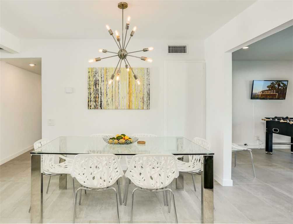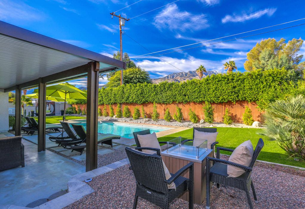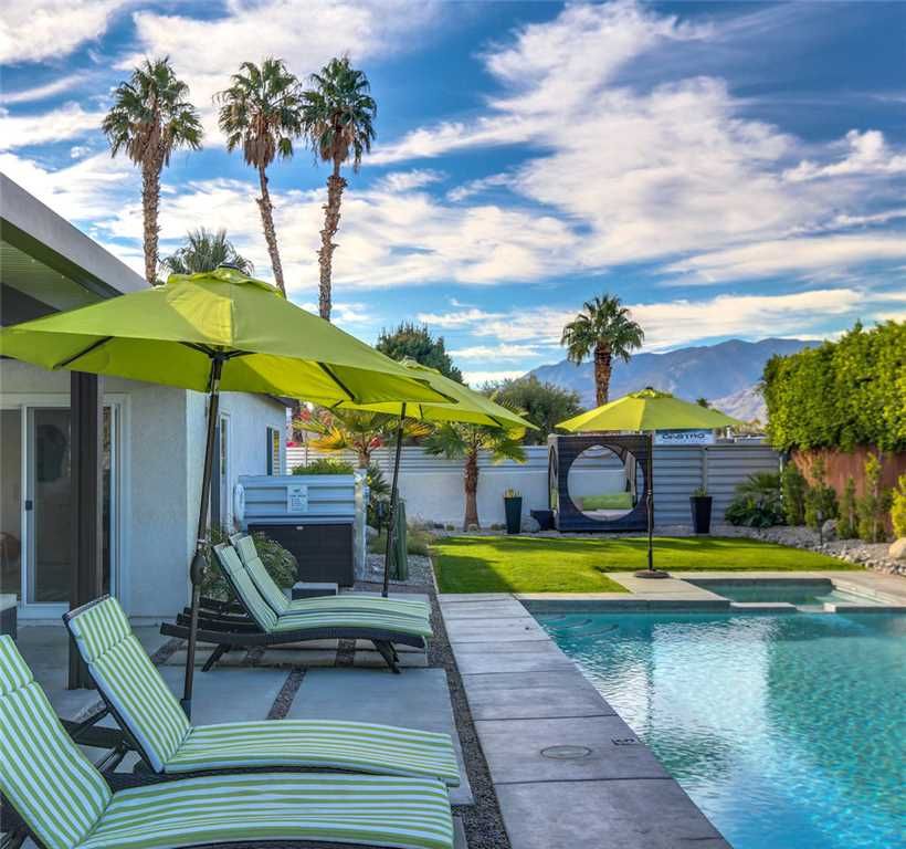 Welcome to this spectacular modern and completely upgraded Palm Springs Vacation Home This vacation home is situated on a large corner lot with gorgeous mountain views. This stunning property features a new designer remake along with exceptional taste in modern design. Large tile flooring flows throughout this home connecting the open layout concept which make this home a perfect for those who want to experience a true Palm Springs vacation.