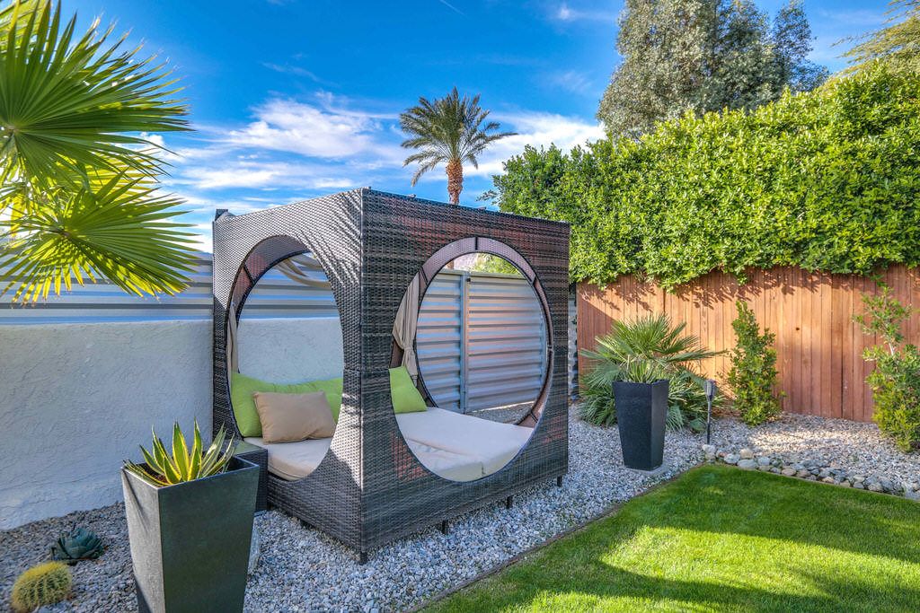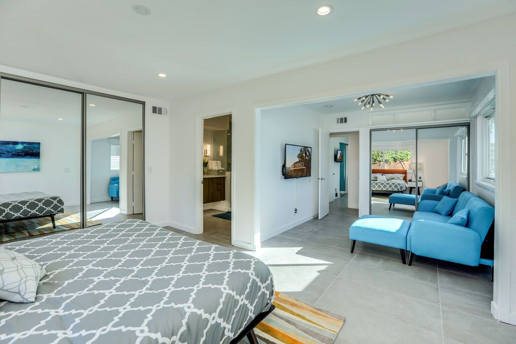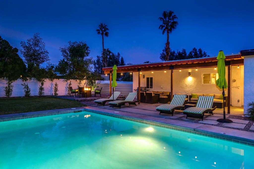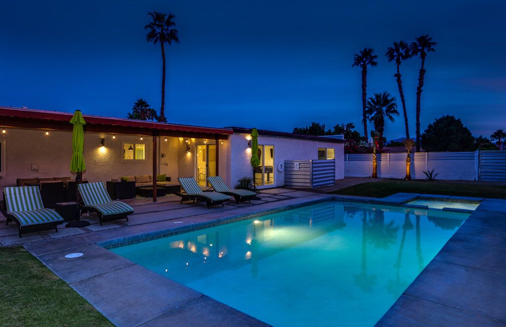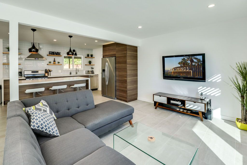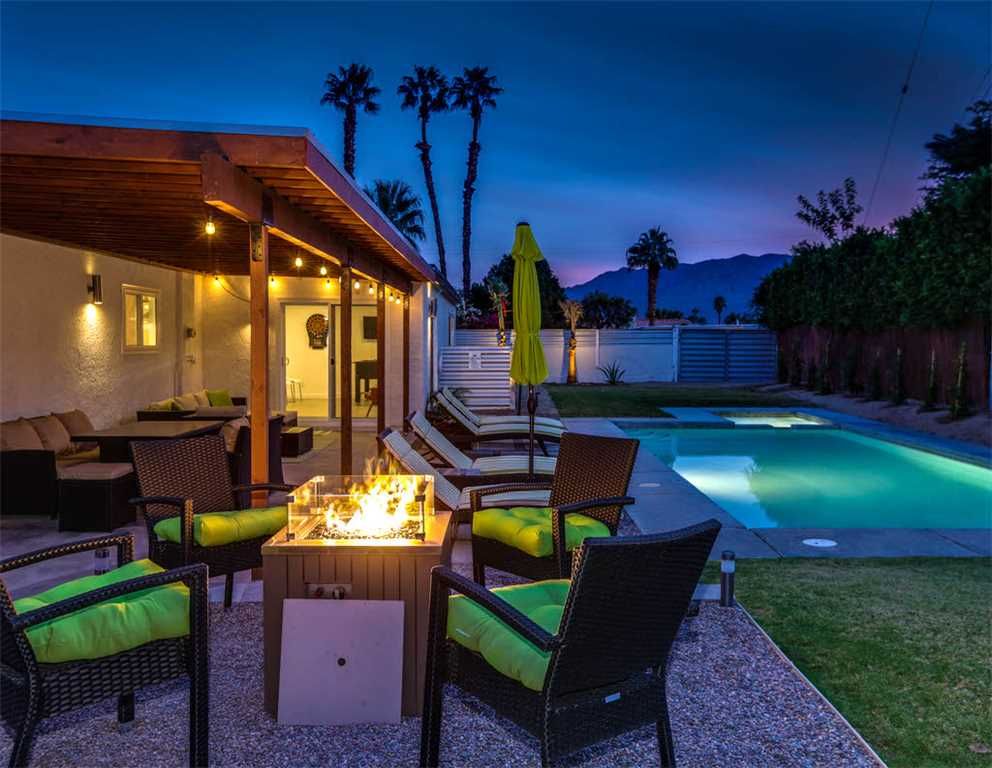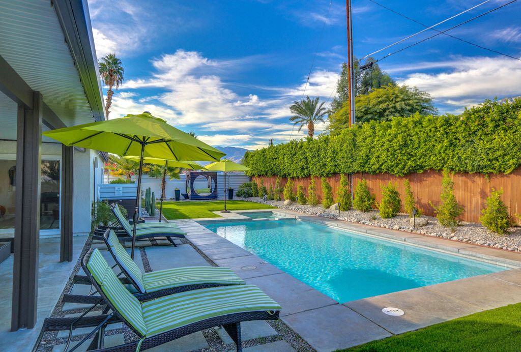 Welcome to this spectacular modern and completely upgraded Palm Springs Vacation Home This vacation home is situated on a large corner lot with gorgeous mountain views. This stunning property features a new designer remake along with exceptional taste in modern design. Large tile flooring flows throughout this home connecting the open layout concept which make this home a perfect for those who want to experience a true Palm Springs vacation.