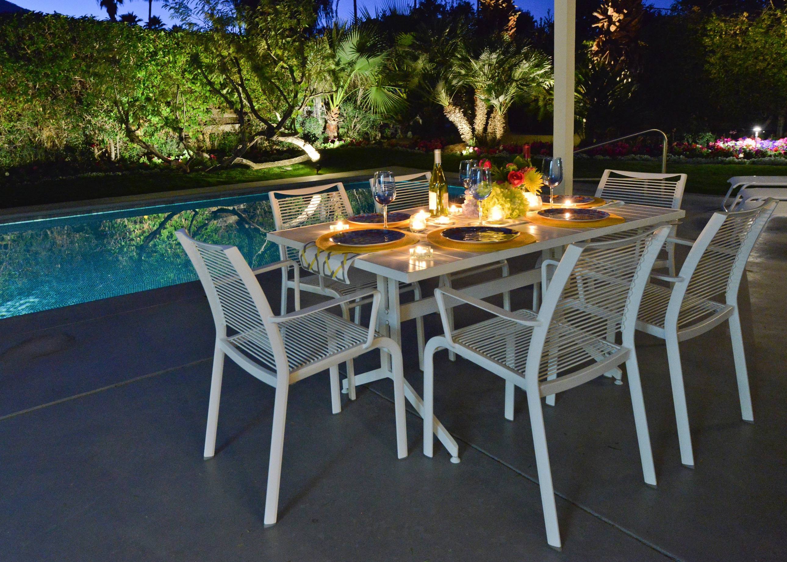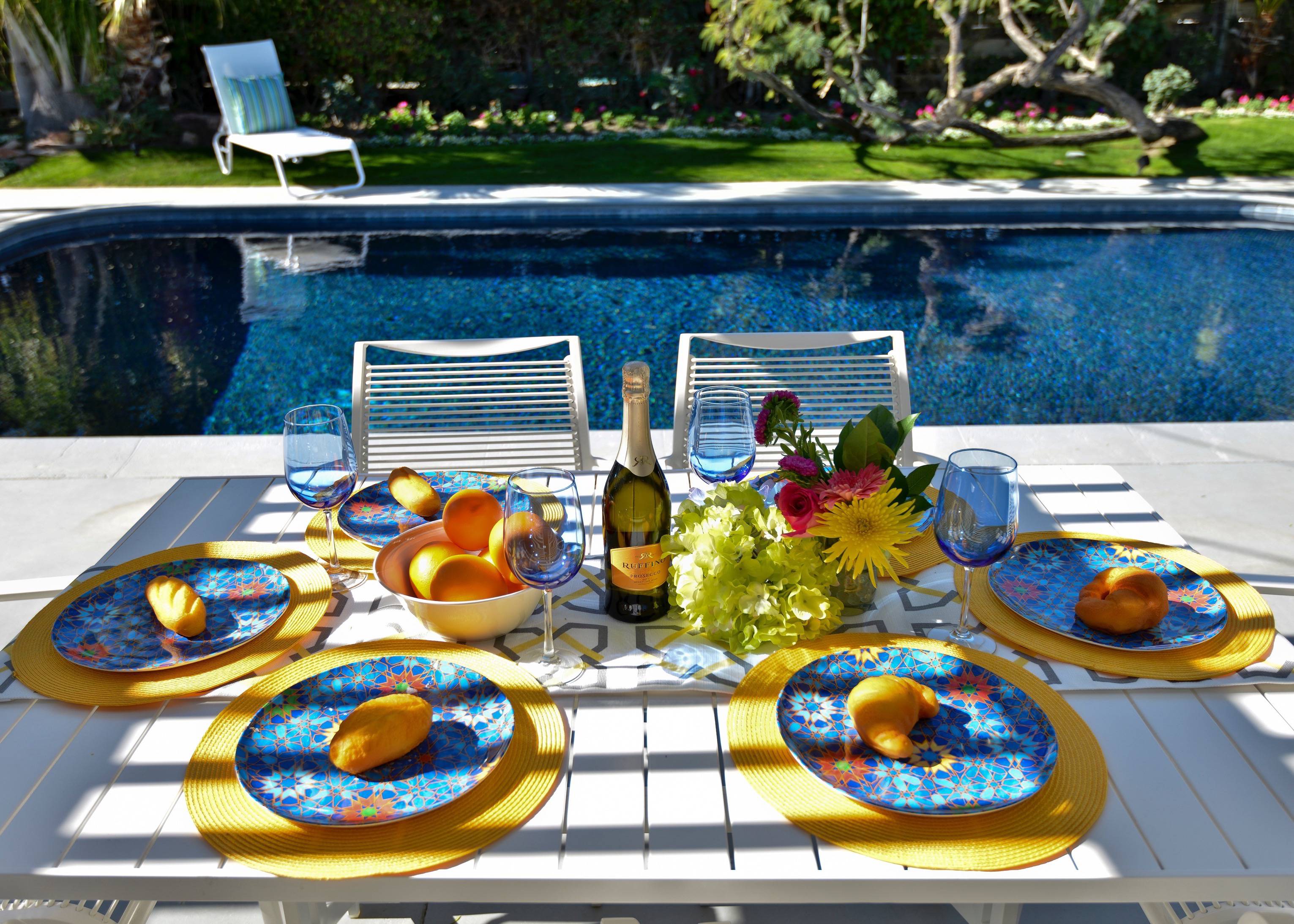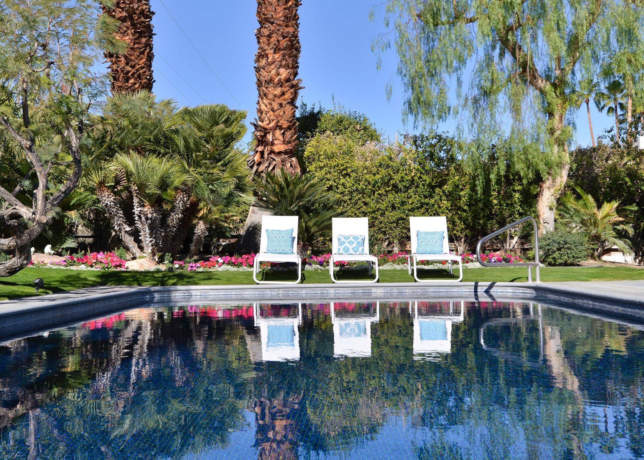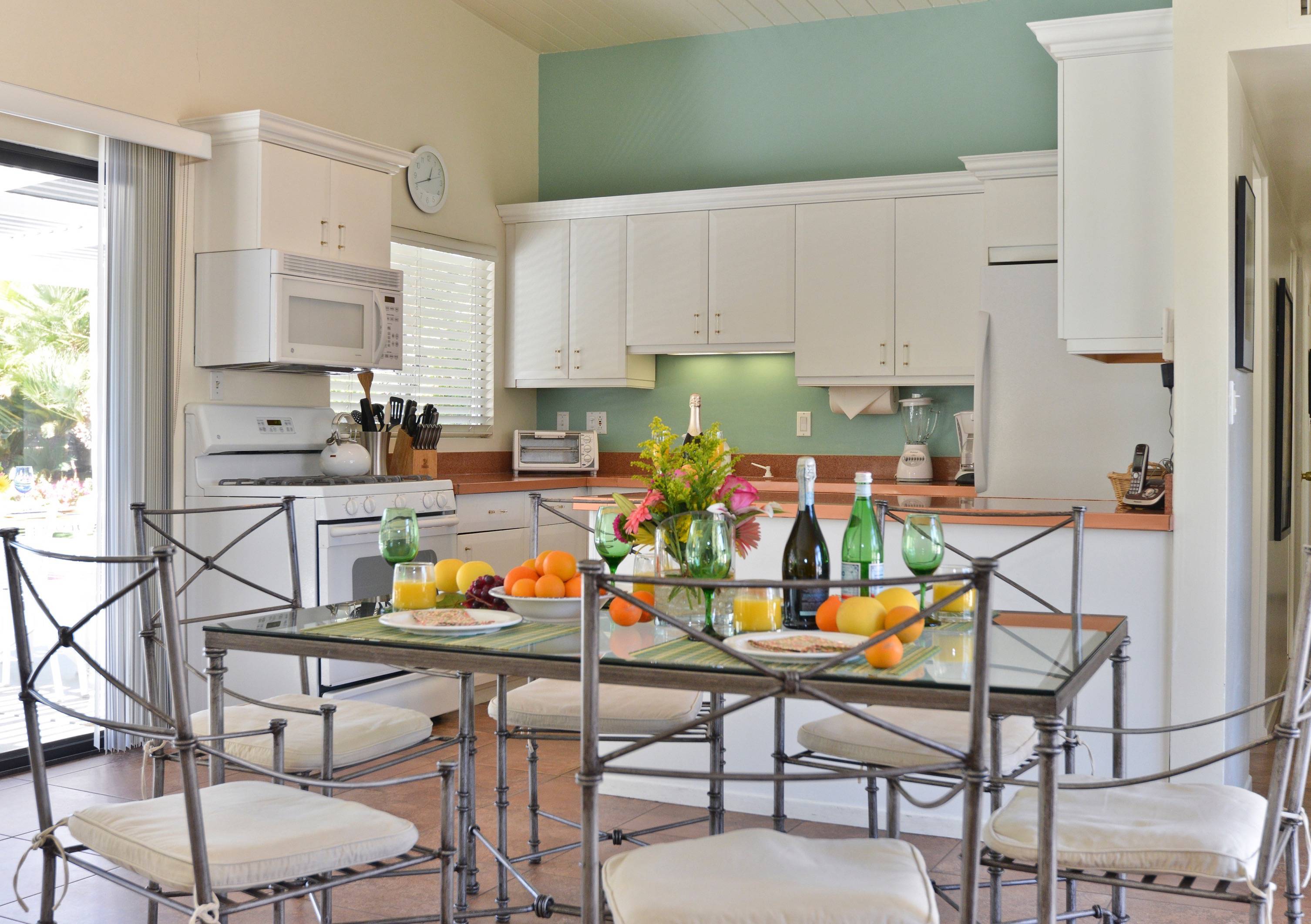 Alexander in the Sun has everything you need for a complete Palm Springs vacation. Whether you dive into the private pool or relax in the private spa, the house will be your perfect retreat and it's only 1.8 miles from the heart of Downtown! P.S. City ID #433 Primary renter must be at least 25 years of age Located on a quiet residential street in Sunrise Park, this mid-century pool home has been beautifully remodeled. New kitchen! New baths! Open floor plan! The large paradise pool yard is enclosed by mature plantings to create the perfect, very private, vacation escape. Heated saltwater pool with sapphire-blue mosaic tile, in-ground spa, fire pit, citrus trees, gas barbecue, covered outdoor dining. The living areas are all open to each other, providing enough space for your entire group to gather, relax and enjoy. But there are also some quiet, tucked away areas that are perfect for curling up with a good book or spending some time alone. During the recent remodel, the homeowners respected the 1958 pedigree of this architecturally significant Alexander home, while modernizing it for today. You’ll find vaulted ceilings, walls of glass, quartz counter tops and beautiful porcelain tile floors. The living room features a gas fireplace, plenty of comfortable seating for your entire group, a 50-inch plasma flat-screen TV, a DVD-Blu Ray player and premium satellite service with HBO and Showtime. The interior dining area is perfect for six guests and the kitchen has been fully stocked for individual or team meal prep. In true Palm Springs style, the entire back of the house features walls of glass, blurring the lines between indoor and outdoor living - and revealing the sunny pool and patio area. SLEEPING QUARTERS The bedrooms of this wonderful vacation home are flexible to accommodate your group’s needs. The master bedroom offers a king-sized bed, an ensuite bath, a flat screen TV and direct pool access. The two guest rooms share a bath and each has a king bed that can be converted to twin beds upon request - making this vacation home a great option for singles, a few couples, families, golf outings, multi-generational groups, and extended weekends for old friends. LOCATION This property is centrally located in the quiet residential Sunrise Park neighborhood just minutes from the Uptown Design District, Downtown, and the South Palm Springs Business District. Restaurants, night spots, burger joints, sandwich shops, and grocery stores are just a short drive away. Ruth Hardy Park, The Palm Springs Dog Park, two multiplex movie theaters, the casino, and the convention center are all close by. The vibe of this home is very California… very Palm Springs. The owners have created a comfortable, relaxing getaway space that honors the mid-century pedigree of the home but meets the needs of how we live today. Guests often comment that this home is warm, inviting, well laid out and very comfortable. Suitable for extended long weekends, weekly stays, month-long visits and as a seasonal rental. Advanced bookings strongly advised. Optional concierge services including daily maid service, poolside massage, pre-arrival grocery stocking, and private chef can be arranged with three-week prior notice. Certain dog breeds under 65 lbs are allowed at this home, the dog fee is $195 (2 dogs maximum).Amenities