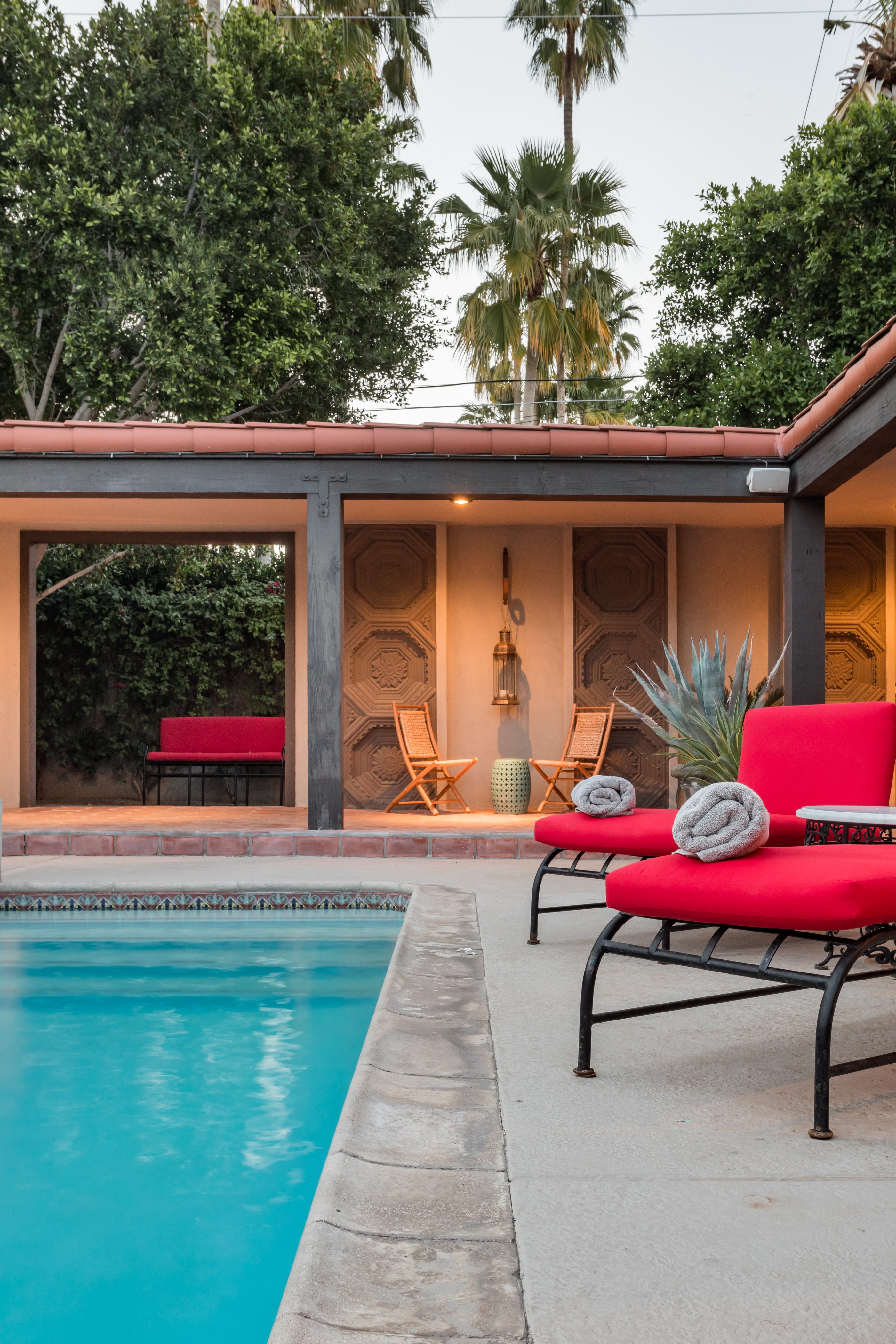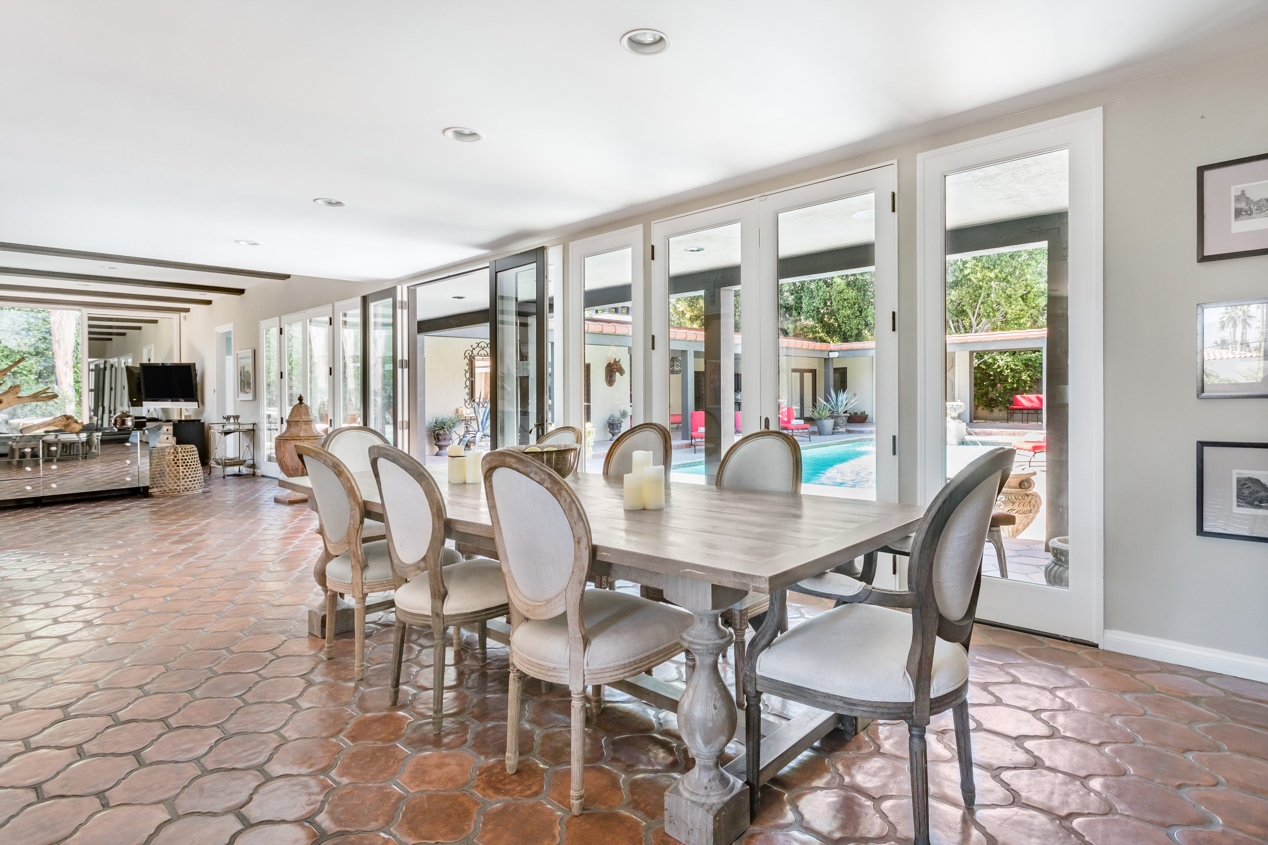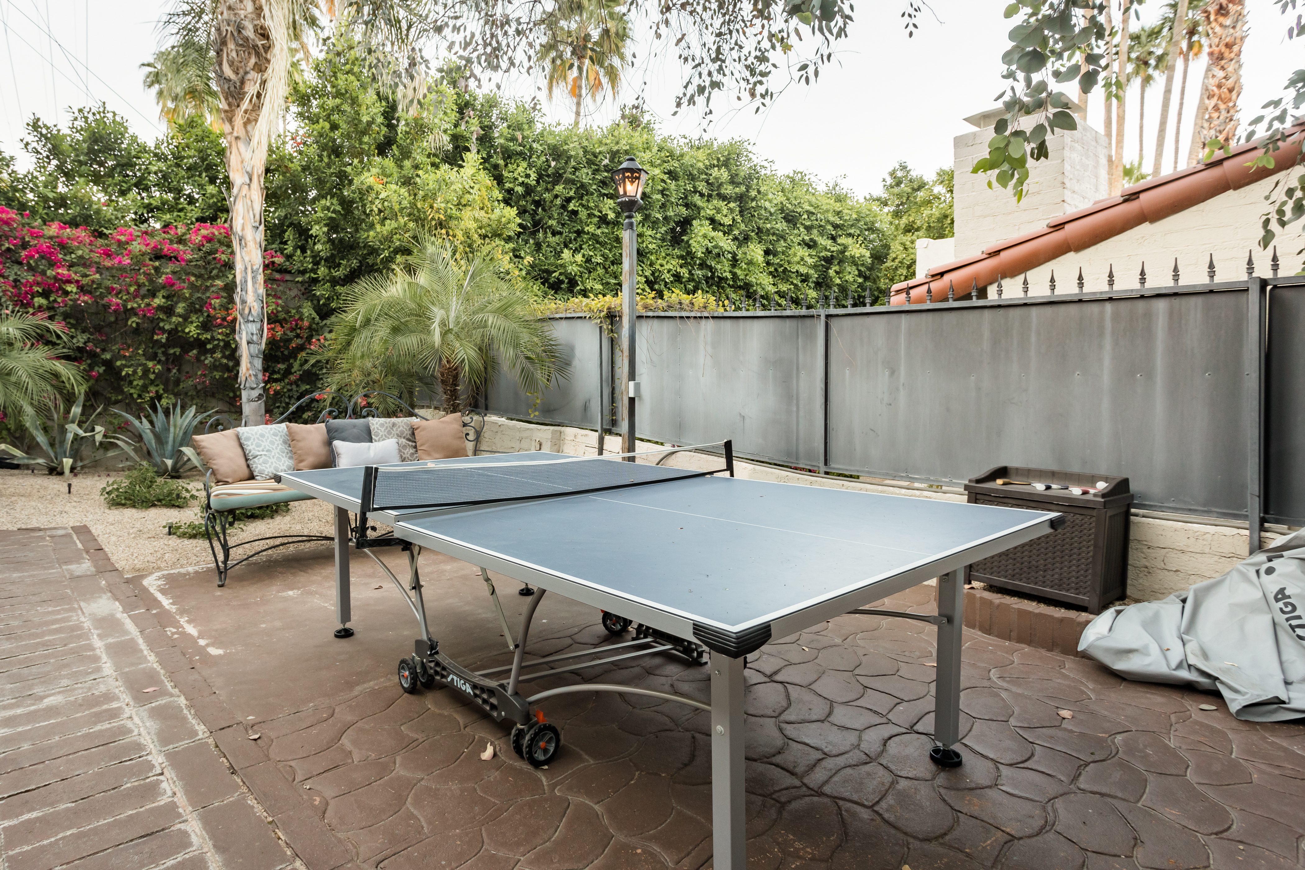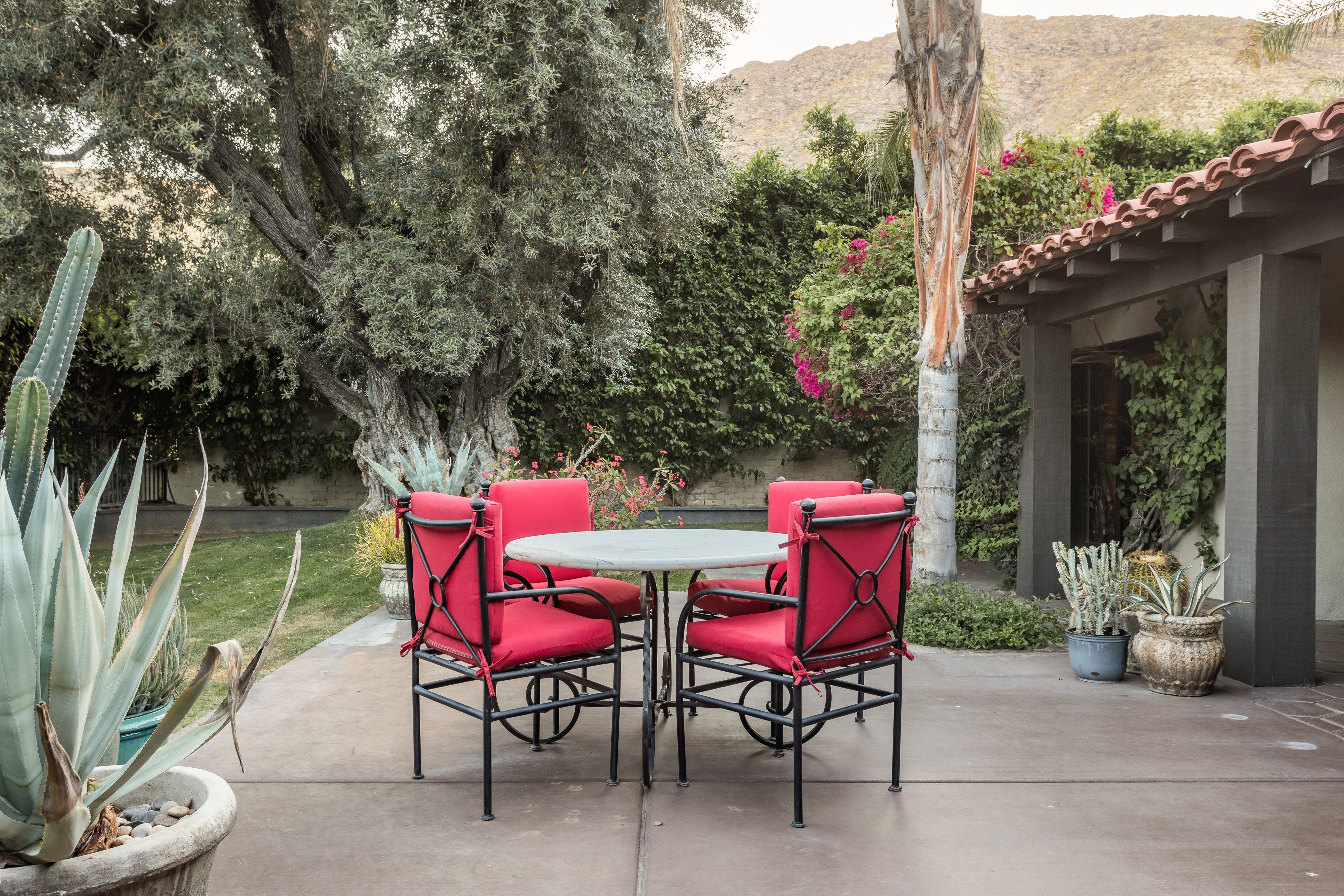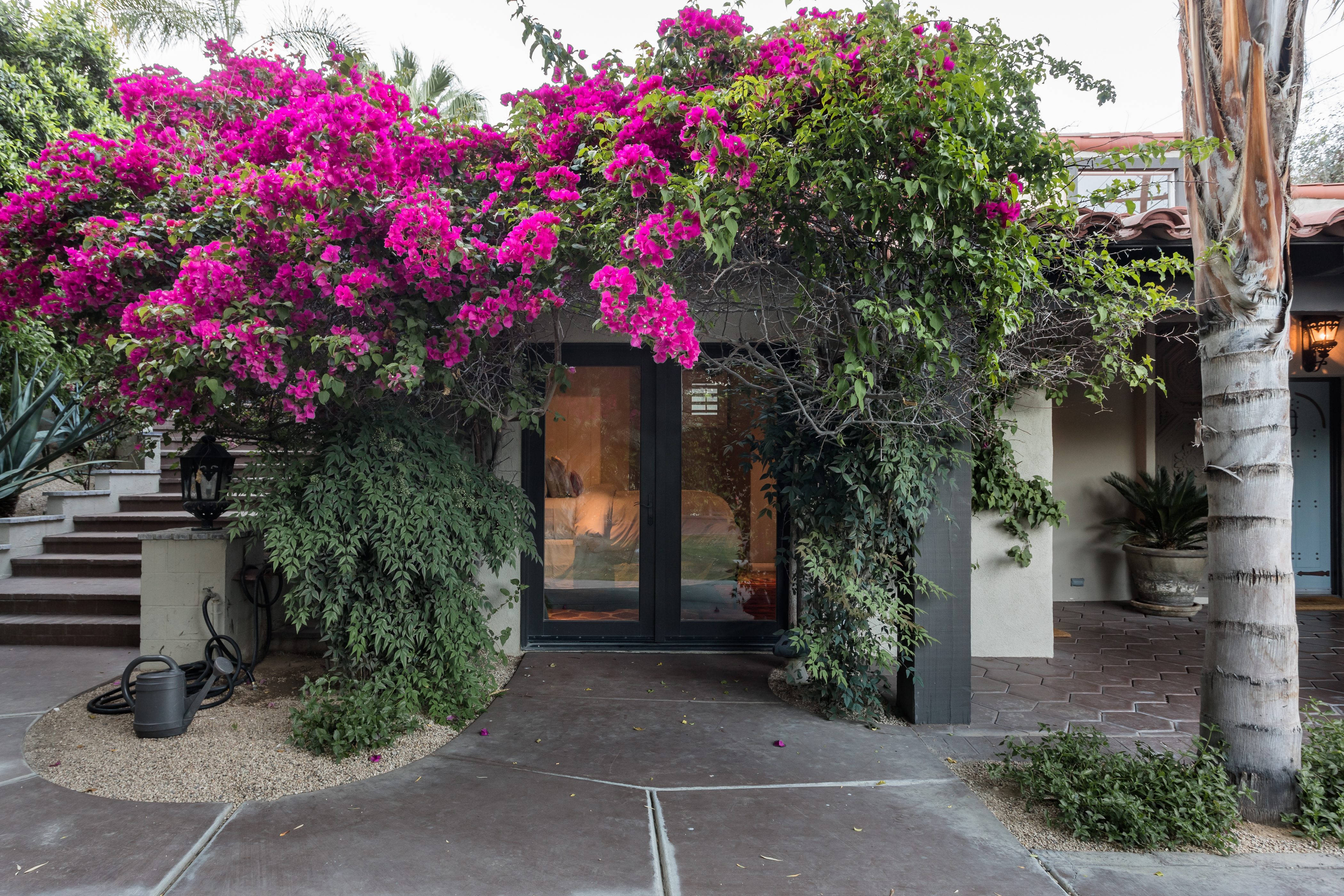 P.S. City ID #1256 **Primary Renter must be at Least 25 Years of Age** Updated luxury meets old-fashioned glamour, with a tropical outdoor oasis in the middle of the desert. This home has it all! A U-shaped courtyard with pool and spa and a private outdoor lounge complete with fireplace. Outdoor kitchen, alfresco dining, ping pong and a grand outdoor shower. Impeccable interior features floor-to-ceiling windows, large gathering spaces with top-of-the-line furnishings, large gourmet kitchen and hotel-quality bedrooms. Perfect for a large group, 4 queen beds + bunk room, all w/pool access. P.S. City ID #1256 **Primary Renter must be at Least 25 Years of Age** Glamorous Palm Springs Villa with strong ties to Old Hollywood. Very private walled and gated estate in the The Mesa. 4 Deluxe sleeping quarters + bunk room. Center courtyard pool area. Spa. Outdoor shower. Ping Pong. Walk to Palm Canyon Drive. Outdoor fireplace. Beds: Q, Q, Q, Q, Bunk = F, T This home in the Old Mesa neighborhood was owned by film star Joseph Cotton, and has hosted countless Hollywood luminaries. Follow in their footsteps in walking past stars' homes to Palm Canyon Drive to discover a wealth of boutiques and restaurants. Certain dog breeds under 65 lbs are allowed at this home, the dog fee is $195 (2 dogs maximum).Amenities