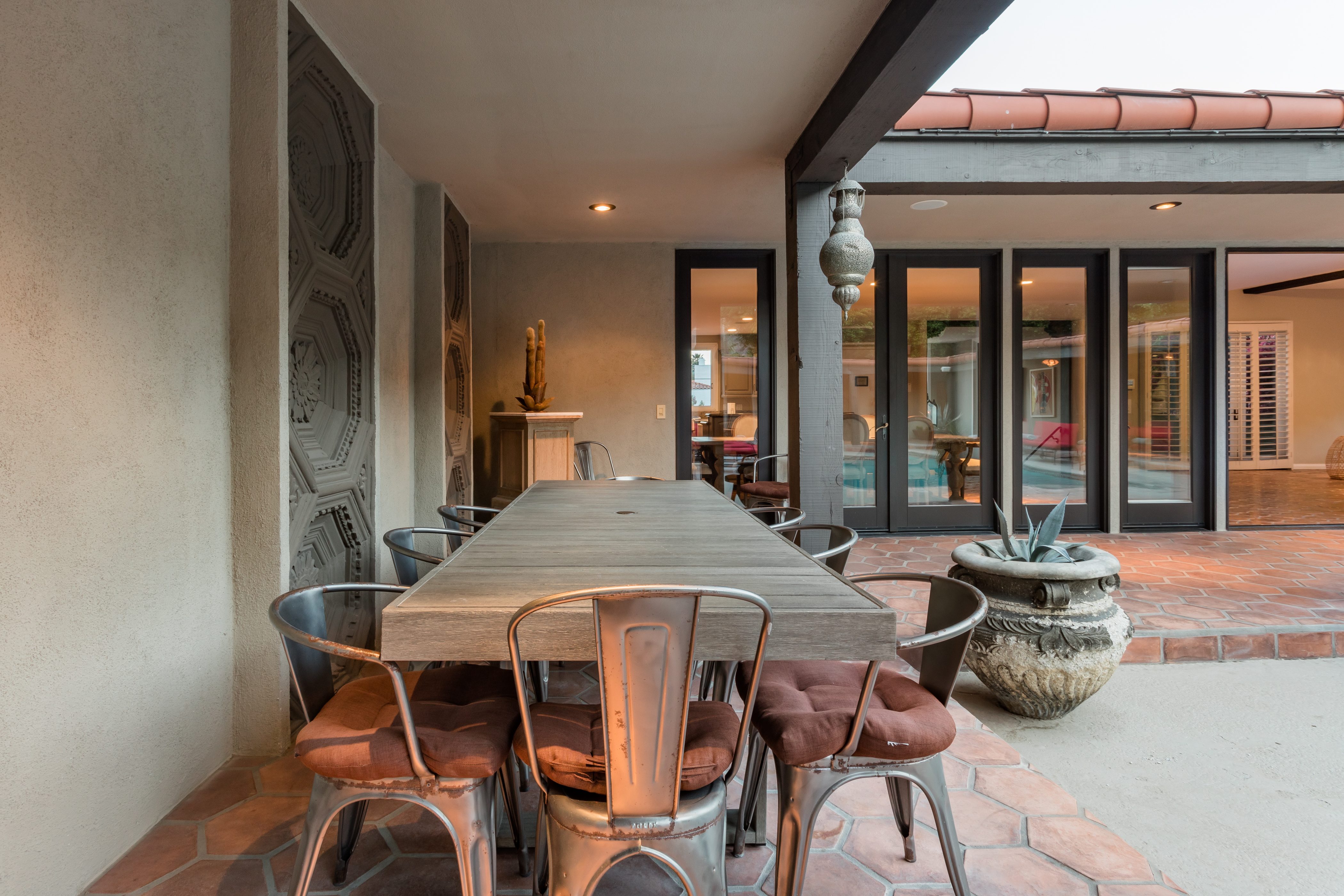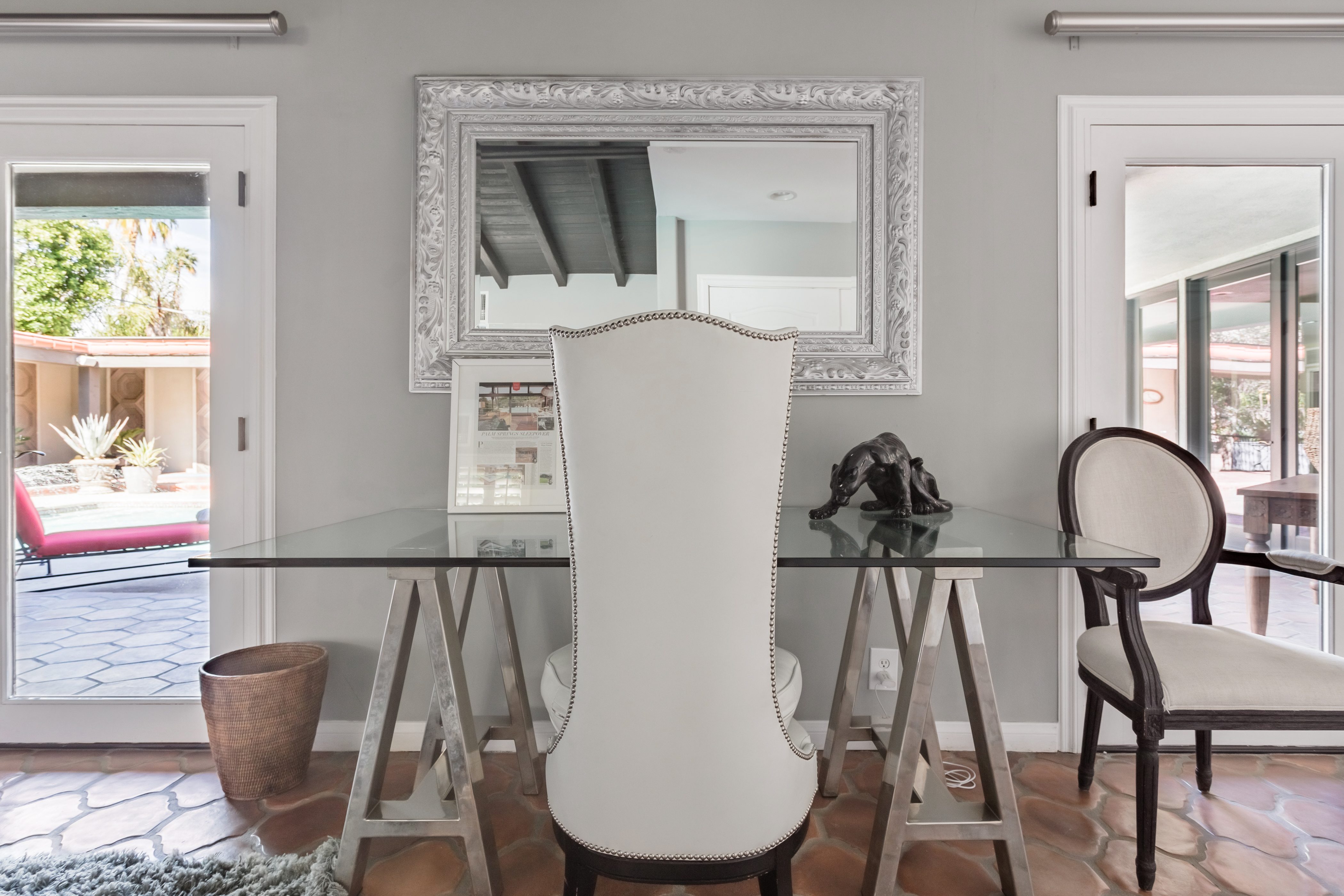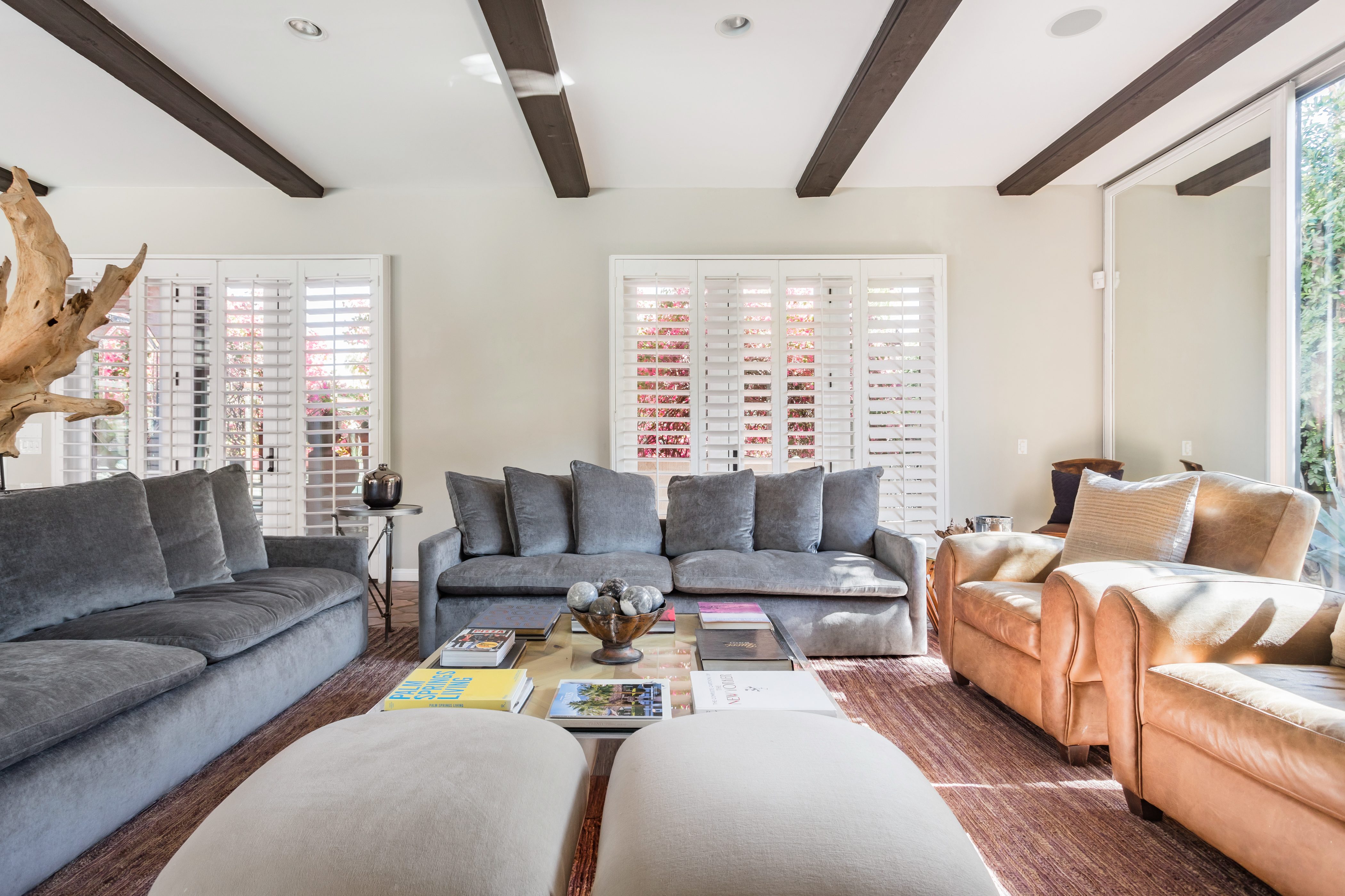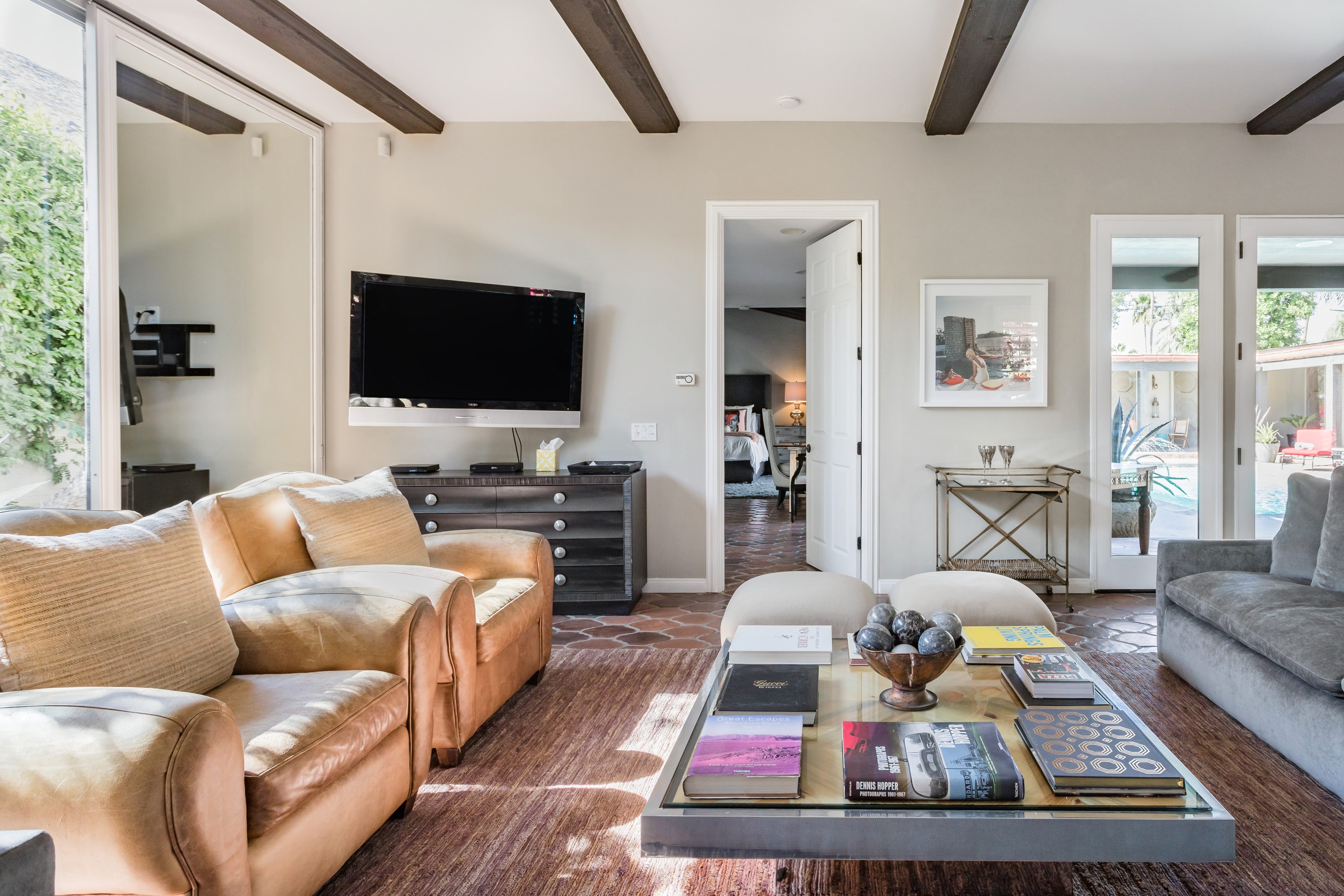 P.S. City ID #1256 **Primary Renter must be at Least 25 Years of Age** Updated luxury meets old-fashioned glamour, with a tropical outdoor oasis in the middle of the desert. This home has it all! A U-shaped courtyard with pool and spa and a private outdoor lounge complete with fireplace. Outdoor kitchen, alfresco dining, ping pong and a grand outdoor shower. Impeccable interior features floor-to-ceiling windows, large gathering spaces with top-of-the-line furnishings, large gourmet kitchen and hotel-quality bedrooms. Perfect for a large group, 4 queen beds + bunk room, all w/pool access. P.S. City ID #1256 **Primary Renter must be at Least 25 Years of Age** Glamorous Palm Springs Villa with strong ties to Old Hollywood. Very private walled and gated estate in the The Mesa. 4 Deluxe sleeping quarters + bunk room. Center courtyard pool area. Spa. Outdoor shower. Ping Pong. Walk to Palm Canyon Drive. Outdoor fireplace. Beds: Q, Q, Q, Q, Bunk = F, T This home in the Old Mesa neighborhood was owned by film star Joseph Cotton, and has hosted countless Hollywood luminaries. Follow in their footsteps in walking past stars' homes to Palm Canyon Drive to discover a wealth of boutiques and restaurants. Certain dog breeds under 65 lbs are allowed at this home, the dog fee is $195 (2 dogs maximum).Amenities