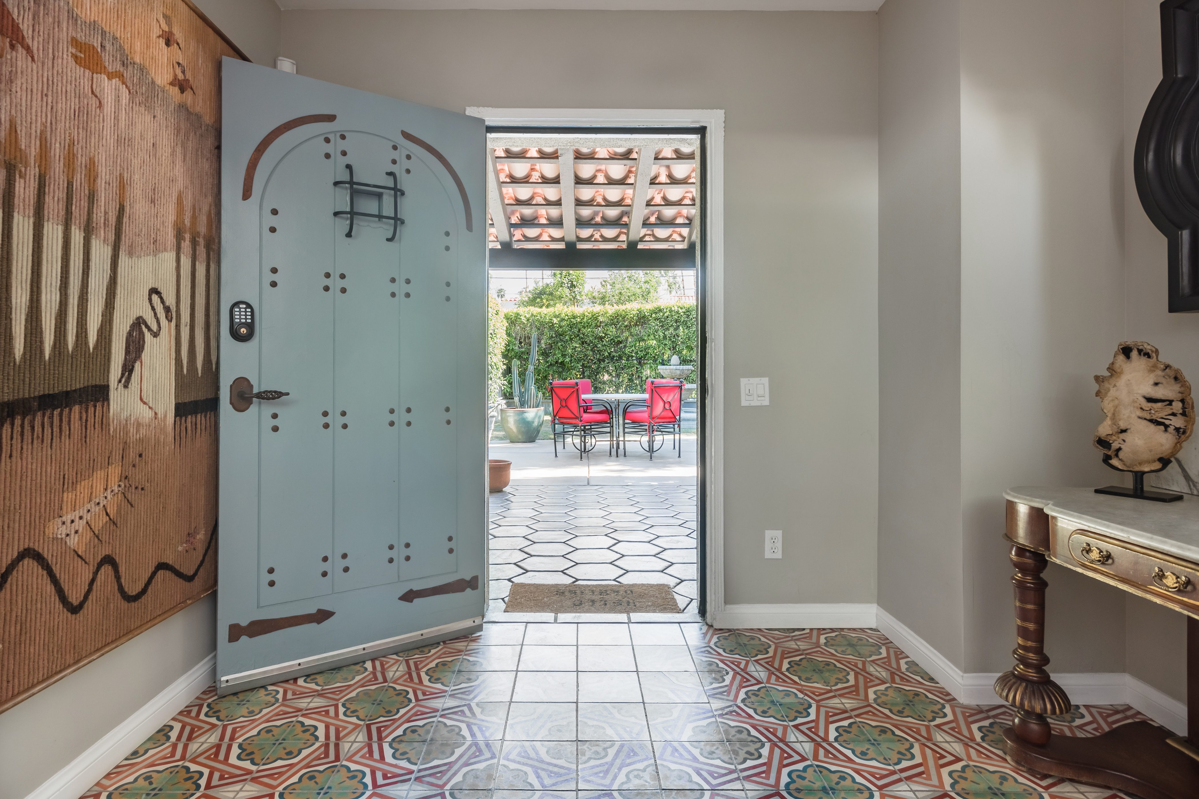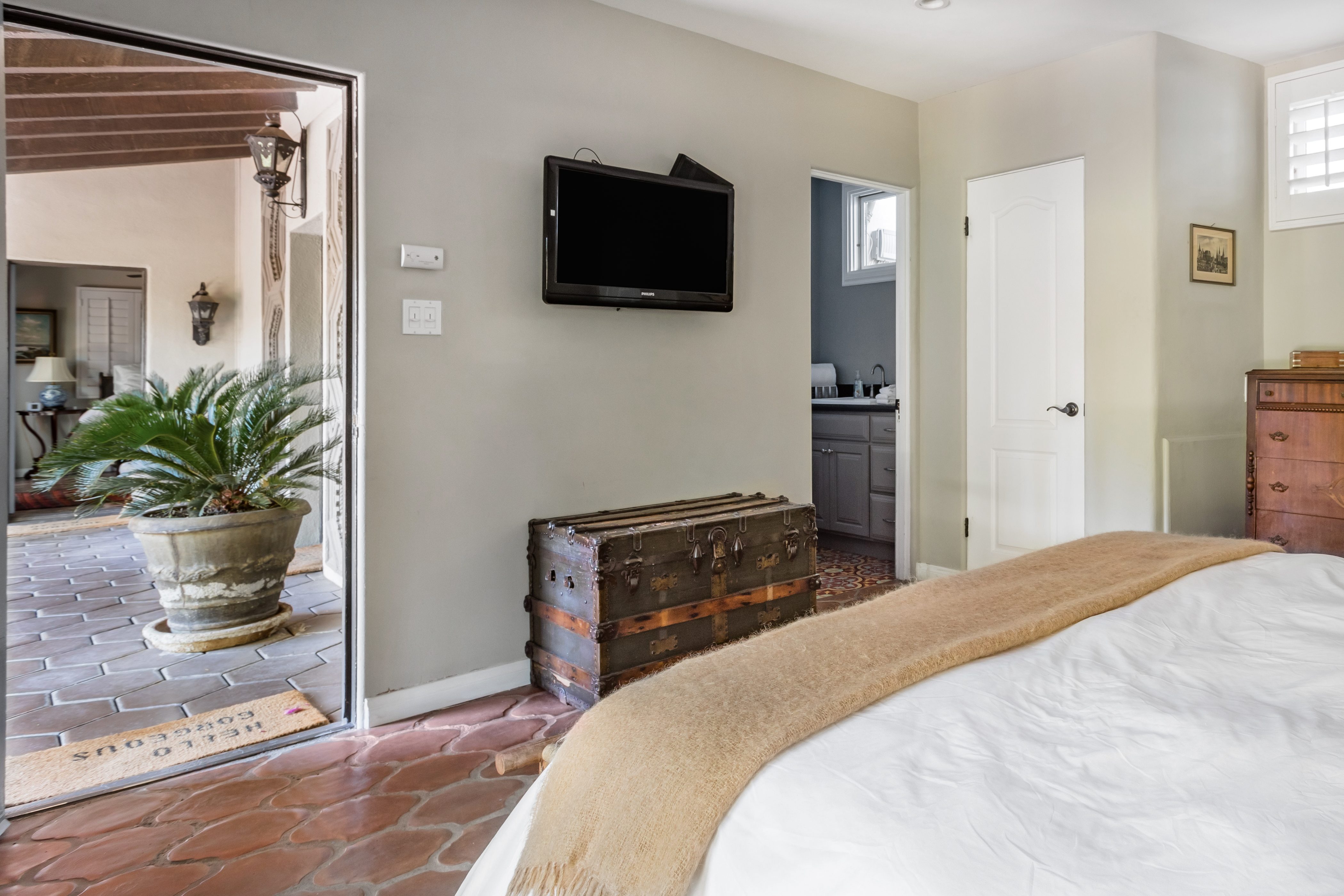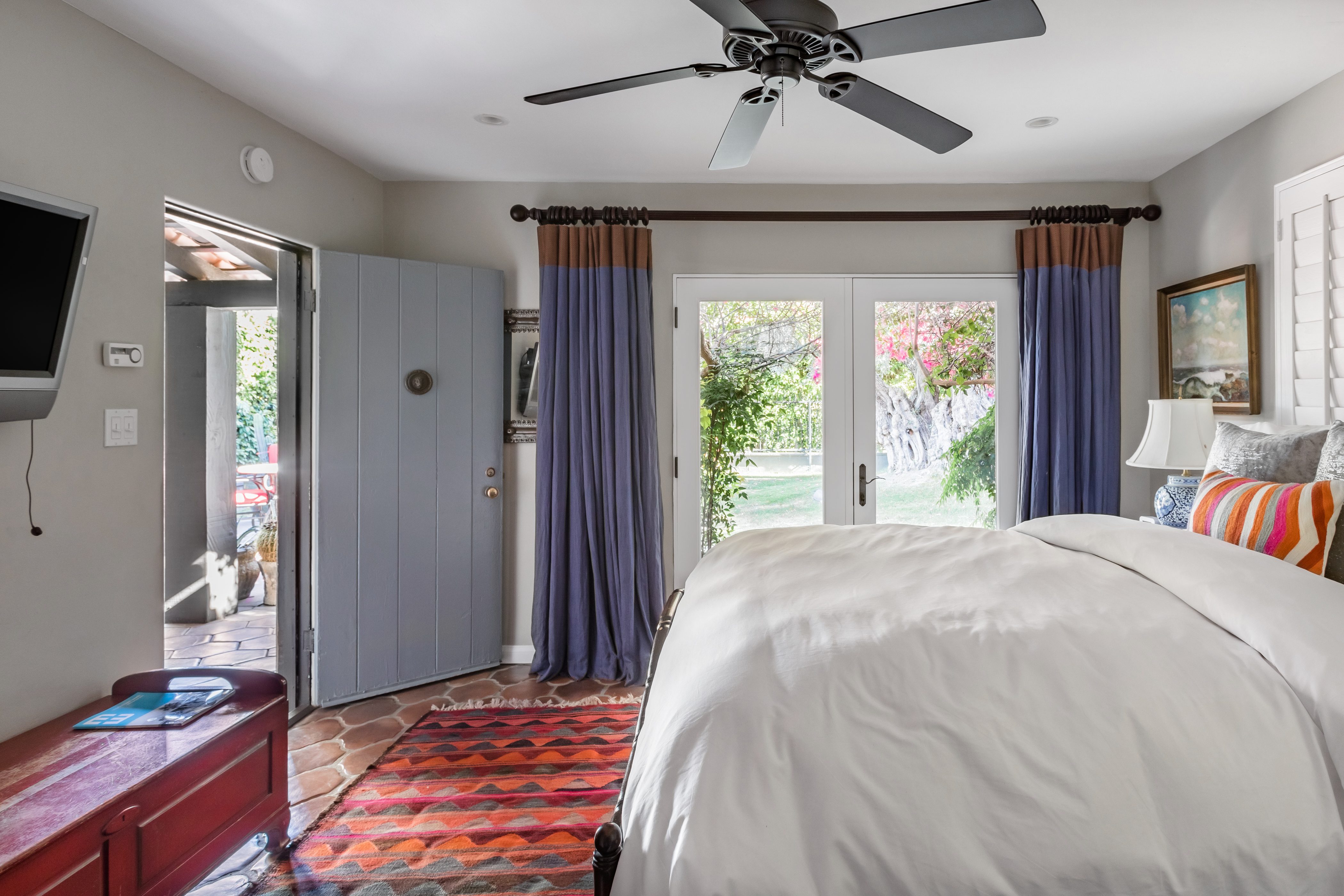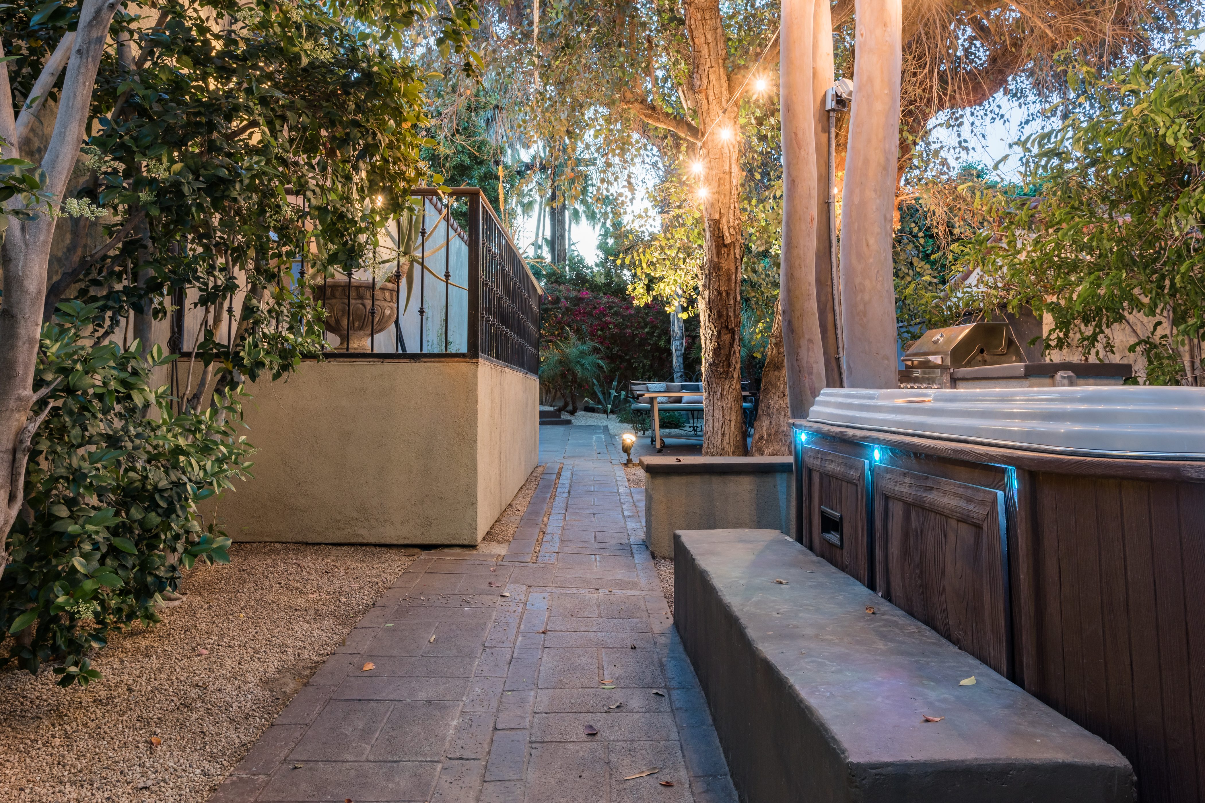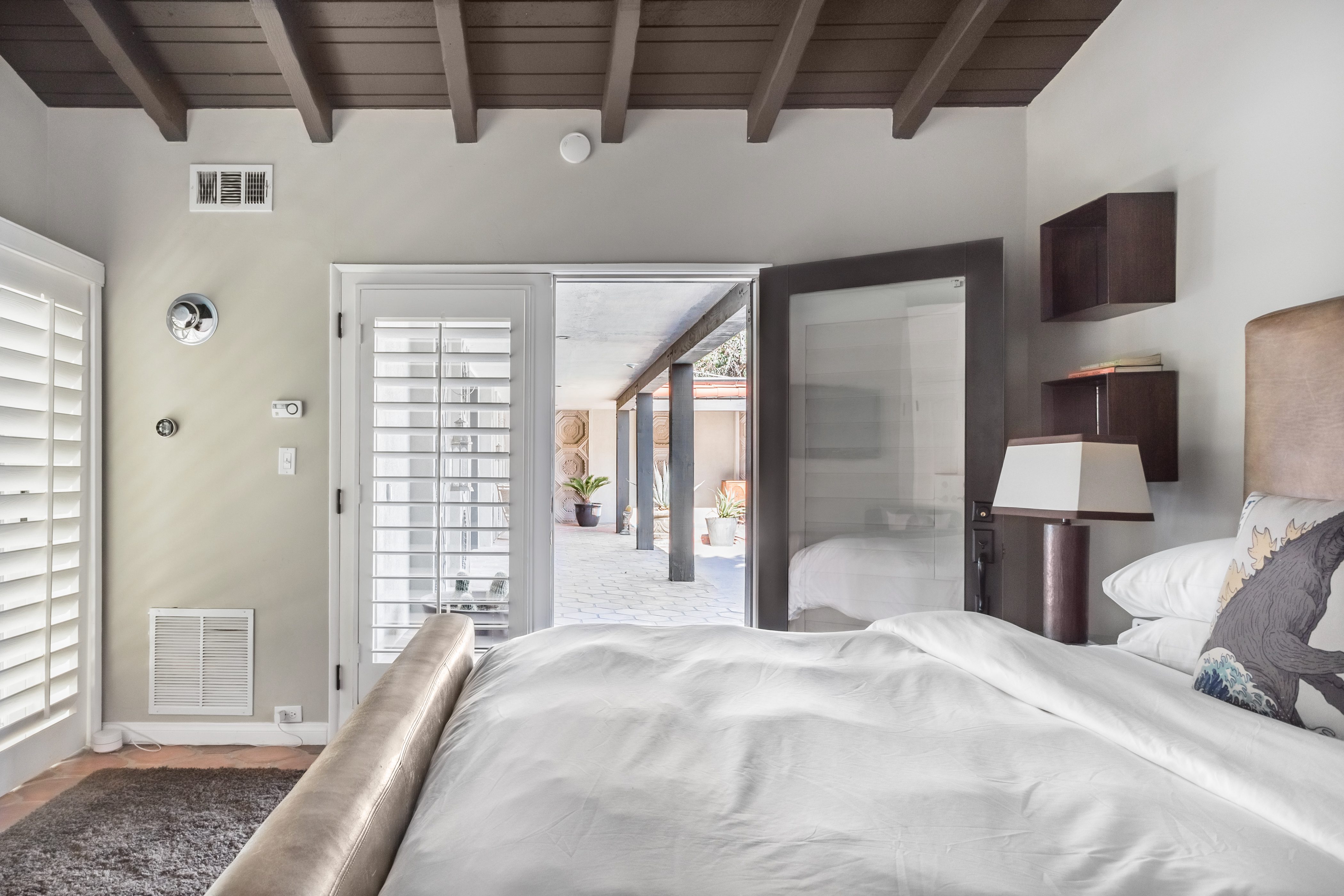 P.S. City ID #1256 **Primary Renter must be at Least 25 Years of Age** Updated luxury meets old-fashioned glamour, with a tropical outdoor oasis in the middle of the desert. This home has it all! A U-shaped courtyard with pool and spa and a private outdoor lounge complete with fireplace. Outdoor kitchen, alfresco dining, ping pong and a grand outdoor shower. Impeccable interior features floor-to-ceiling windows, large gathering spaces with top-of-the-line furnishings, large gourmet kitchen and hotel-quality bedrooms. Perfect for a large group, 4 queen beds + bunk room, all w/pool access. P.S. City ID #1256 **Primary Renter must be at Least 25 Years of Age** Glamorous Palm Springs Villa with strong ties to Old Hollywood. Very private walled and gated estate in the The Mesa. 4 Deluxe sleeping quarters + bunk room. Center courtyard pool area. Spa. Outdoor shower. Ping Pong. Walk to Palm Canyon Drive. Outdoor fireplace. Beds: Q, Q, Q, Q, Bunk = F, T This home in the Old Mesa neighborhood was owned by film star Joseph Cotton, and has hosted countless Hollywood luminaries. Follow in their footsteps in walking past stars' homes to Palm Canyon Drive to discover a wealth of boutiques and restaurants. Certain dog breeds under 65 lbs are allowed at this home, the dog fee is $195 (2 dogs maximum).Amenities