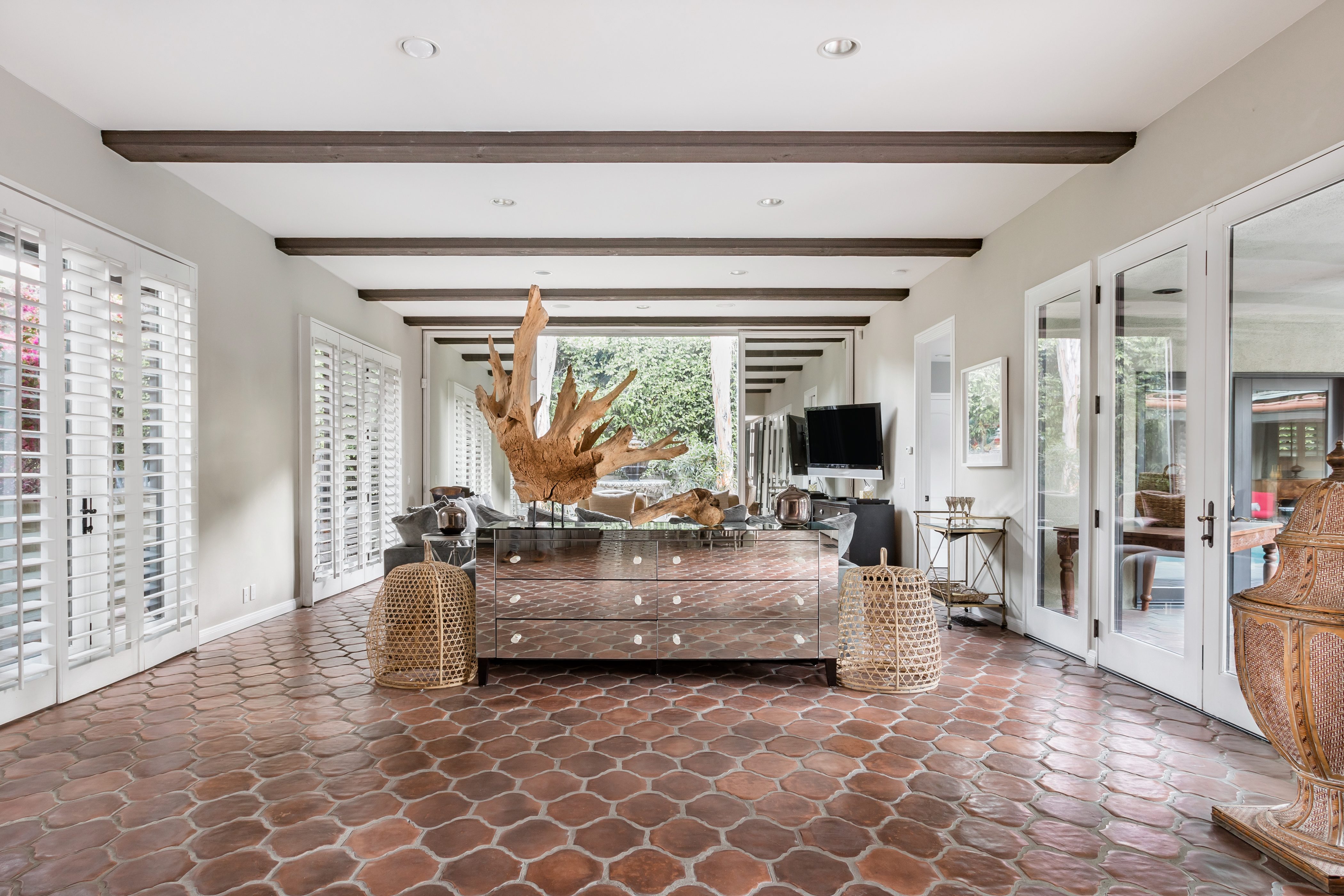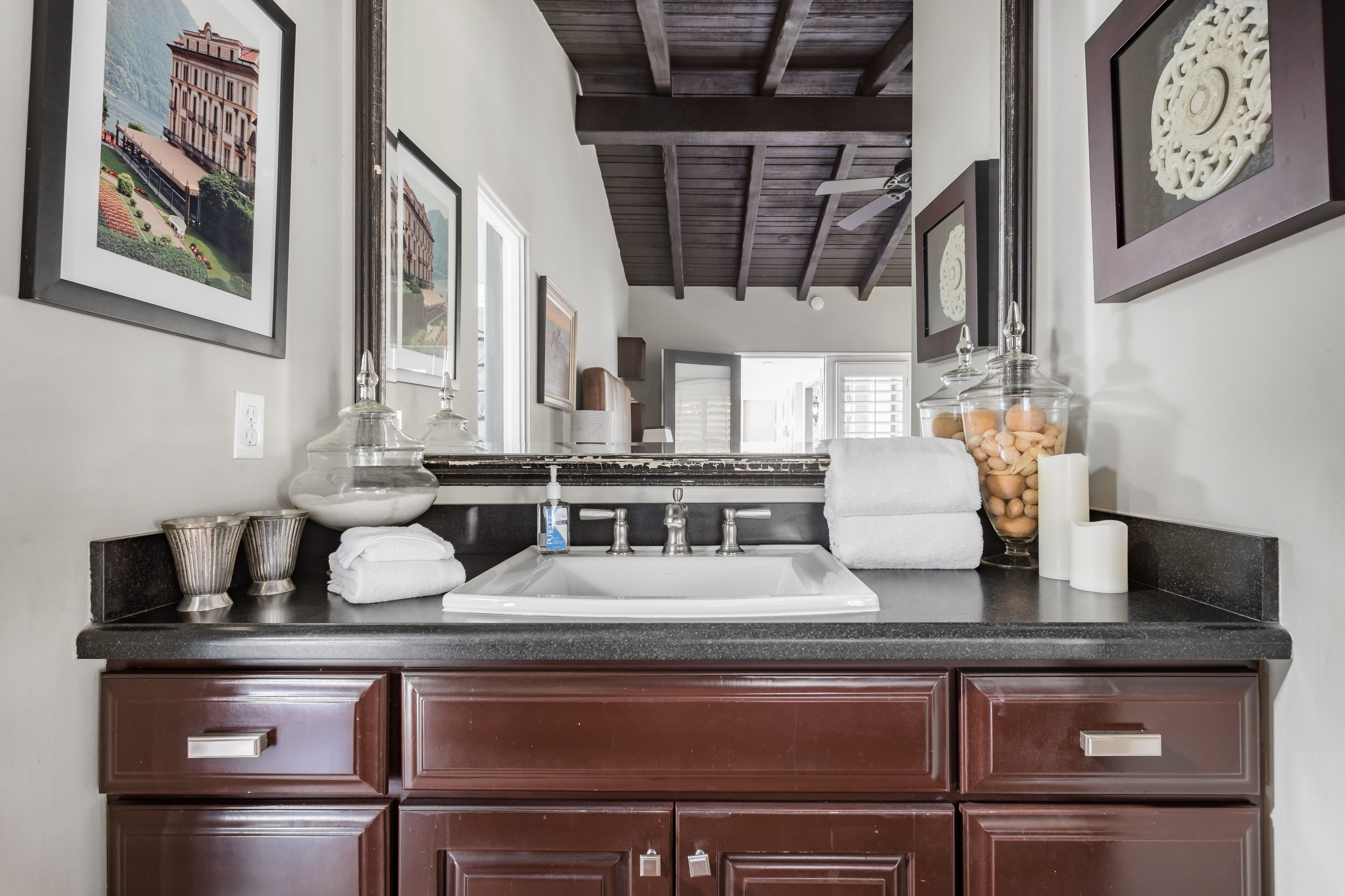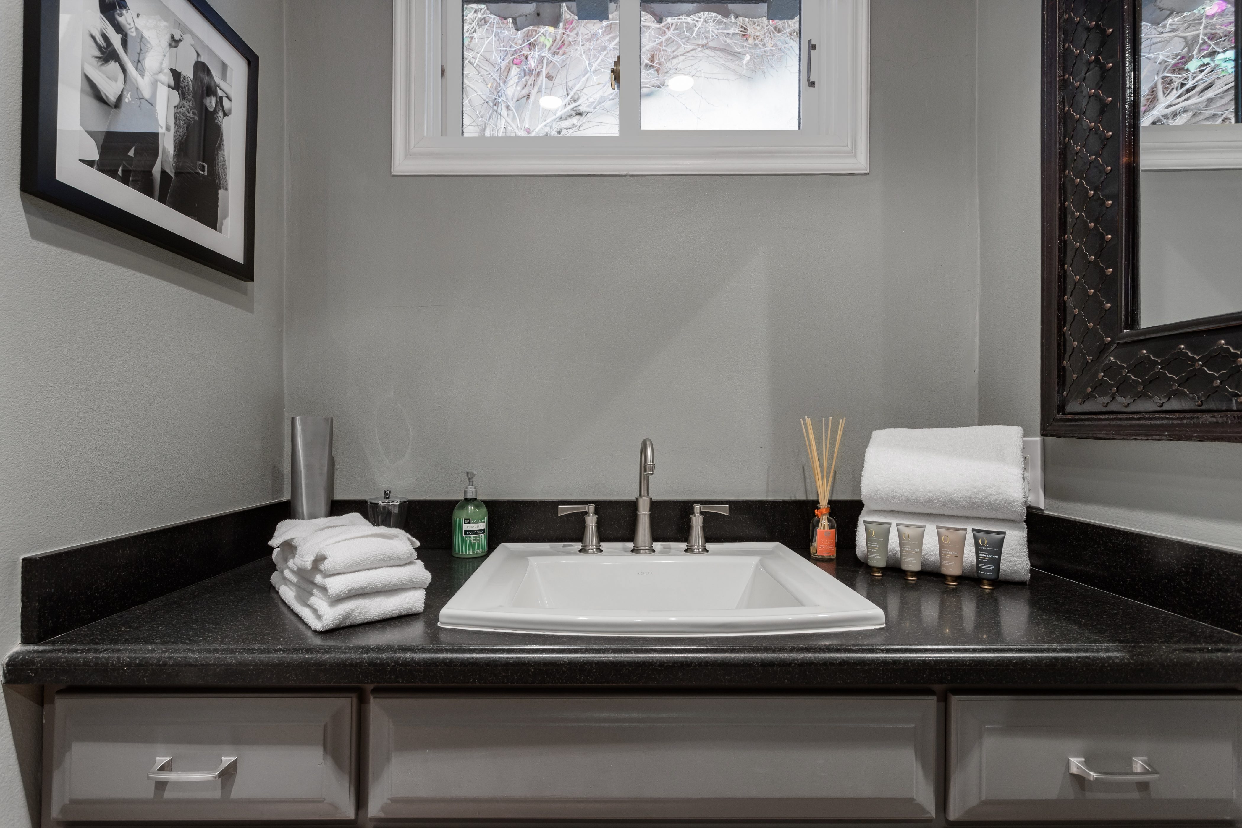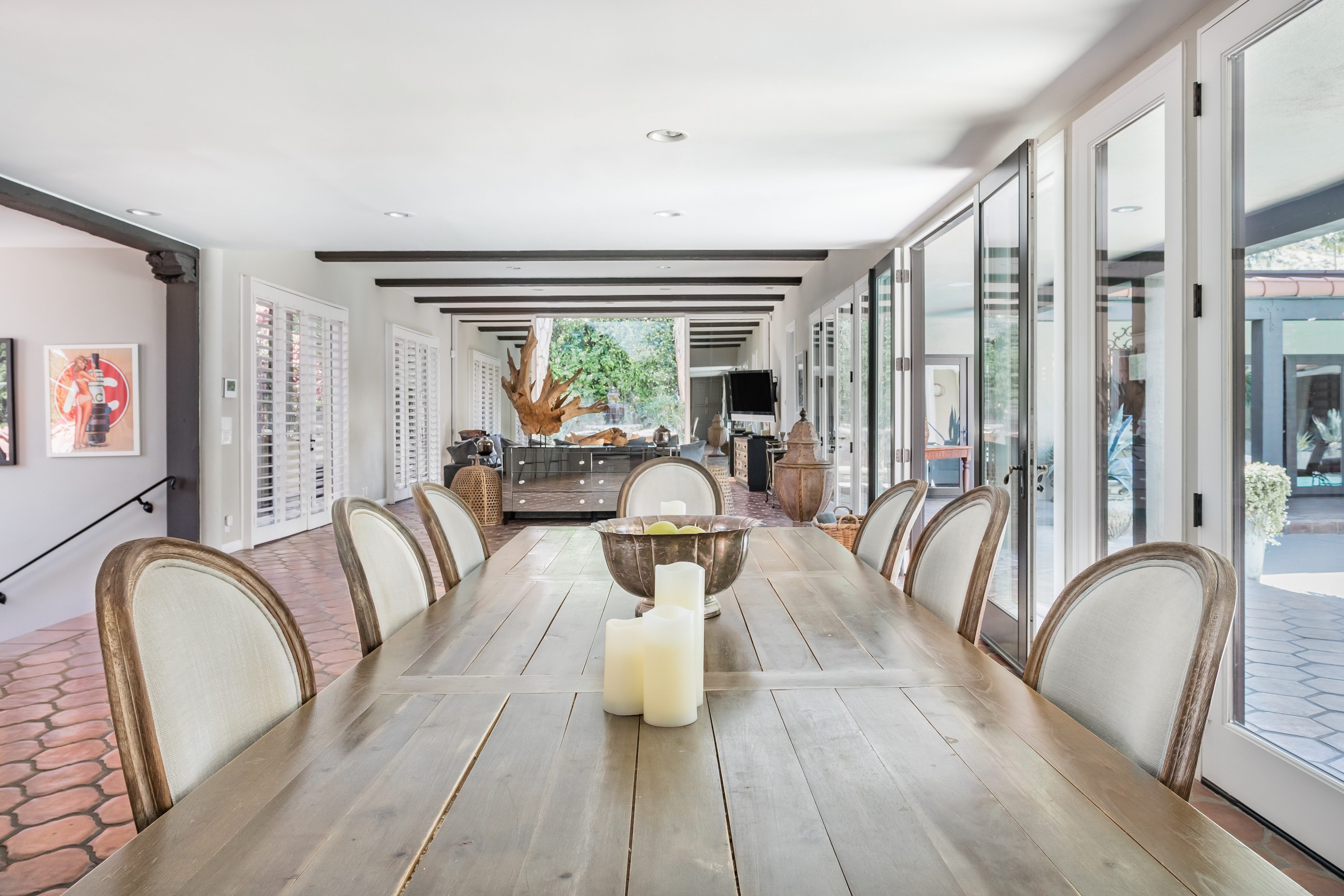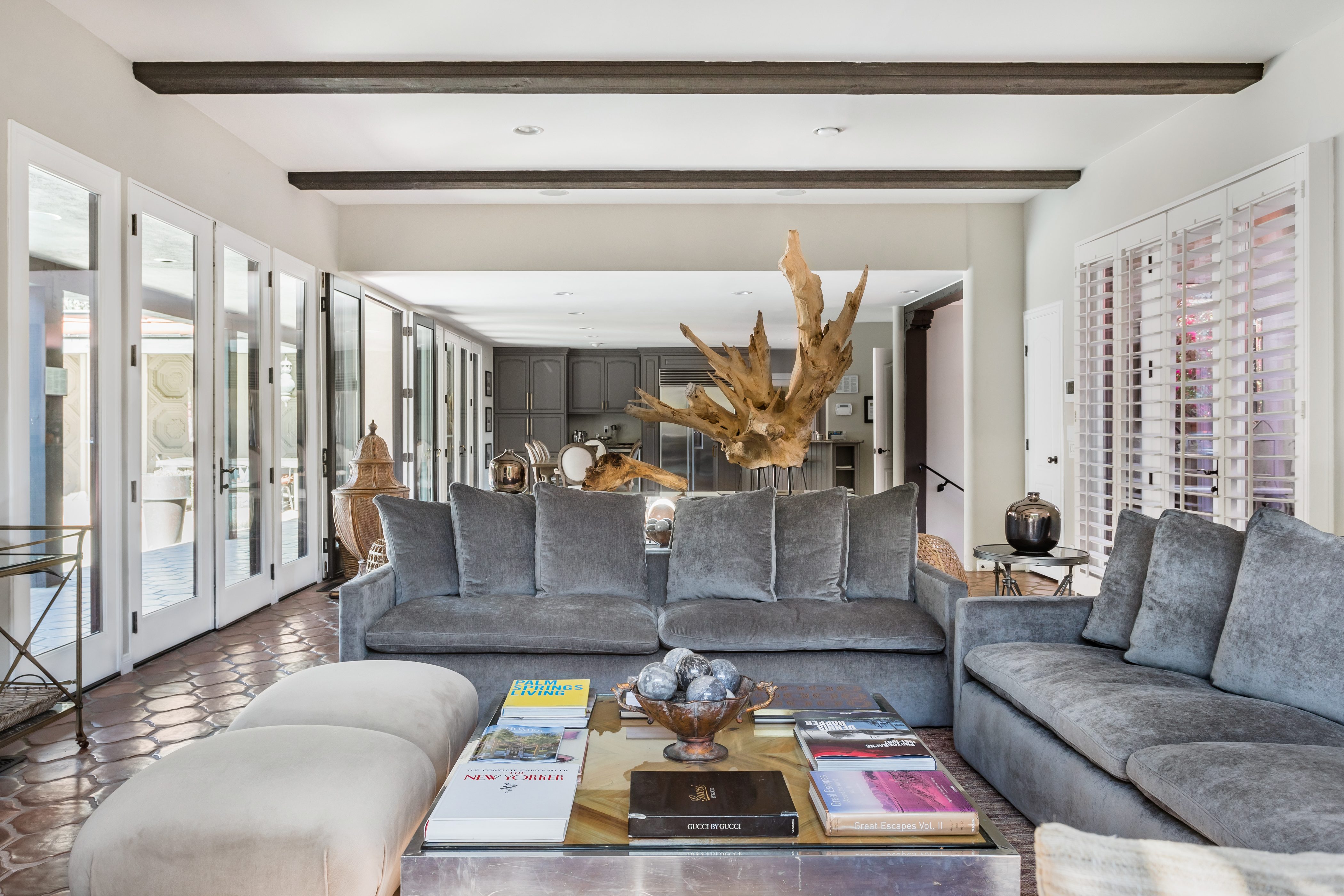 P.S. City ID #1256 **Primary Renter must be at Least 25 Years of Age** Updated luxury meets old-fashioned glamour, with a tropical outdoor oasis in the middle of the desert. This home has it all! A U-shaped courtyard with pool and spa and a private outdoor lounge complete with fireplace. Outdoor kitchen, alfresco dining, ping pong and a grand outdoor shower. Impeccable interior features floor-to-ceiling windows, large gathering spaces with top-of-the-line furnishings, large gourmet kitchen and hotel-quality bedrooms. Perfect for a large group, 4 queen beds + bunk room, all w/pool access. P.S. City ID #1256 **Primary Renter must be at Least 25 Years of Age** Glamorous Palm Springs Villa with strong ties to Old Hollywood. Very private walled and gated estate in the The Mesa. 4 Deluxe sleeping quarters + bunk room. Center courtyard pool area. Spa. Outdoor shower. Ping Pong. Walk to Palm Canyon Drive. Outdoor fireplace. Beds: Q, Q, Q, Q, Bunk = F, T This home in the Old Mesa neighborhood was owned by film star Joseph Cotton, and has hosted countless Hollywood luminaries. Follow in their footsteps in walking past stars' homes to Palm Canyon Drive to discover a wealth of boutiques and restaurants. Certain dog breeds under 65 lbs are allowed at this home, the dog fee is $195 (2 dogs maximum).Amenities