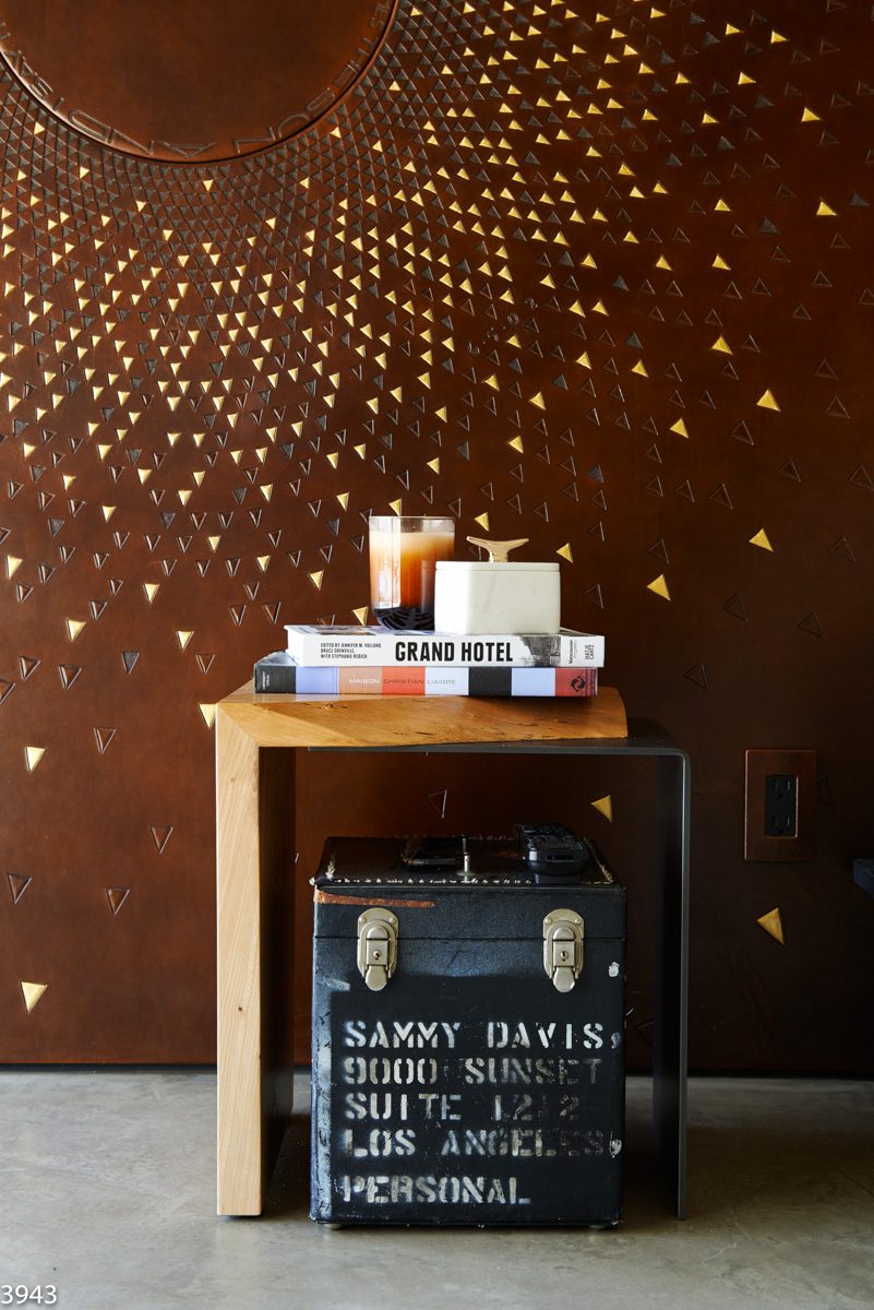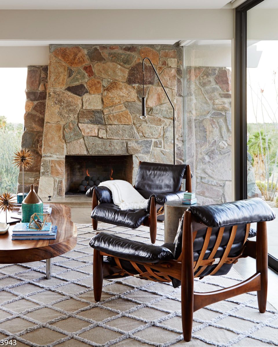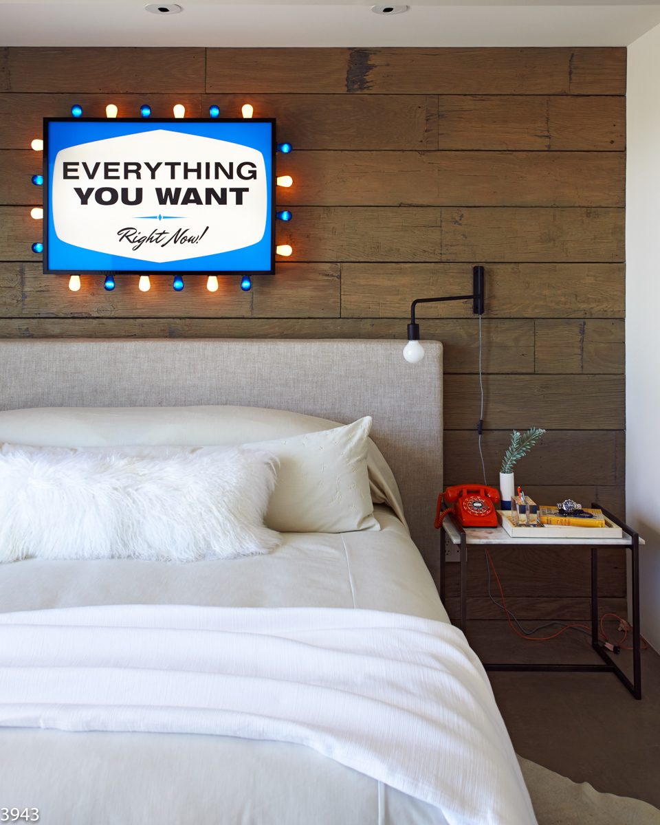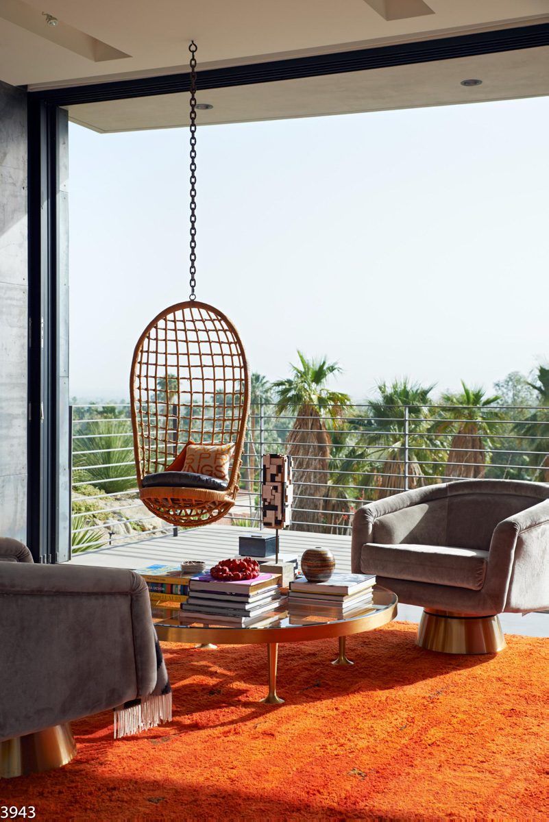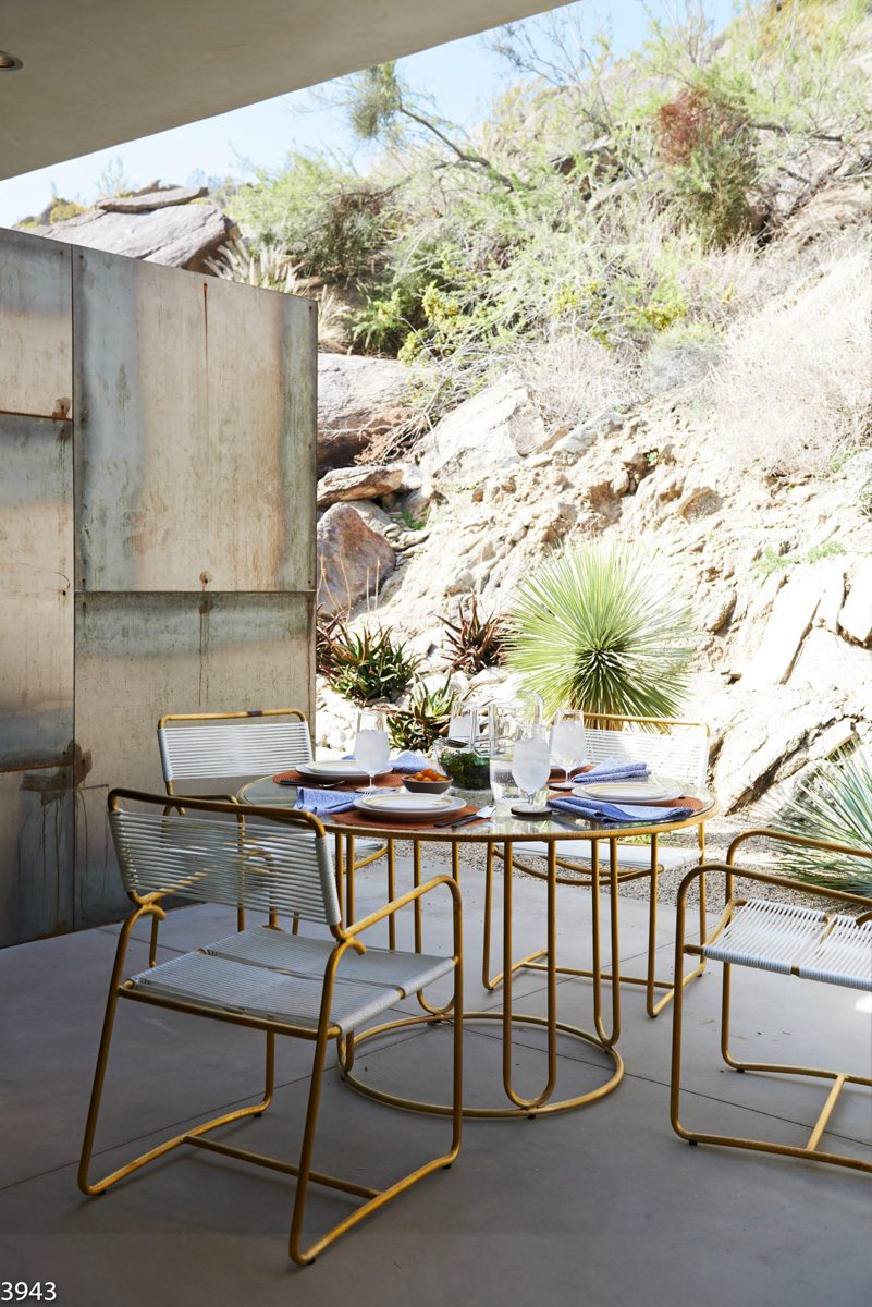 On The Rocks has a custom saline pool with two infinity edges, an integrated spa, and tanning shelf. Located between the main house and casita is the outdoor living room, which features a bar area, fire pit, restored vintage Orange Charmglow gas BBQ and projector for outdoor movie viewing.