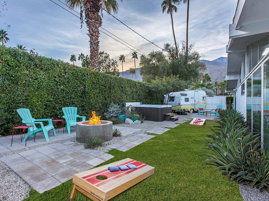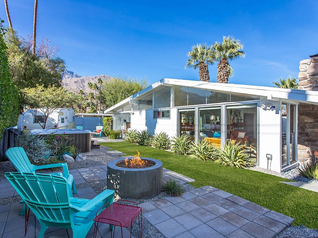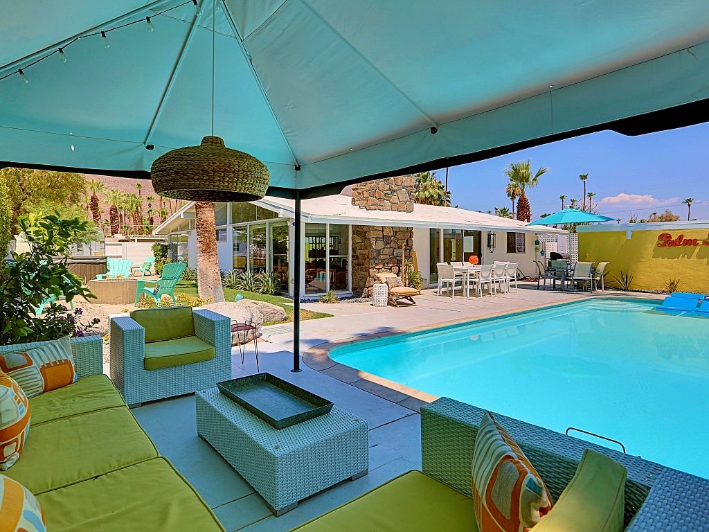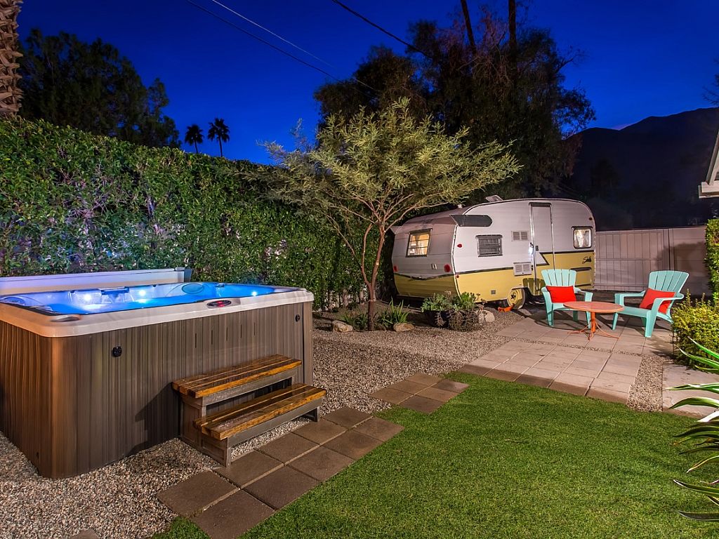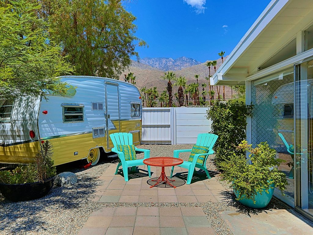 This Palm Springs vacation home is a great example of true Midcentury Style and Design - with visual inspiration everywhere you look. Brand new Jacuzzi spa, new large outdoor lounge area w/pavers, landscaping, and a fire pit as of October 2015. Also, the retro Shasta Trailer now has full electricity and Air Conditioning.