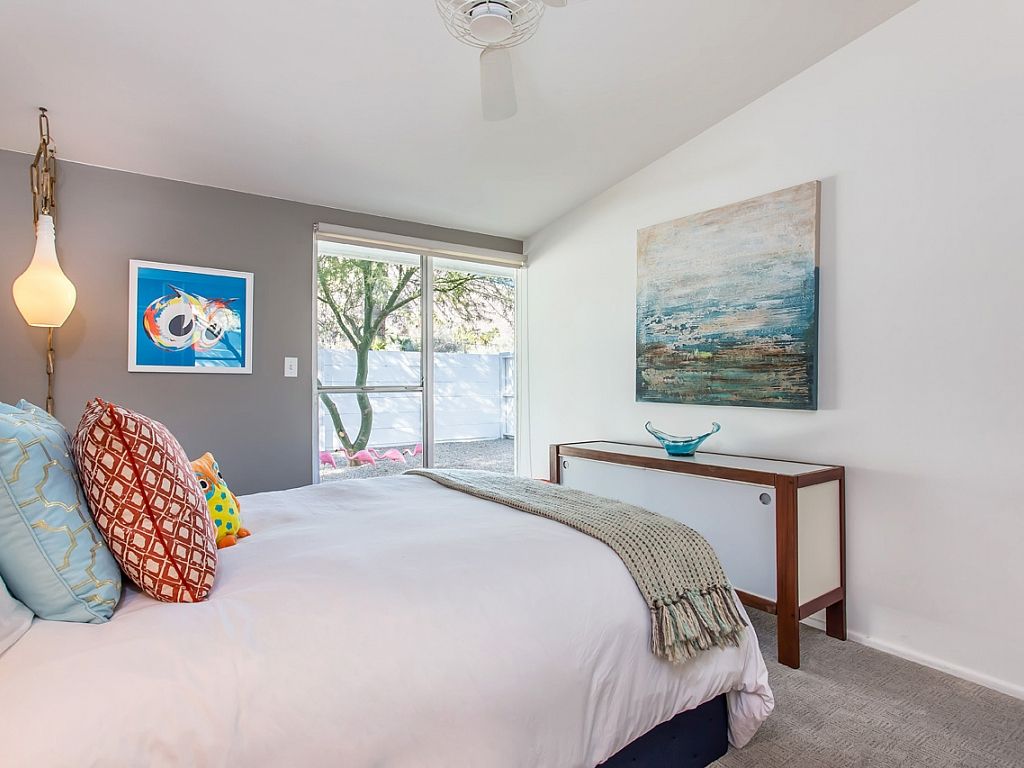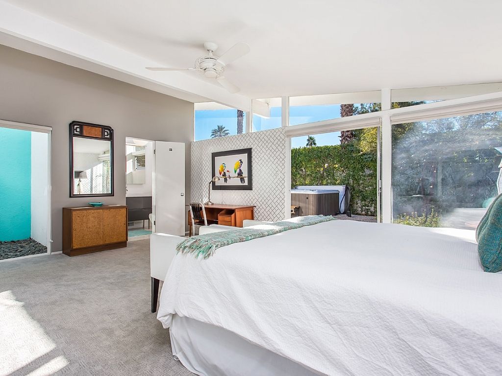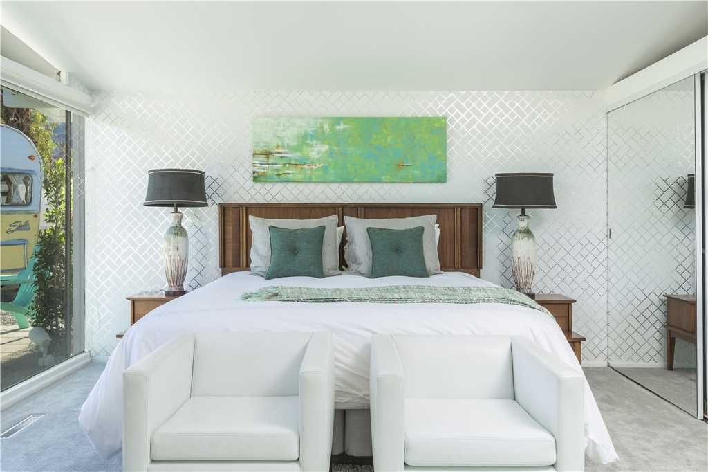 The bedding and linens are first class, the furnishings and decorative accents are inspiring and captivating, the colors are both bright and soothing, the style captured here is rich in high Hollywood style in Palm Springs, CA.